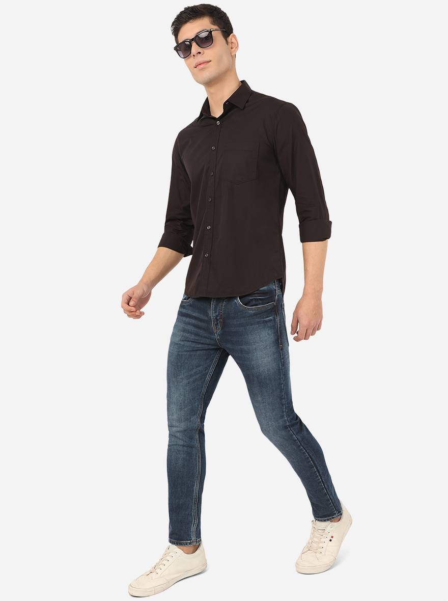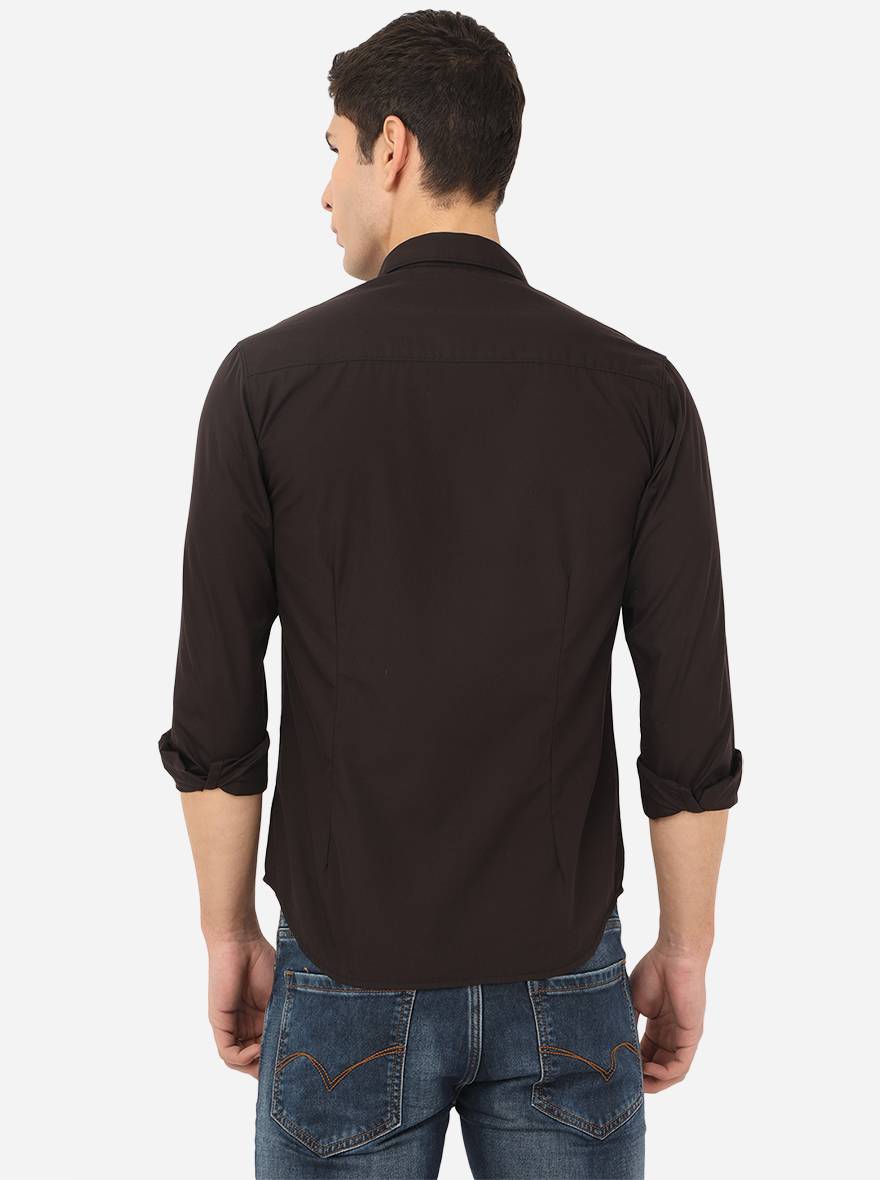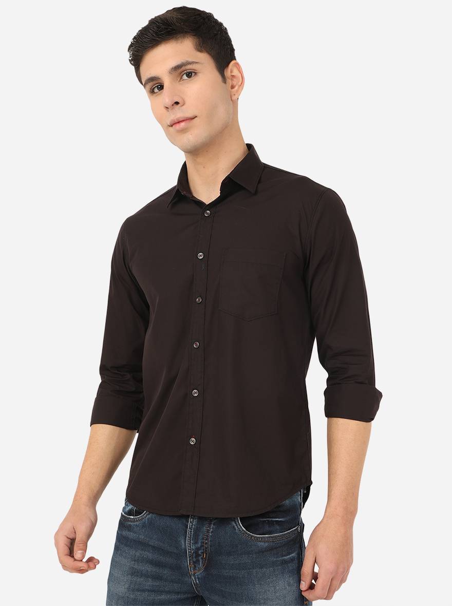Jet Black Solid Slim Fit Semi Casual Shirt | Greenfibre