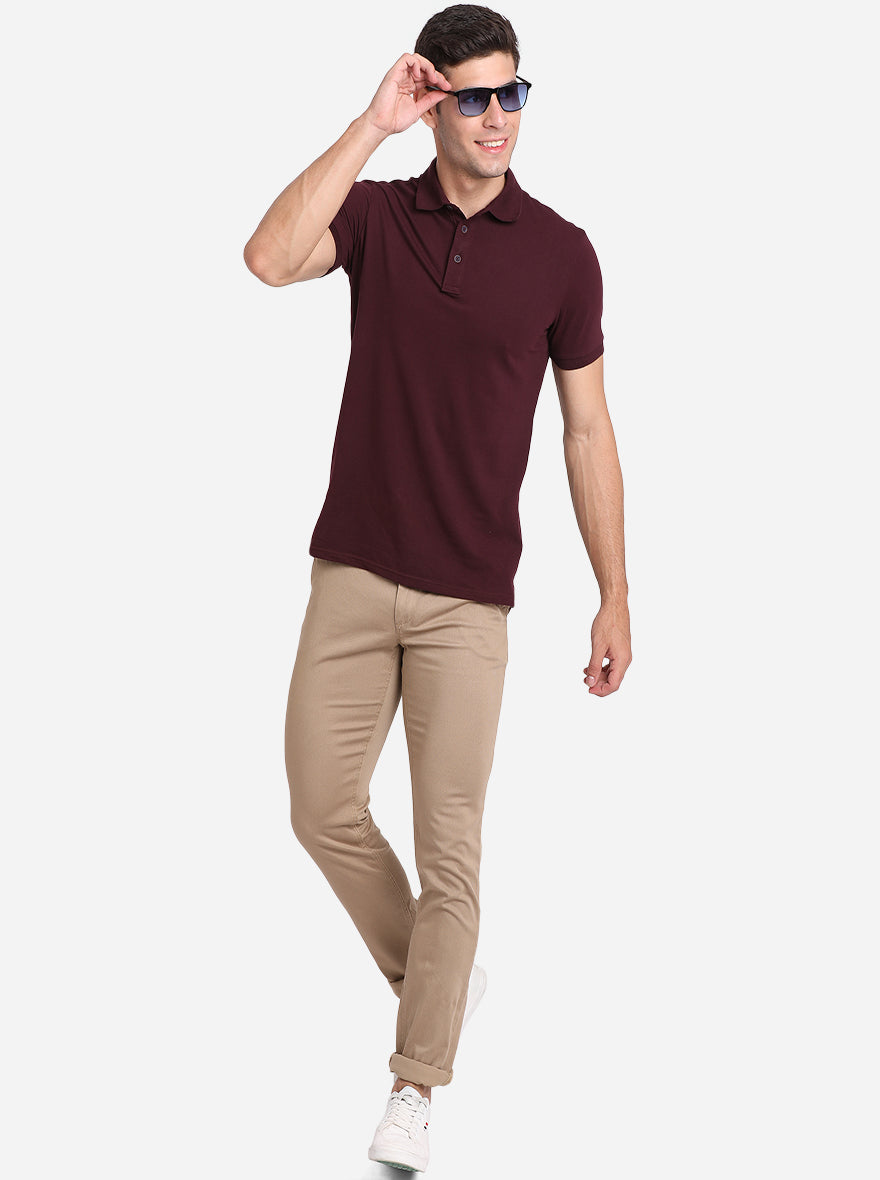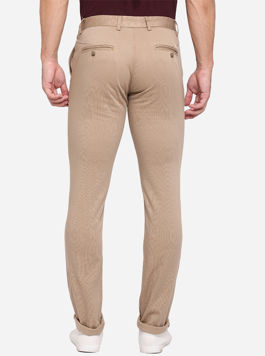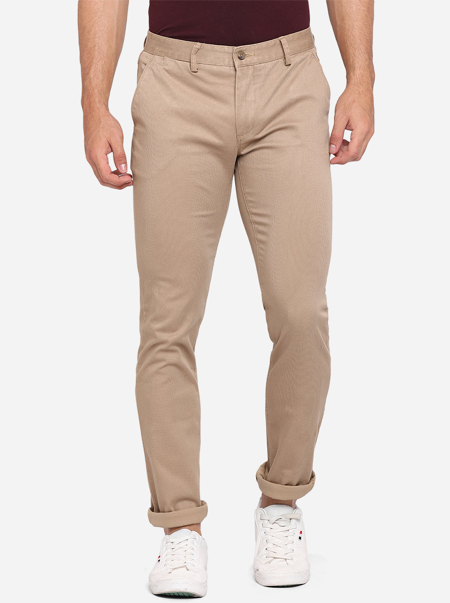 Khaki Solid Slim Fit Casual Trouser | Greenfibre