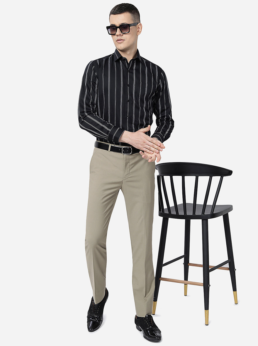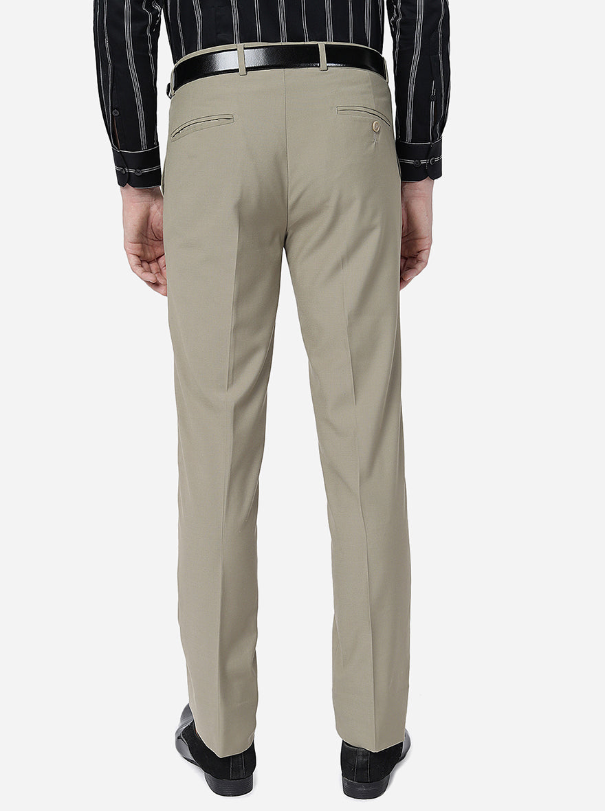 Khaki Solid Slim Fit Formal Trouser | Greenfibre