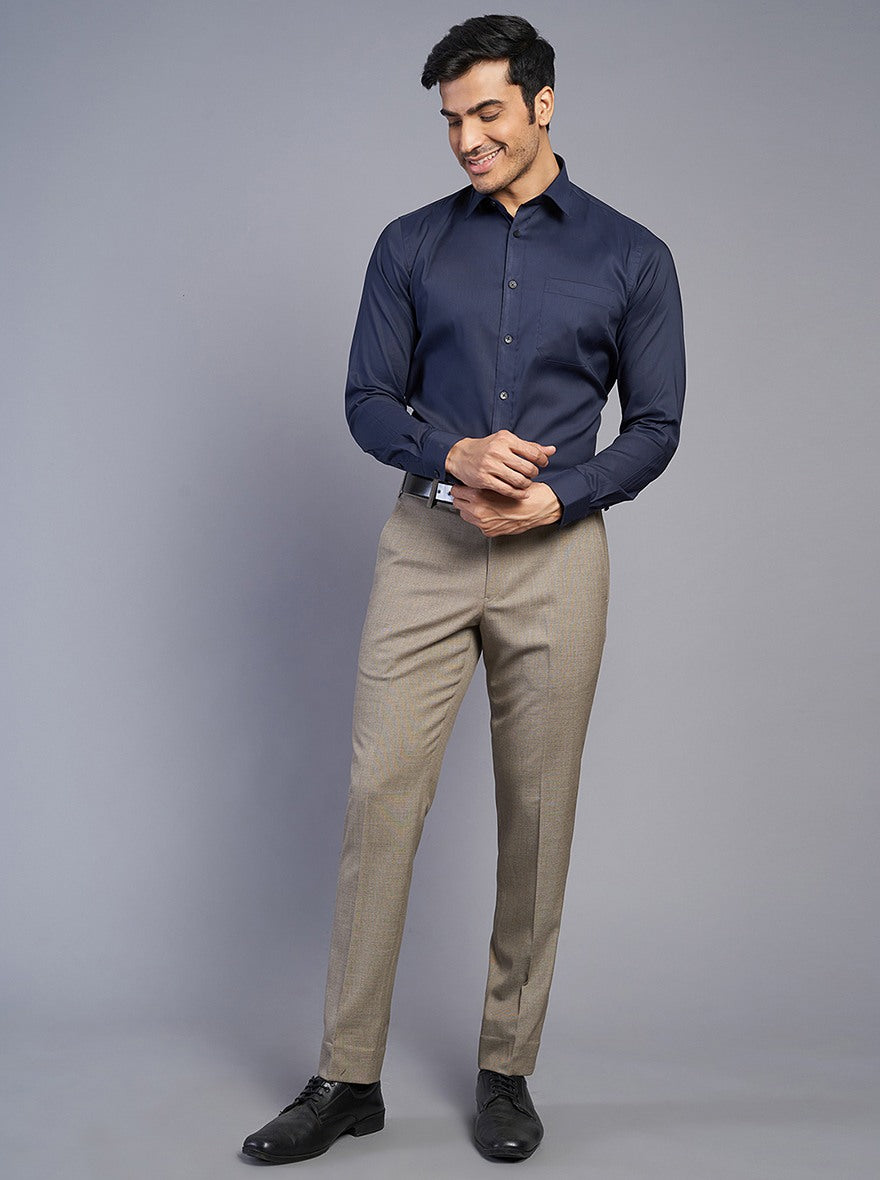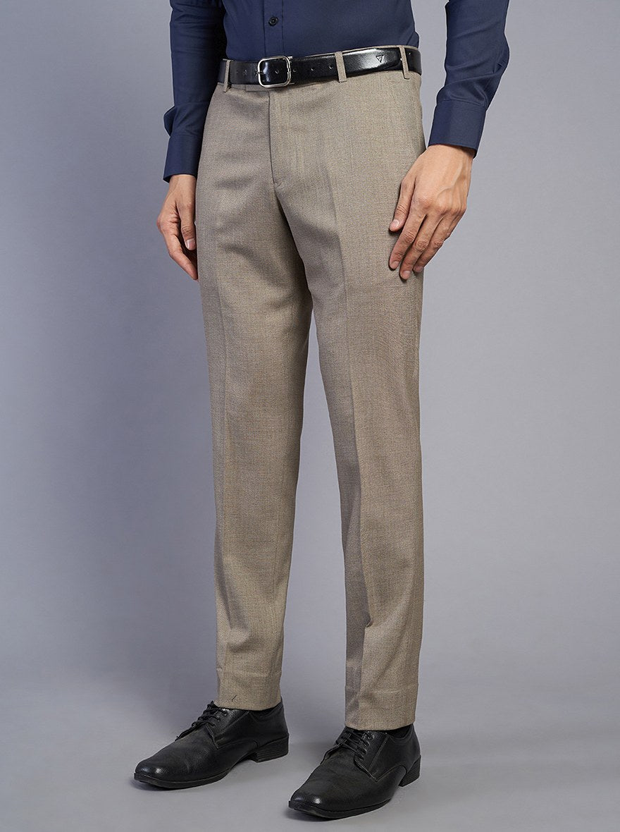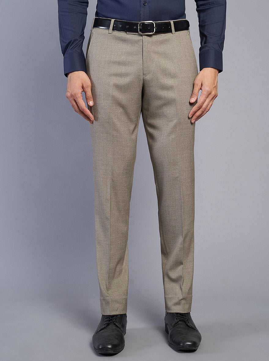 Khaki Solid Super Slim Fit Formal Trouser | JadeBlue
