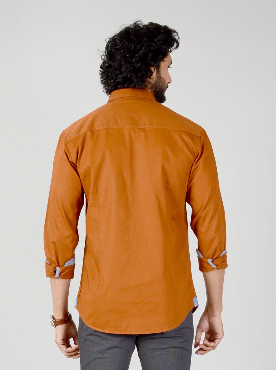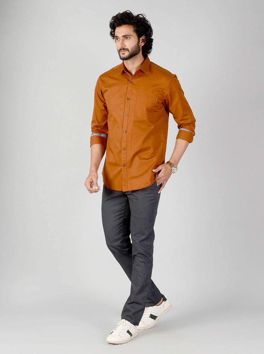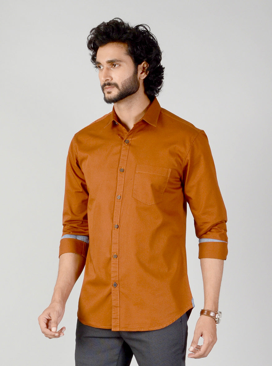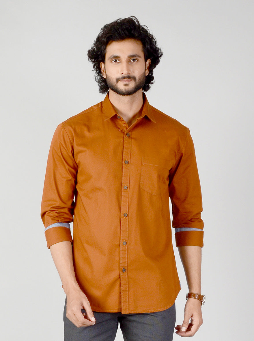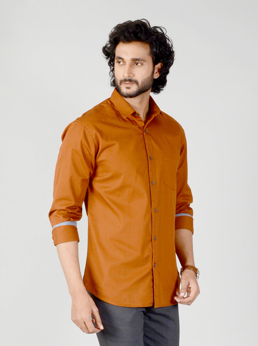 Leather Brown Solid Slim Fit Casual Shirt | Greenfibre