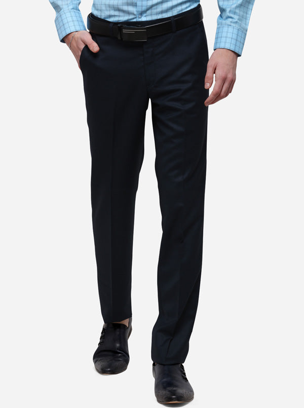 Legion Blue Solid Slim Fit Formal Trouser | Metal