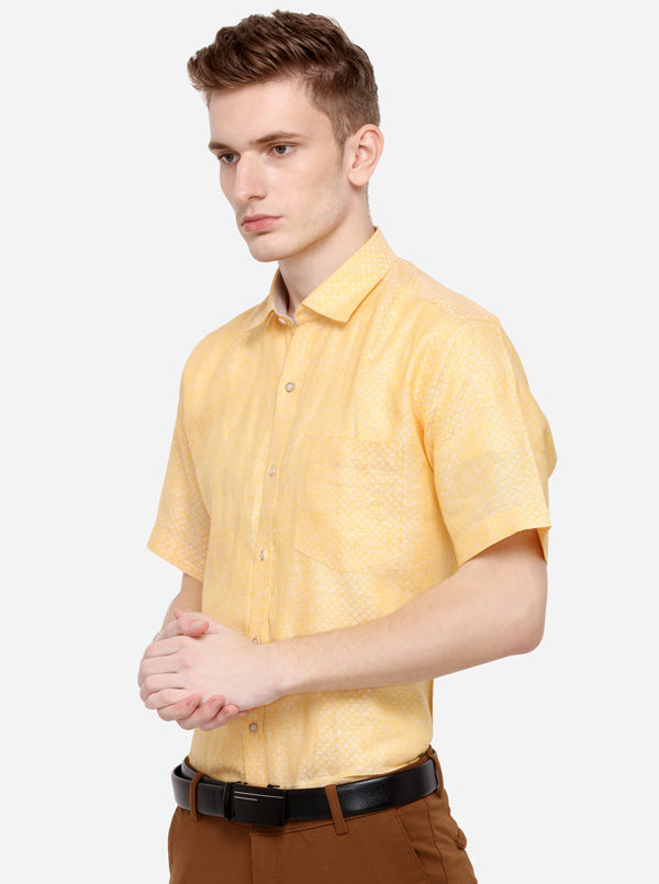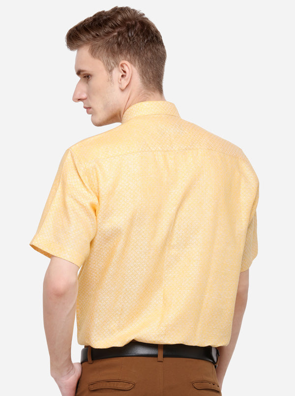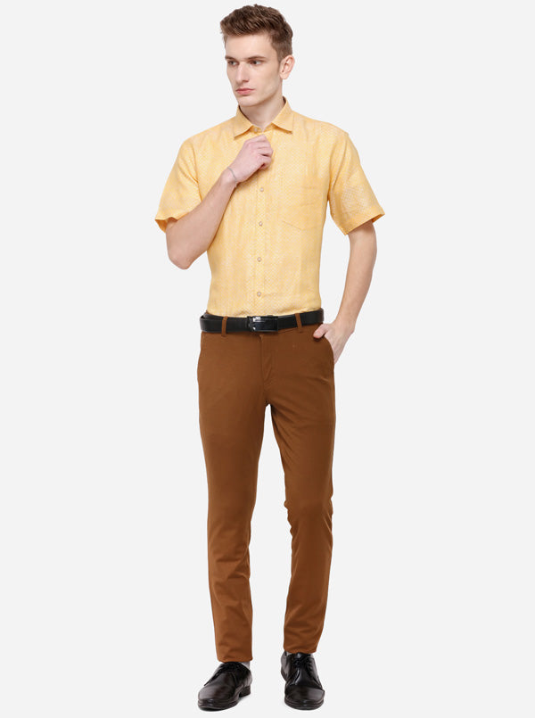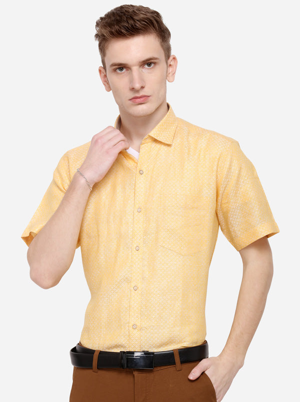 Details: This plain yellow men's shirt is a perfect blend of comfort and style. Made from breathable Poly cotton fabric, this slim fit shirt features classic collar, chest pocket and front buttons. It is teamed with semi-formal trousers. incorporate style and comfort into your formal collection by opting for this Printed yellow shirt. Made from finest quality of Poly cotton fabric, this slim fit shirt features standard features like classic collar, chest pocket and front buttons for comfy closure.Made to perfection from premium Poly cotton fabric, this slim fit men's shirt features classic collar, chest pocket and Half sleeve. It offers all-day comfort. Opt for this must-have piece & it offers super relaxation. Revamp your formal shirt collection today by adding this yellow men's formal shirt to it.