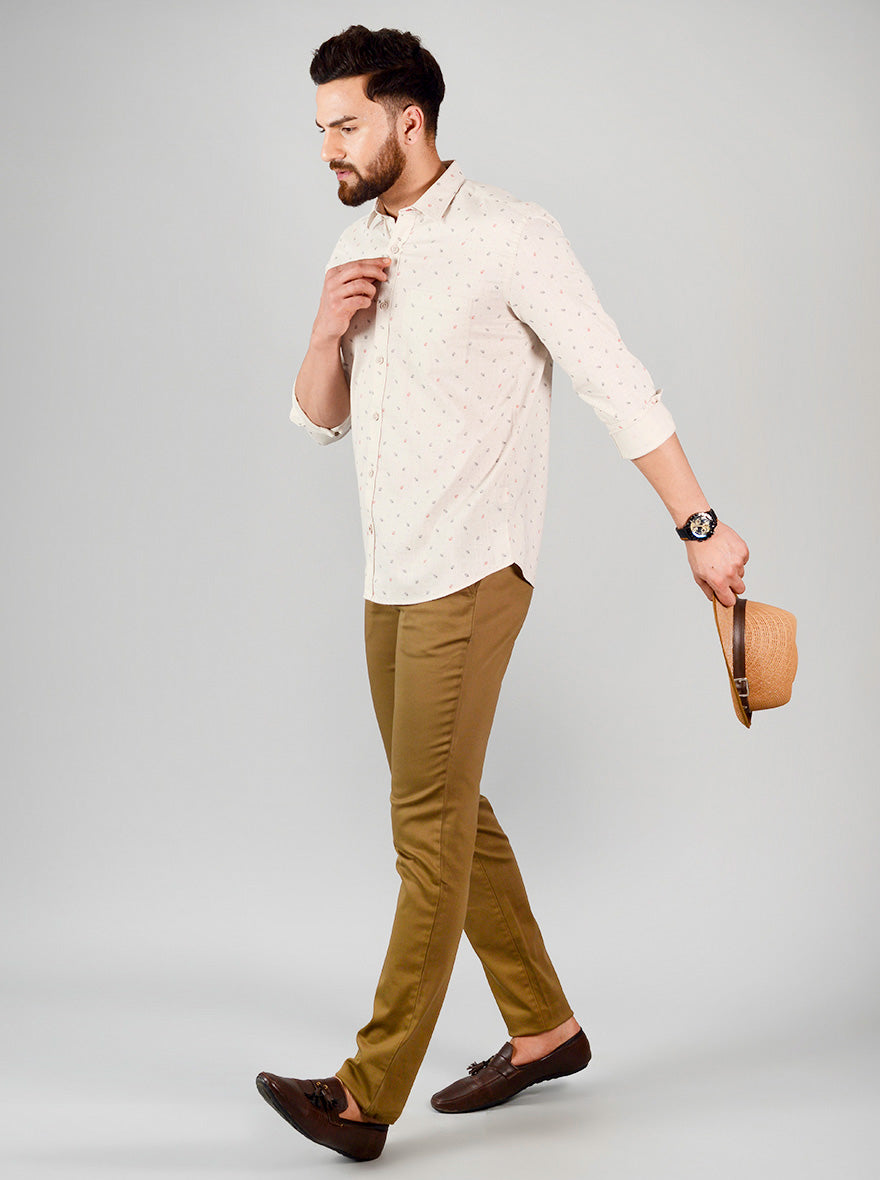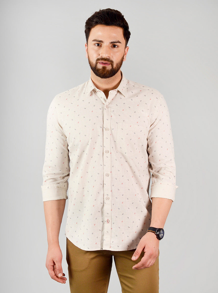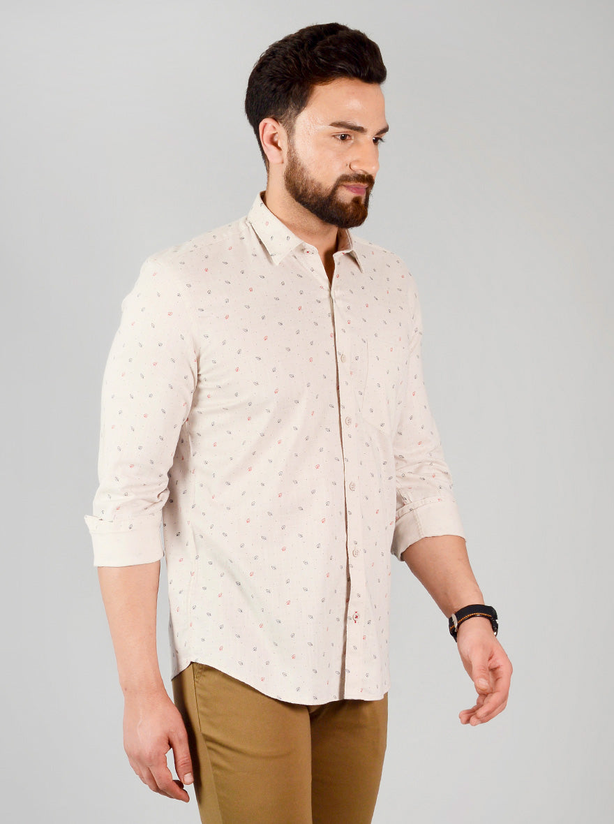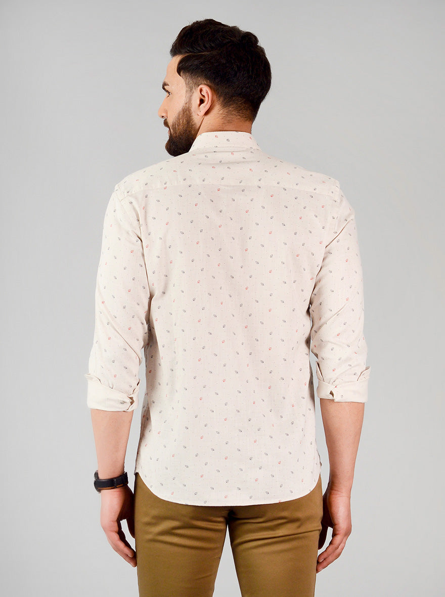 Light Beige Printed Slim Fit Casual Shirt | JadeBlue