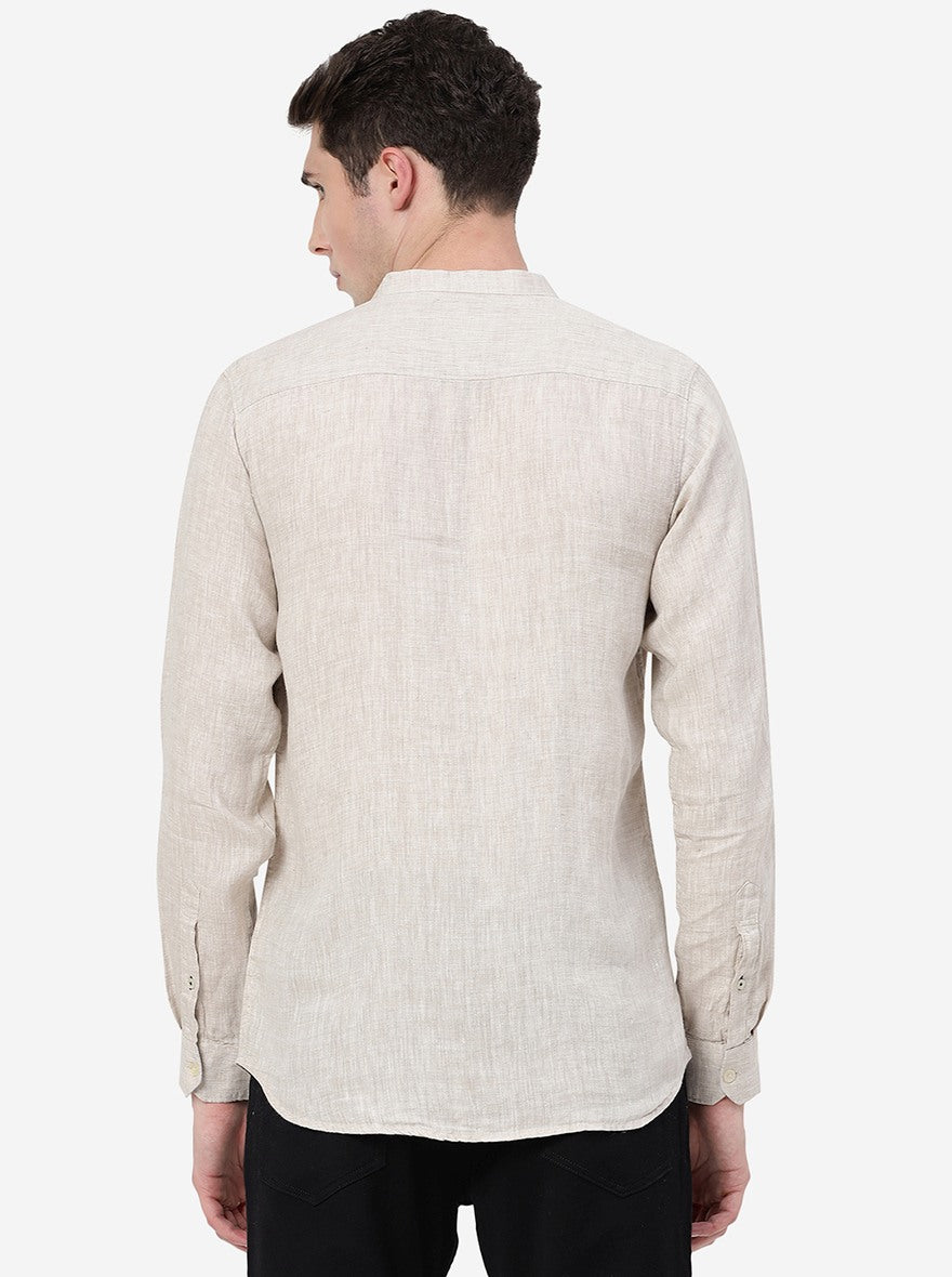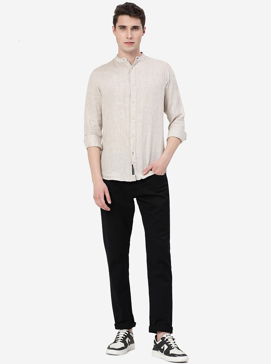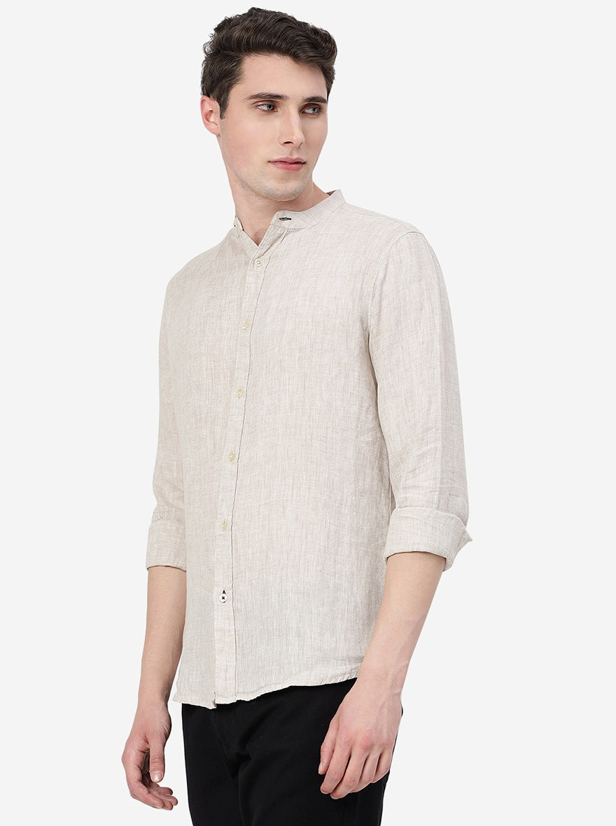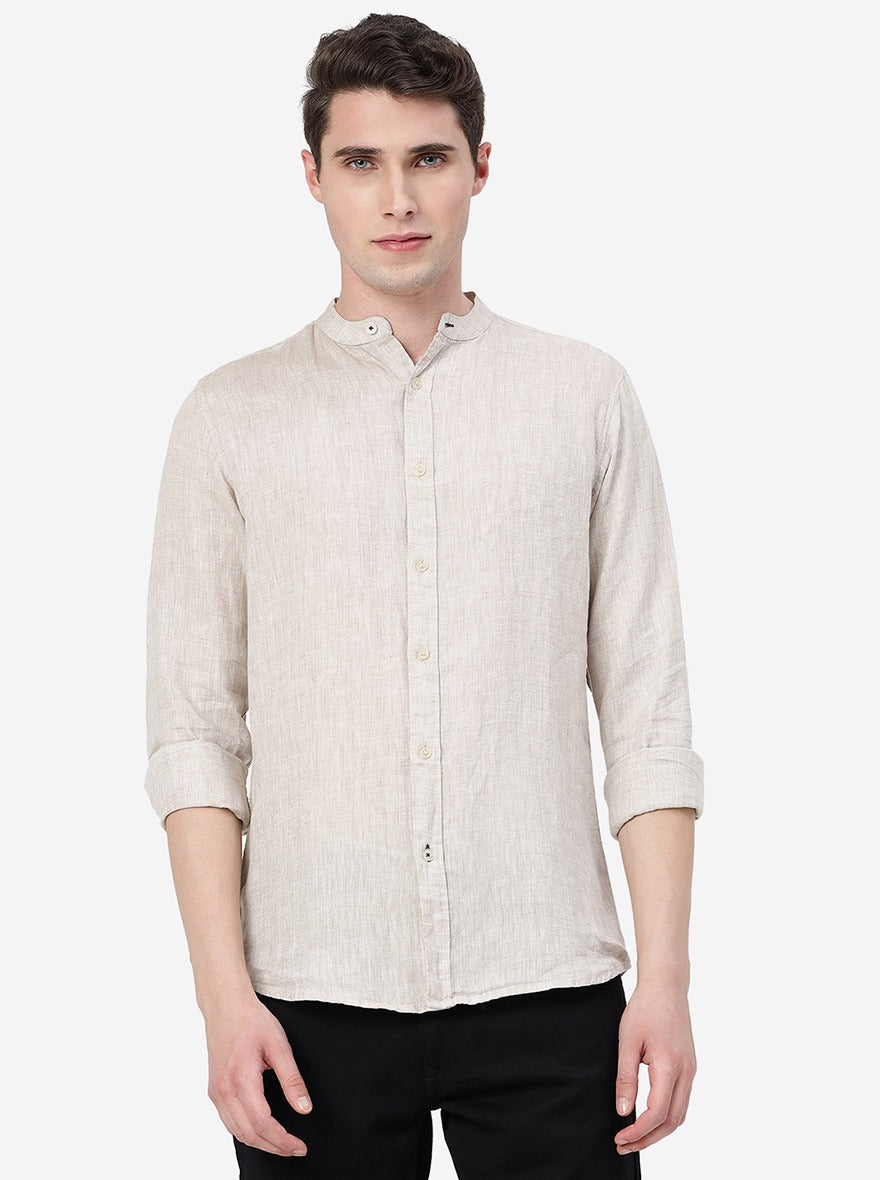 Details: Stay cool with this Light Beige 100% Linen Semi Casual Shirt from JadeBlue. Fabricated with 100% Linen fabric ensuring comfort and breathability all day. Offers a slim fit for a sleek look that has been elevated with a Solid pattern. Feature Full sleeves, and a Mandarin shirt collar. Match it with the well-fitted trousers of your choice and a pair of Black oxford shoes and you are ready to go.