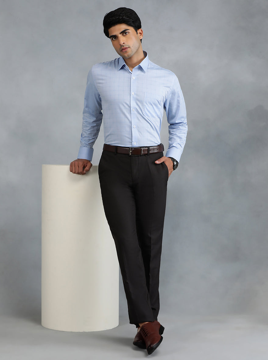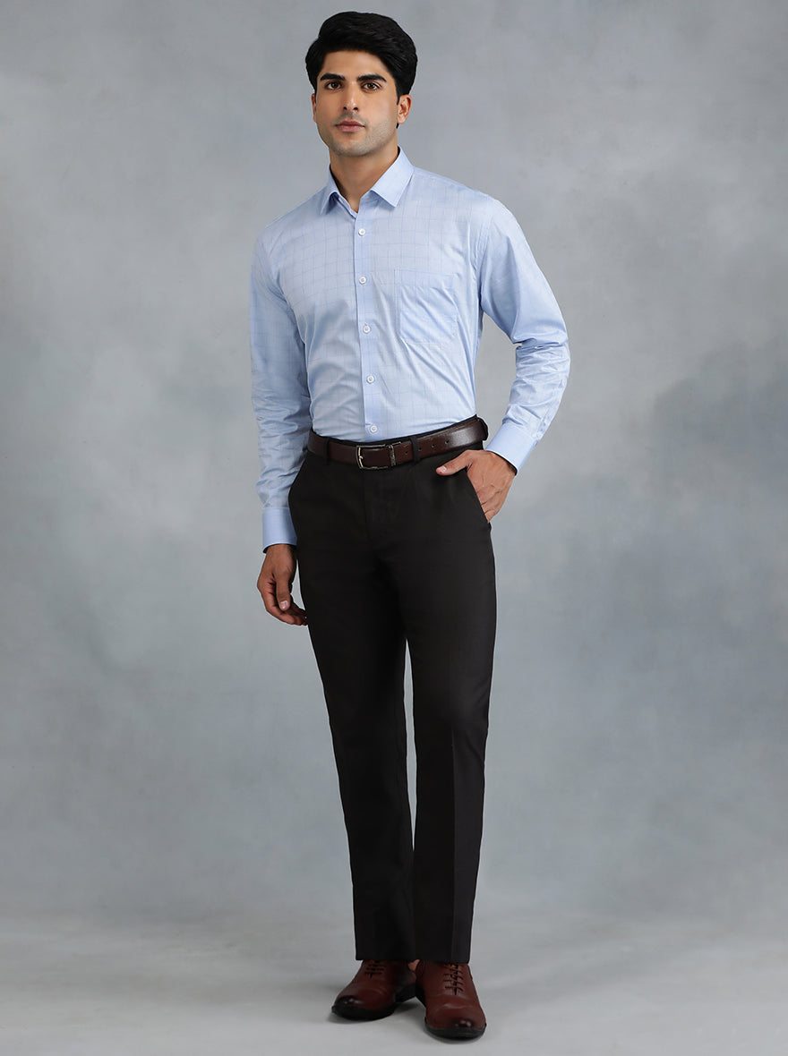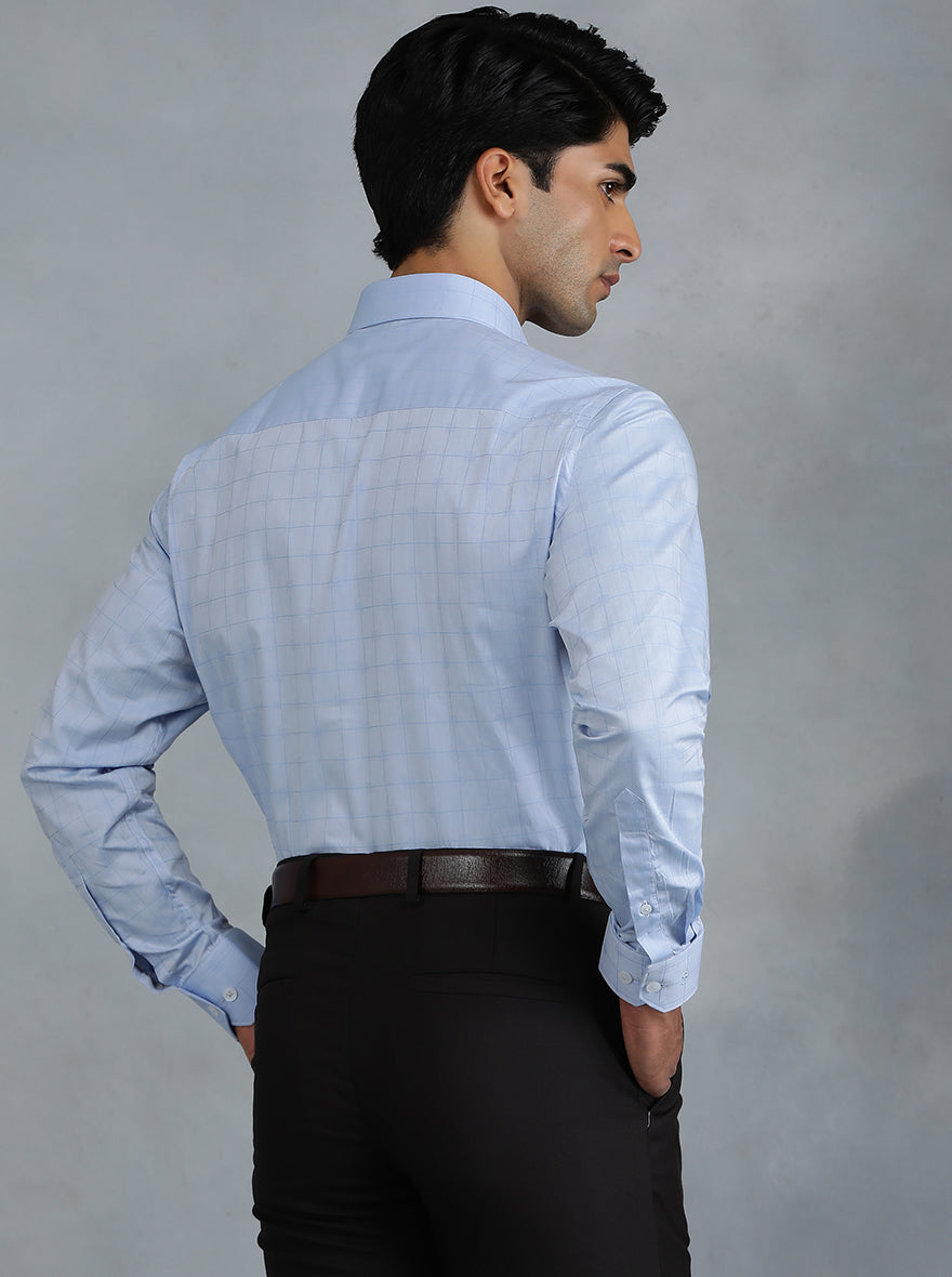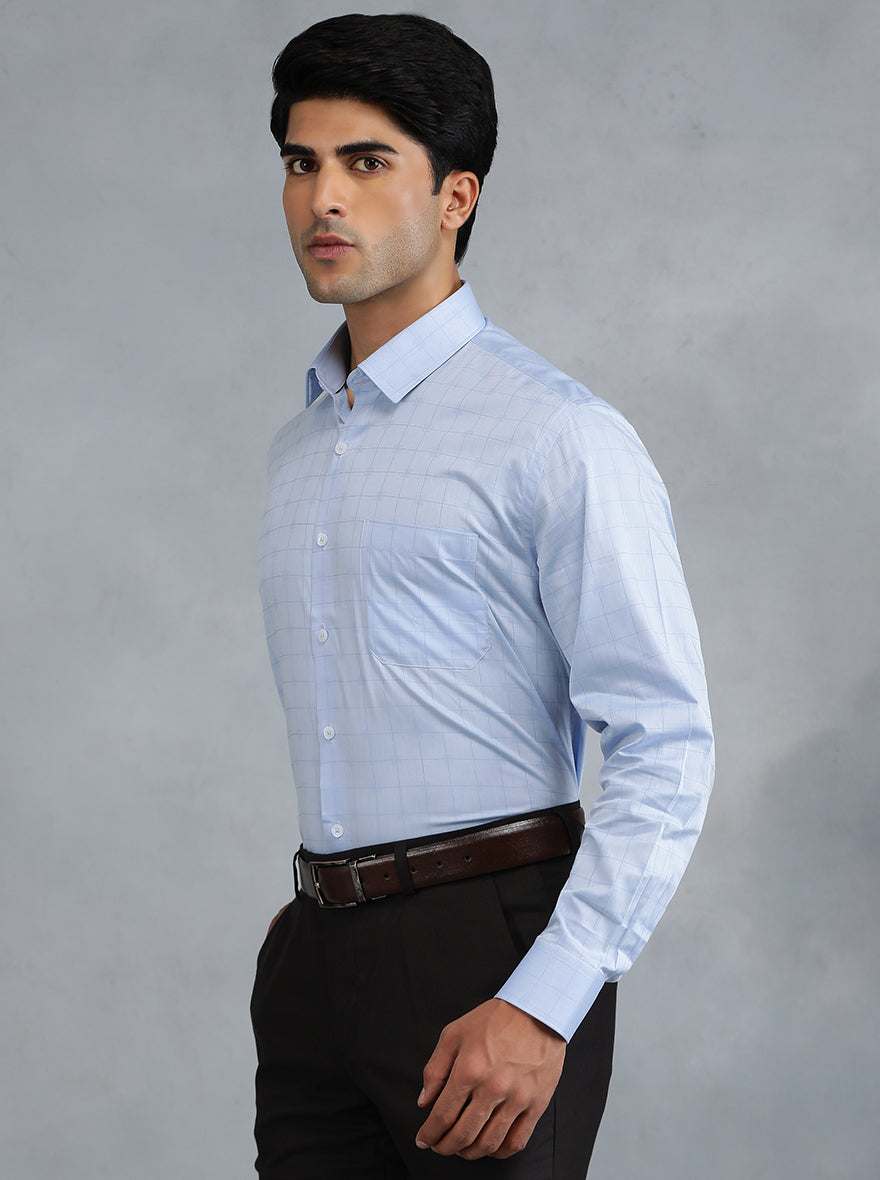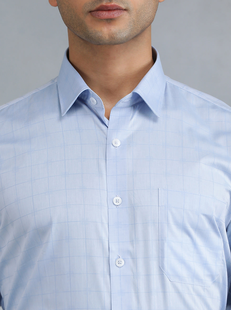 Light Blue Checked Regular Fit Formal Shirt | JadeBlue