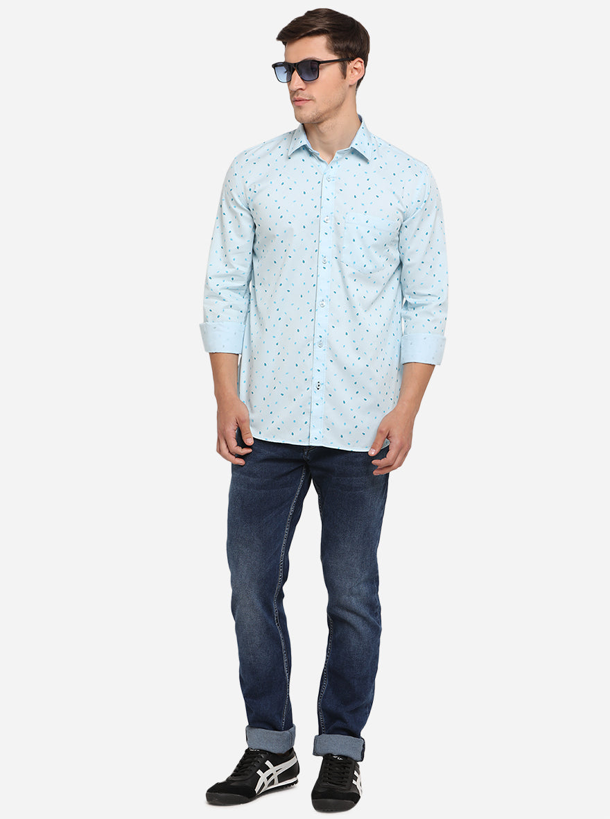 Light Blue Printed Smart Fit Semi Casual Shirt | Greenfibre