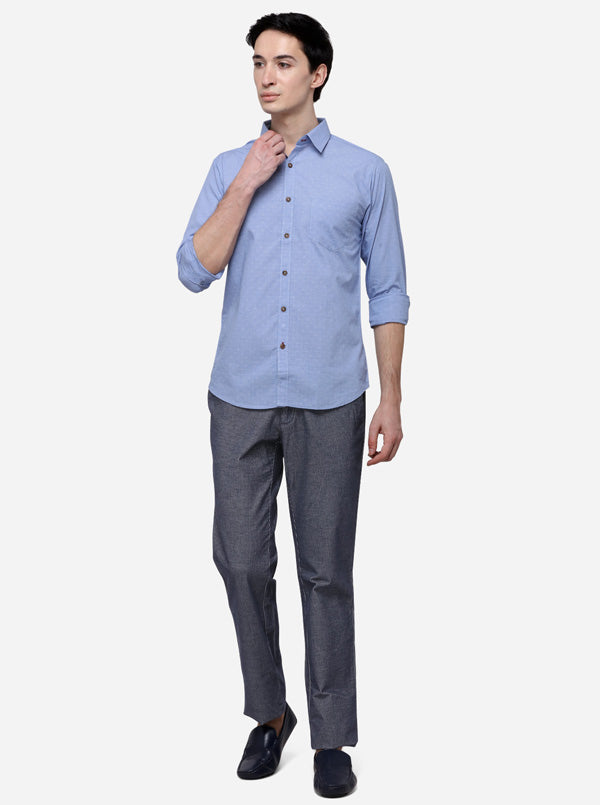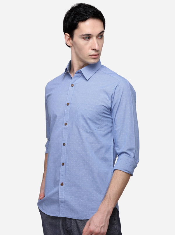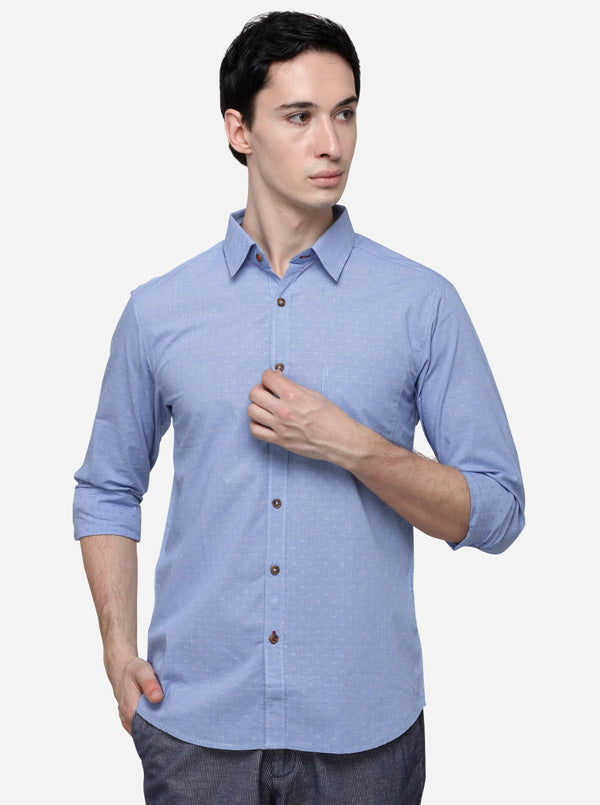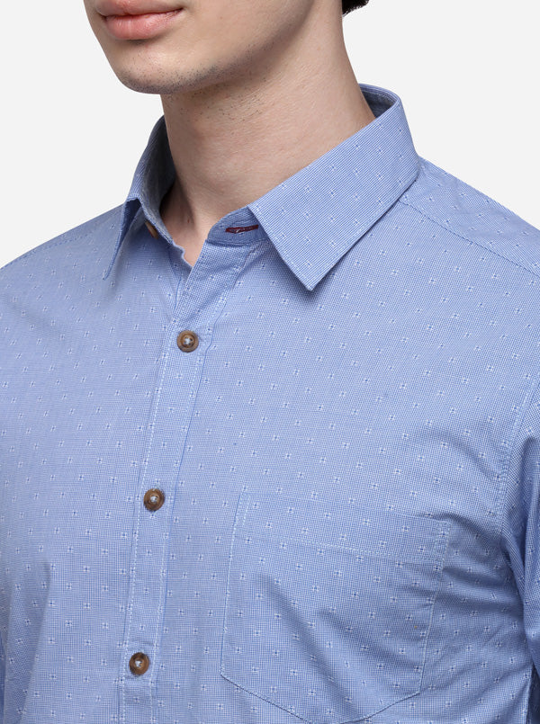 Light Blue Regular Fit Printed Casual Shirt | Greenfibre