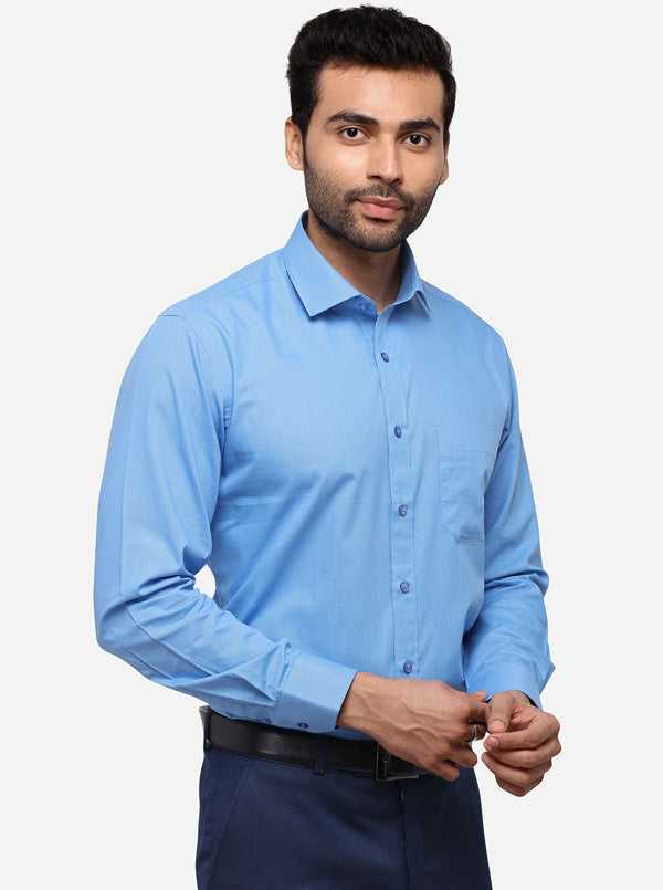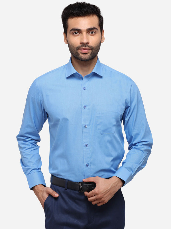 Light Blue Solid Regular Fit Formal Shirt | Greenfibre