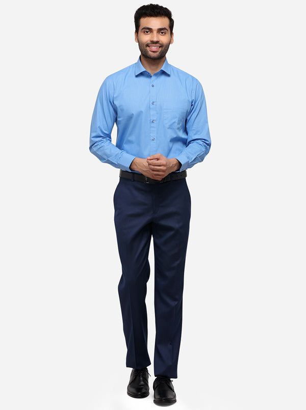 Details: This plain blue mens shirt is a perfect blend of comfort and style. Made from breathable Poly cotton fabric, this regular fit shirt features classic collar, chest pocket and front buttons. It is teamed with semi-formal trousers. incorporate style and comfort into your formal collection by opting for this Self design blue shirt. Made from finest quality of Poly cotton fabric, this regular fit shirt features standard features like classic collar, chest pocket and front buttons for comfy closure.Made to perfection from premium Poly cotton fabric, this regular fit mens shirt features classic collar, chest pocket and Full sleeve. It offers all-day comfort. Opt for this must-have piece & it offers super relaxation. Revamp your formal shirt collection today by adding this blue mens formal shirt to it.