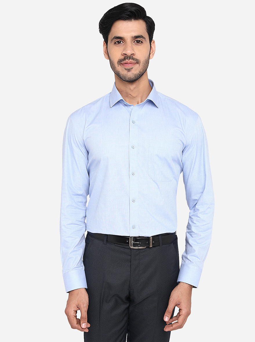 Light Blue Solid Regular Fit Formal Shirt | Greenfibre