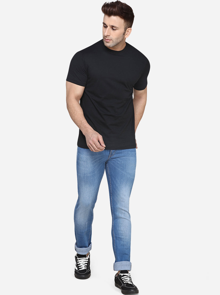 Flaunt different looks each day by donning this pair of Light Blue jeans. It has been stitched using high quality of Cotton Stretch fabric, which offers great comfort. The wide range of basic features lend a meaningful touch to this pair. This trendy pair of Washed Narrow Fit Men's jeans is a must-have piece. This pair of Cotton Stretch men's jeans is stitched by incorporating basic features like belt loops, zip fly, single button closure & 4 pockets.