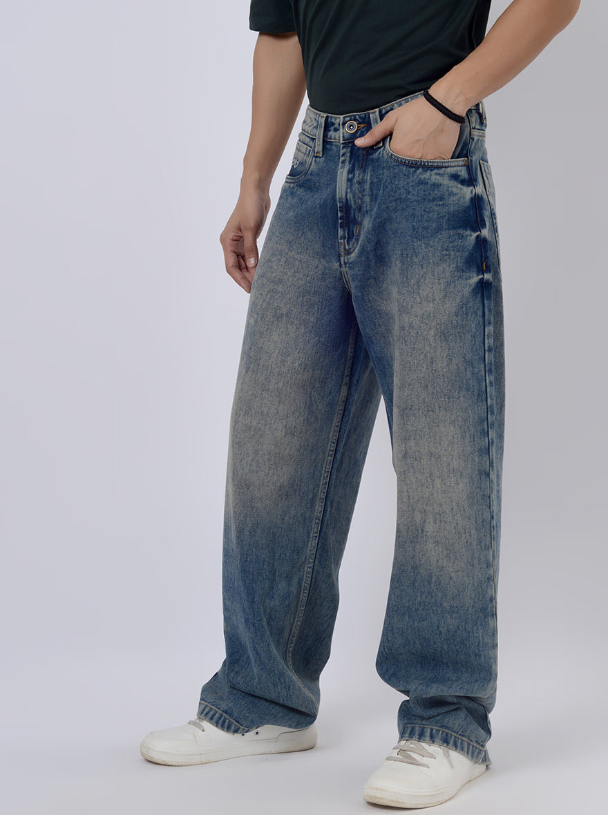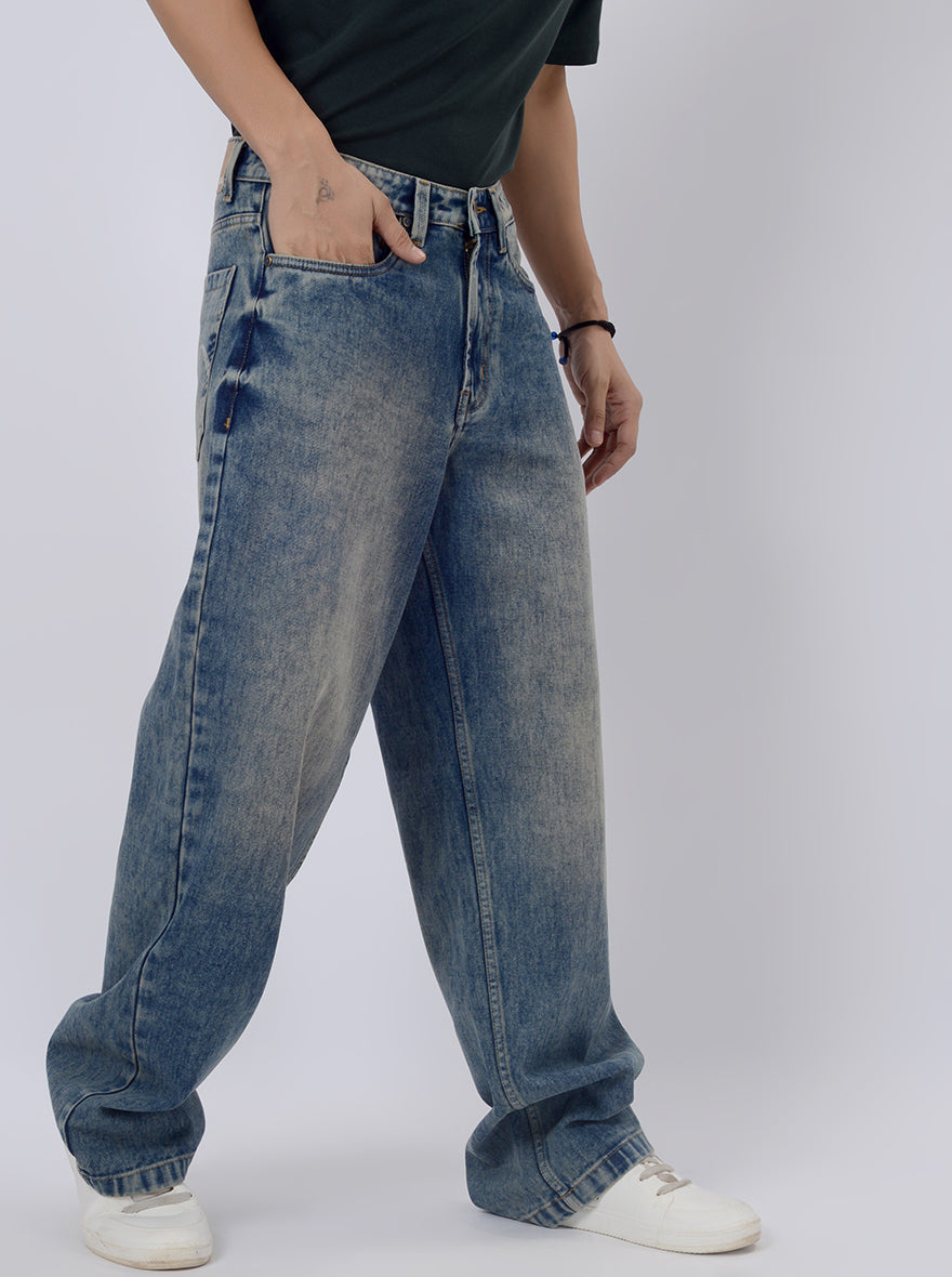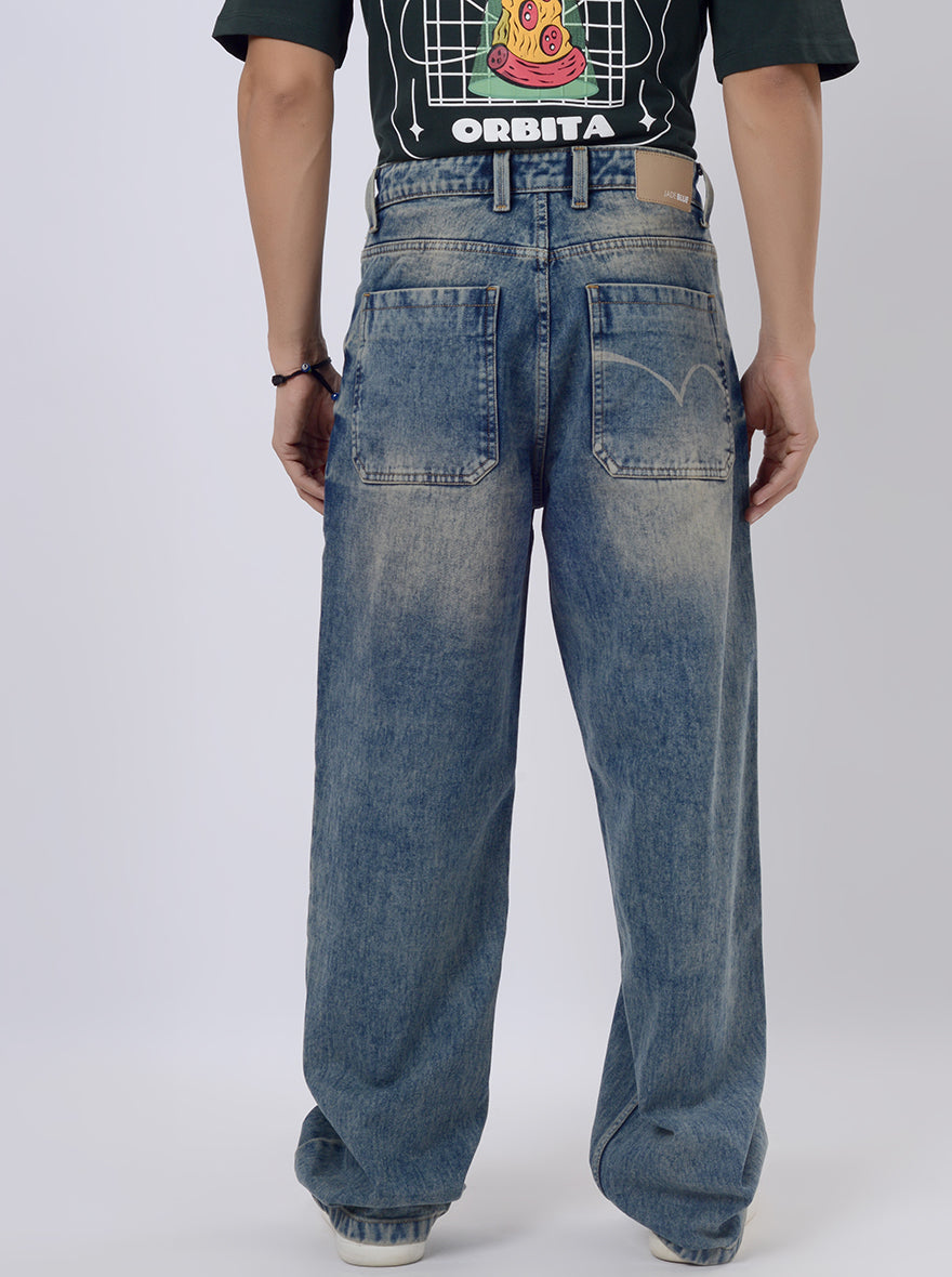 Light Blue Washed Relax Fit Baggy Denim | JadeBlue