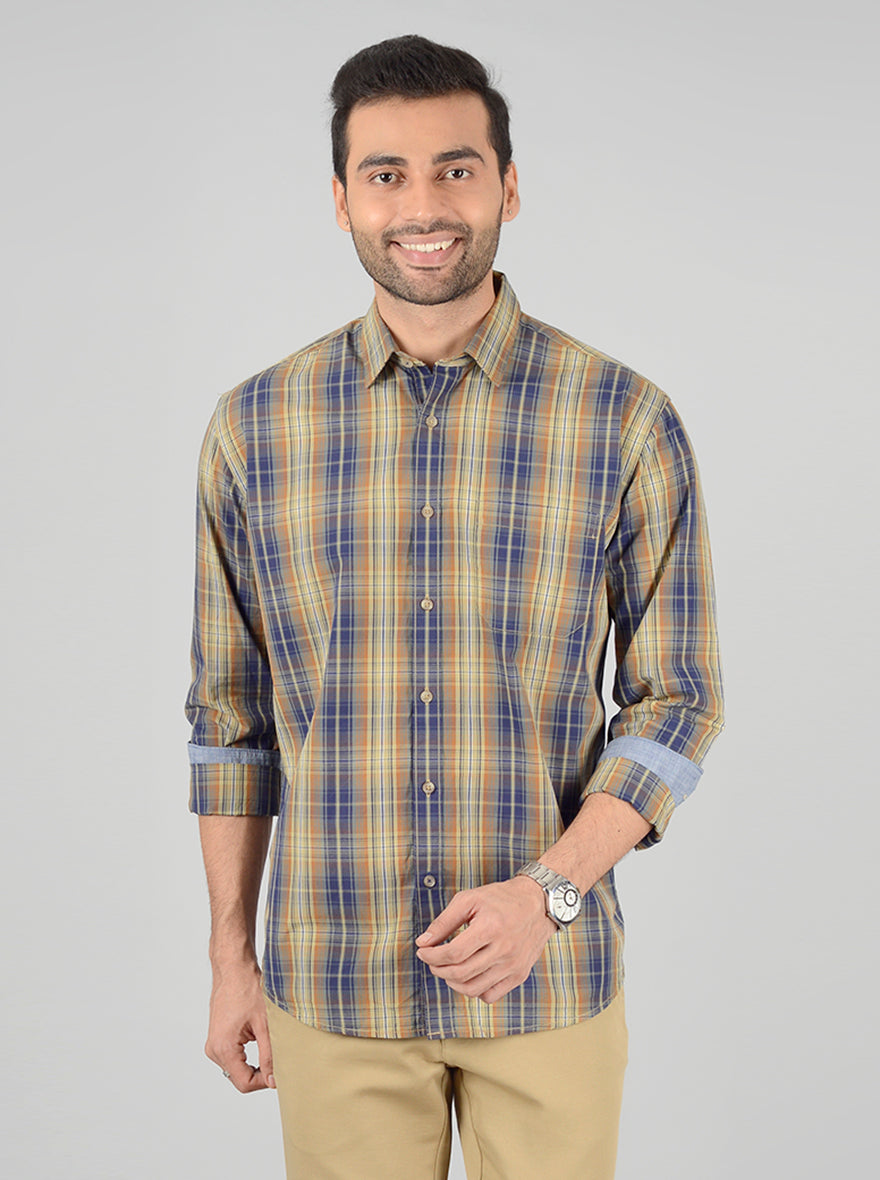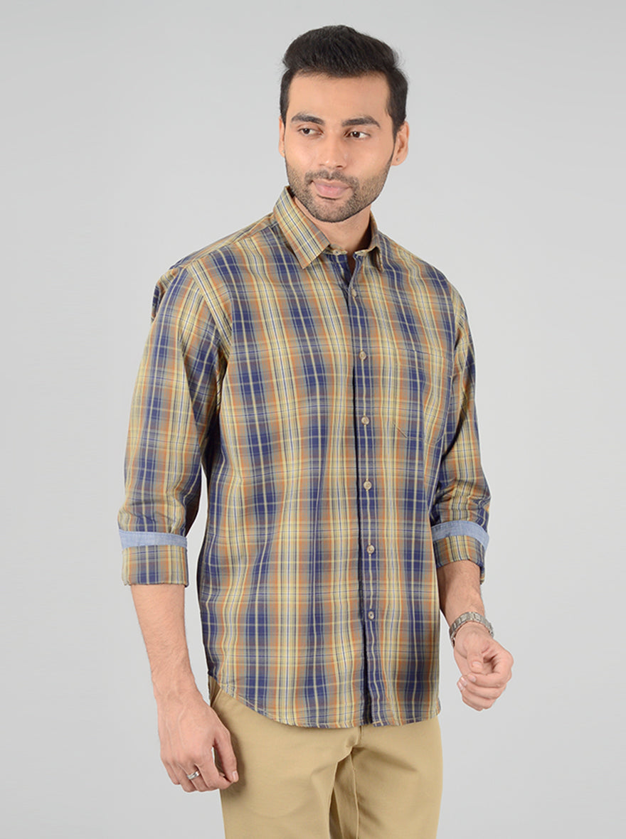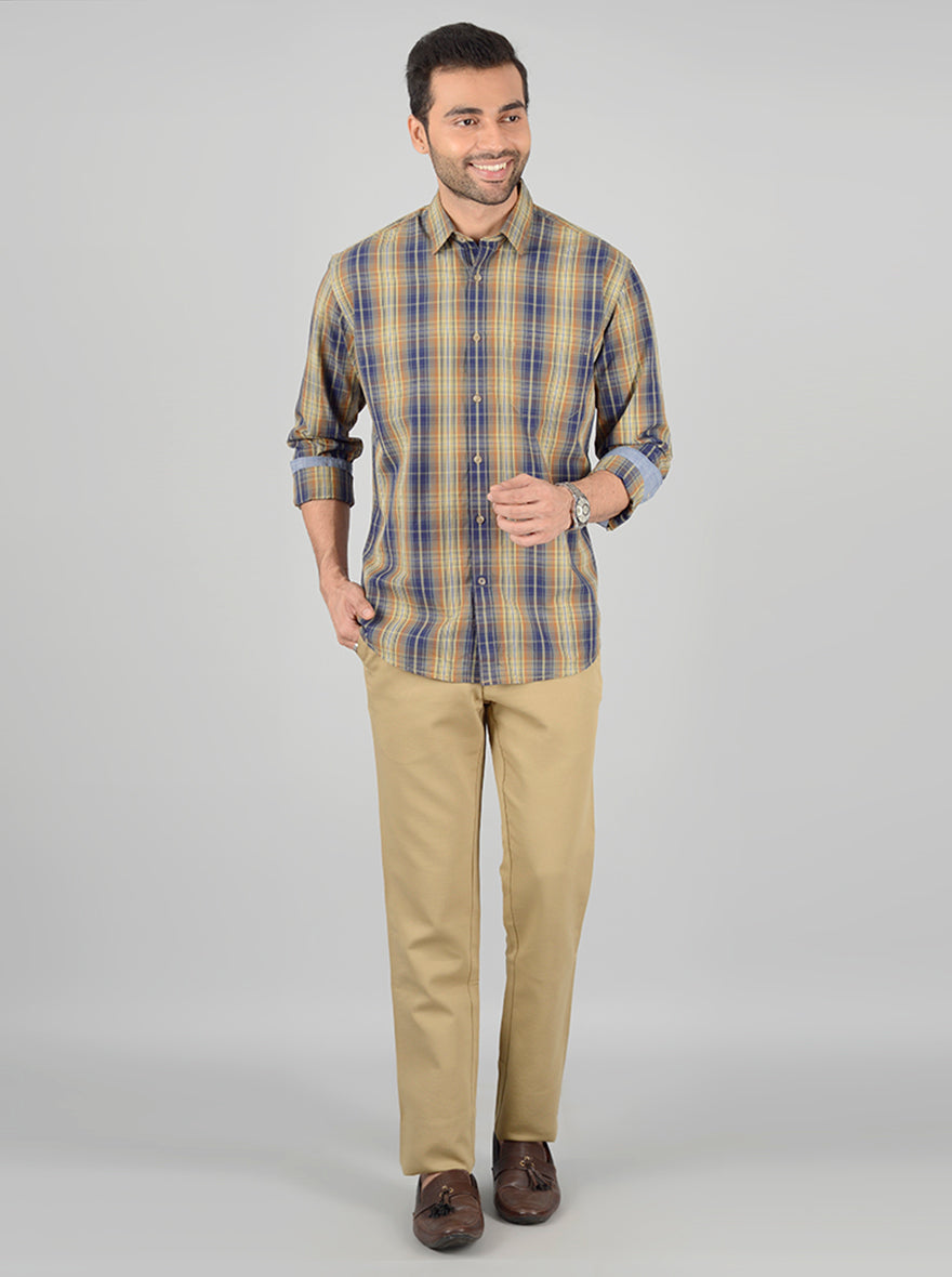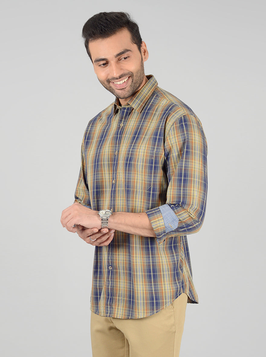 Light Brown Checked Classic Fit Casual Shirt | Greenfibre