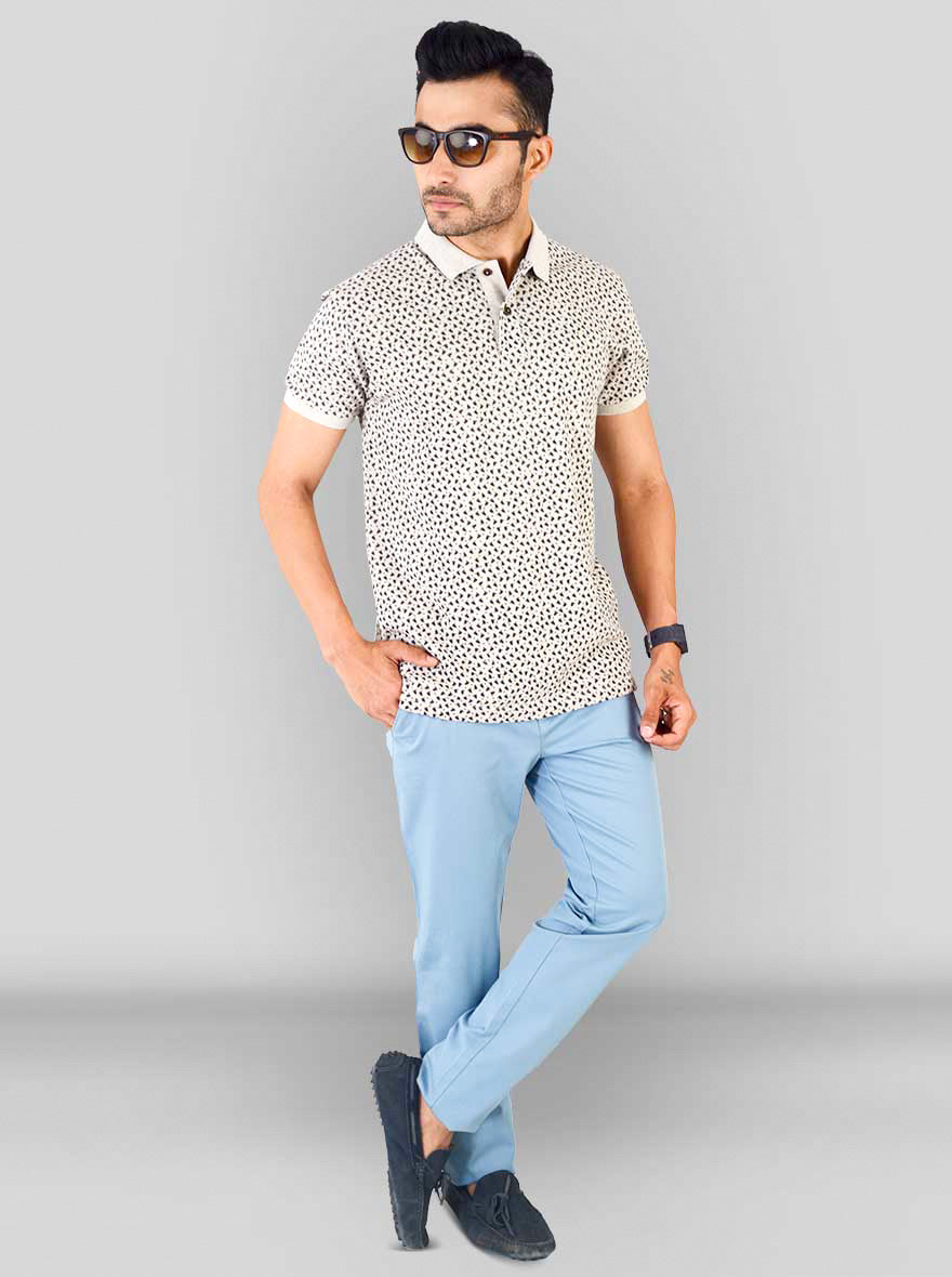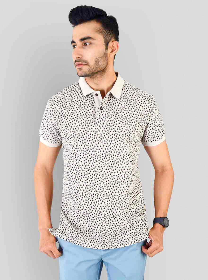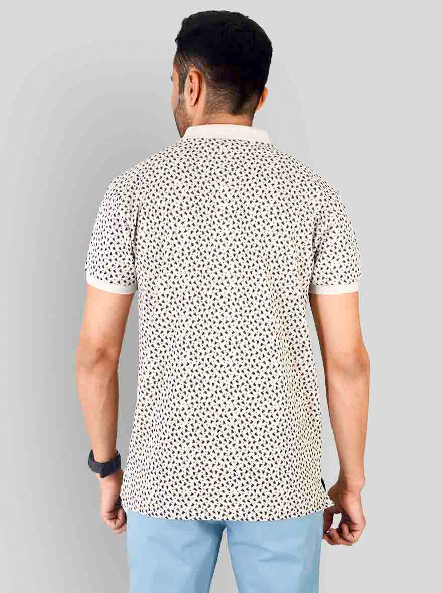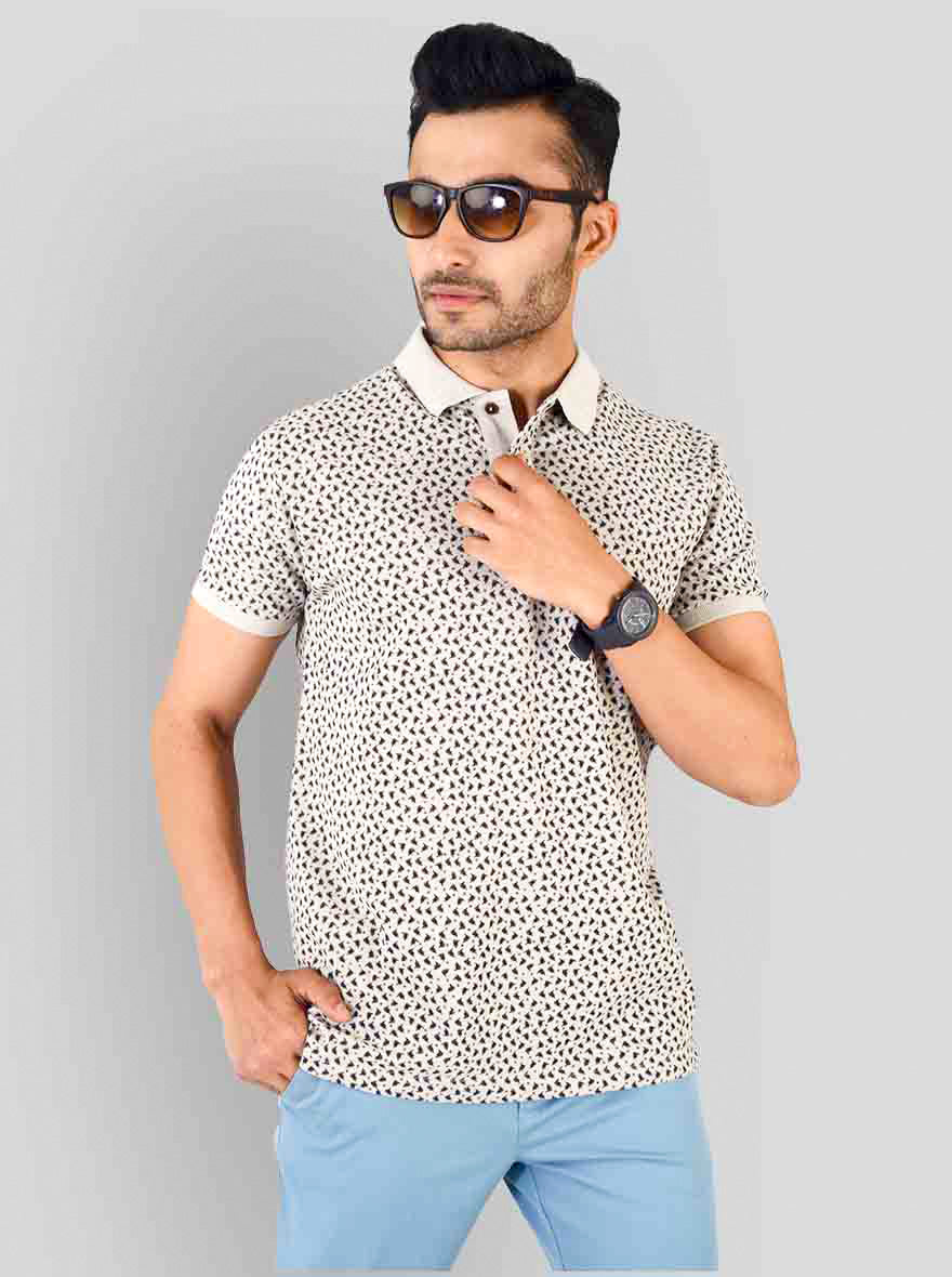 Light Camel Brown Melange Printed Slim Fit Polo T-shirt | Greenfibre