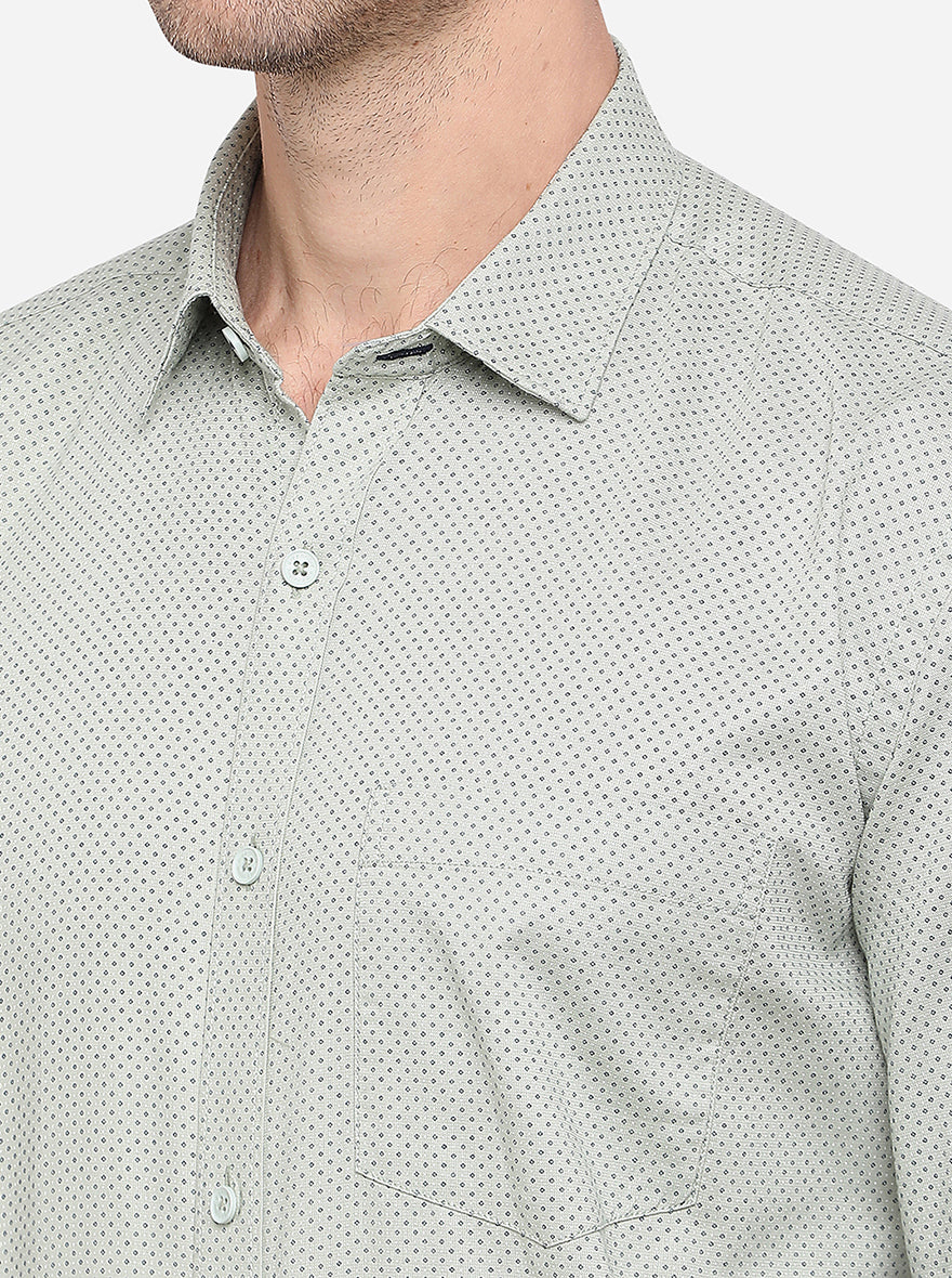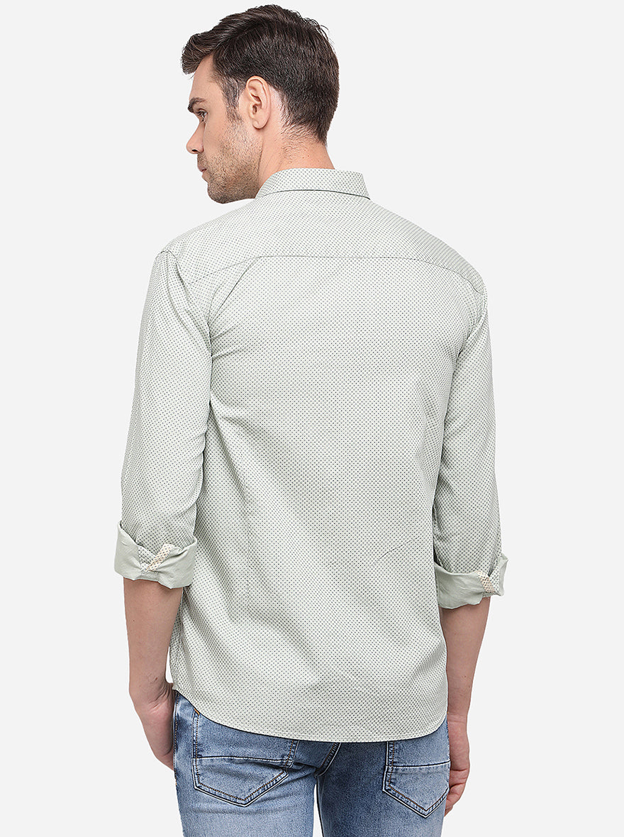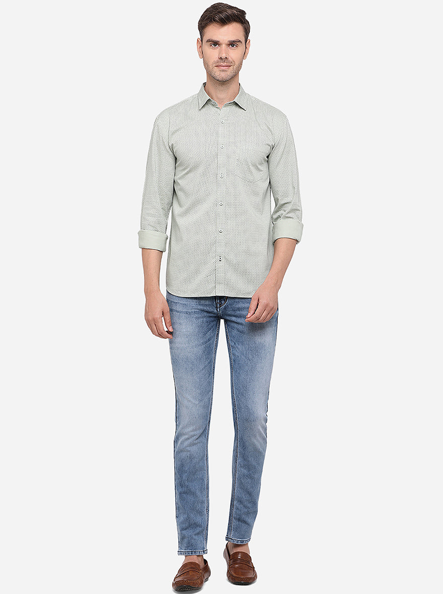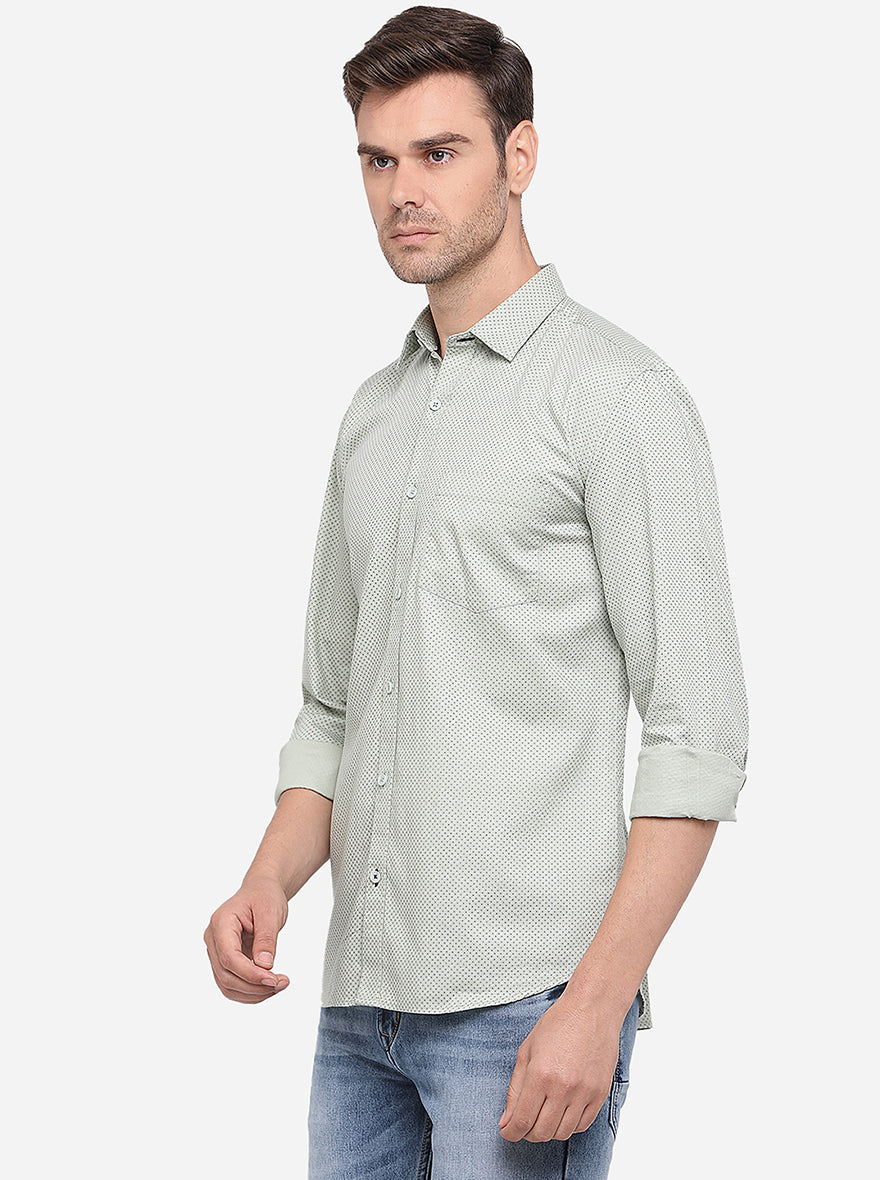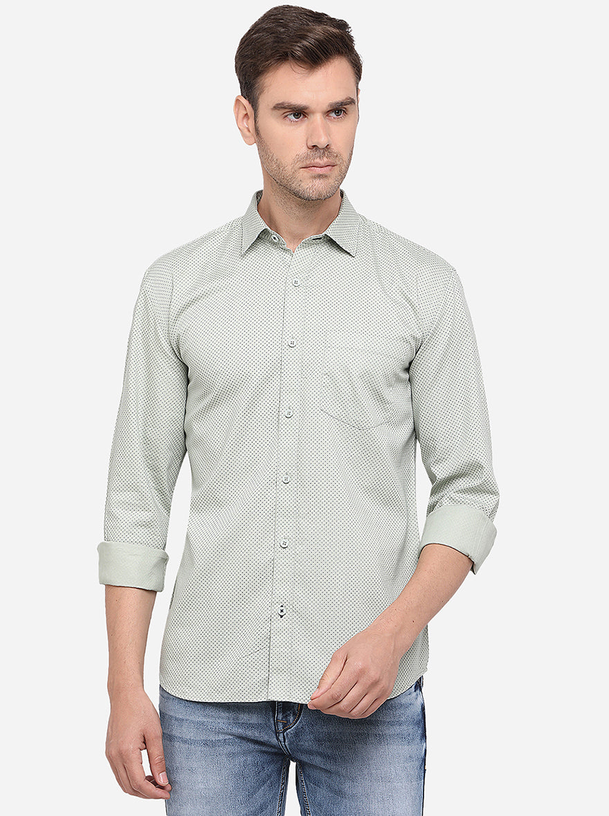 Light Green Printed Slim Fit Semi Casual Shirt | Greenfibre