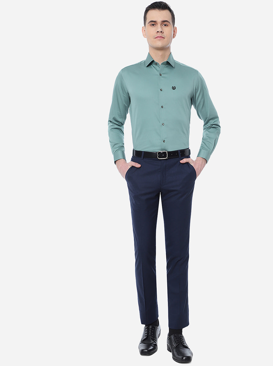 Light Green Solid Slim Fit Party Wear Shirt | Greenfibre