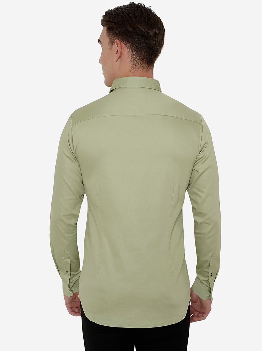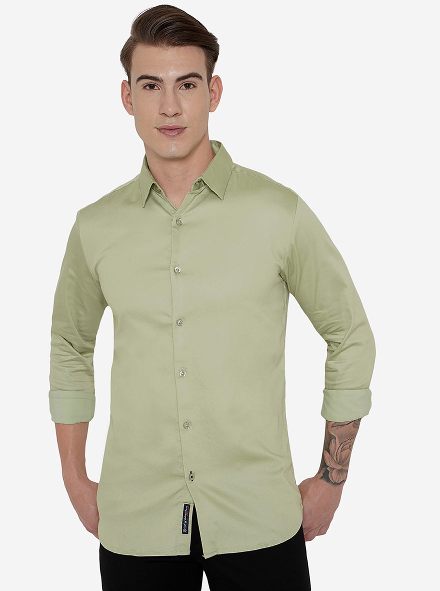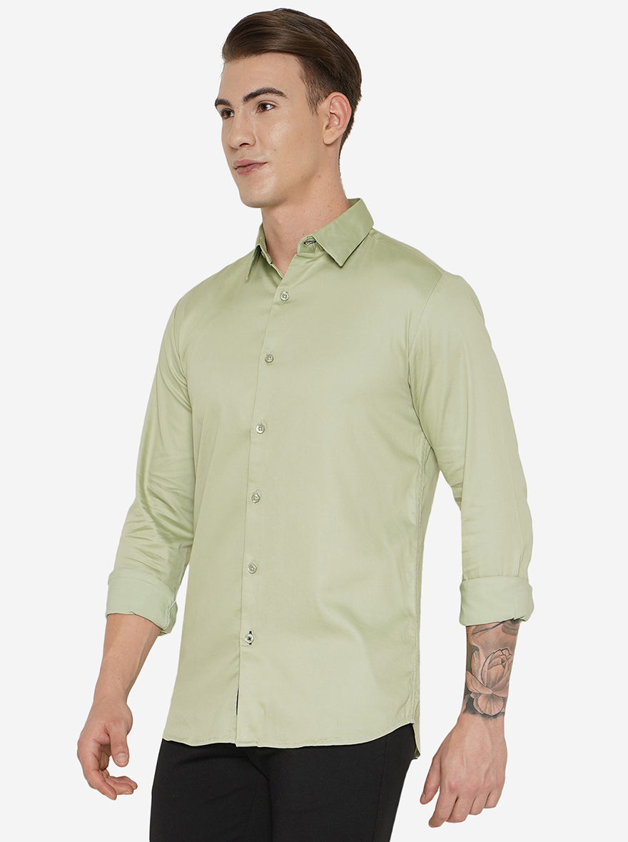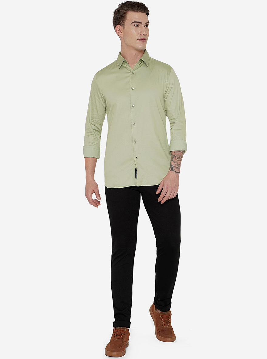 Light Green Solid Slim Fit Semi Casual Shirt | JadeBlue