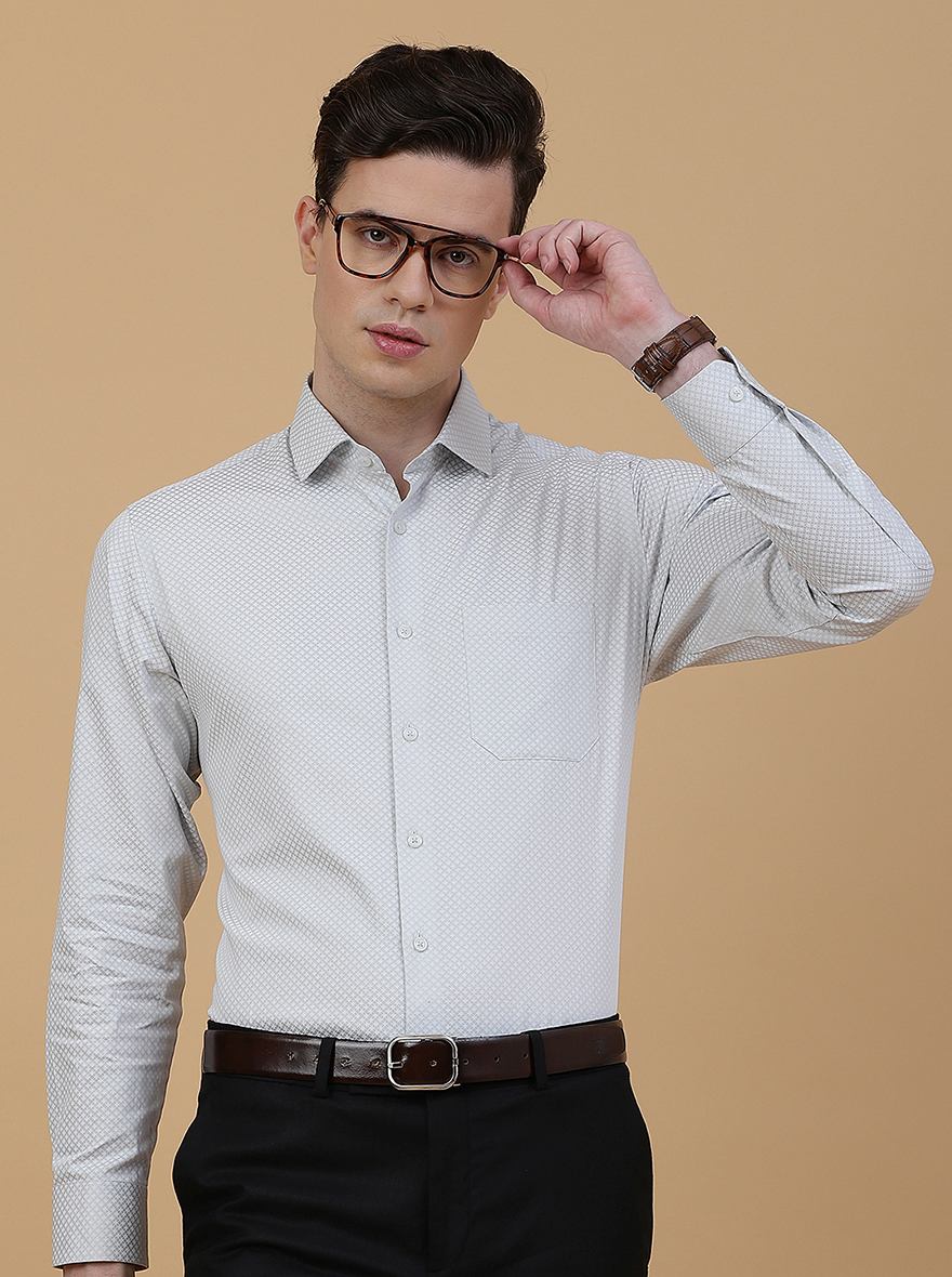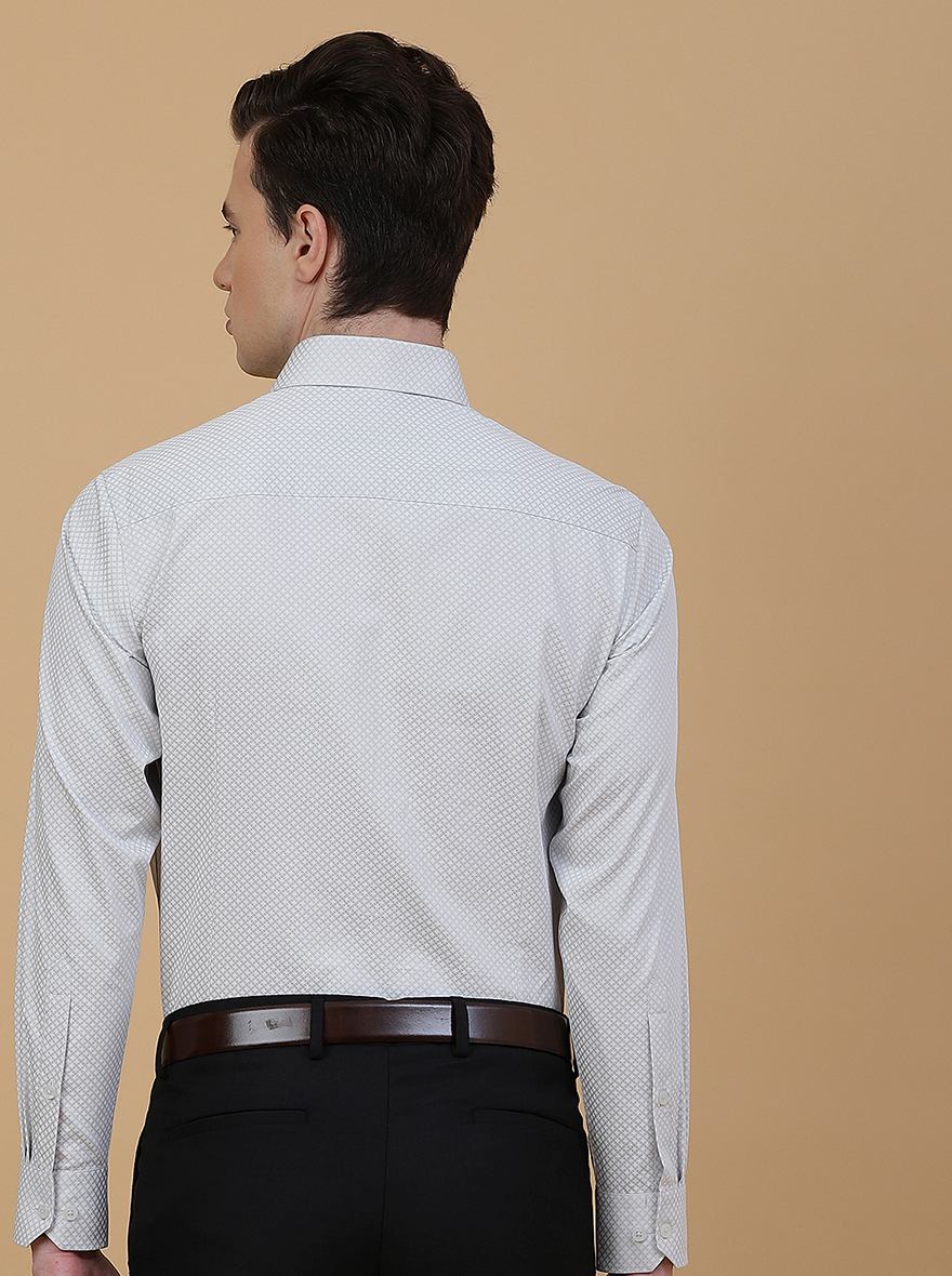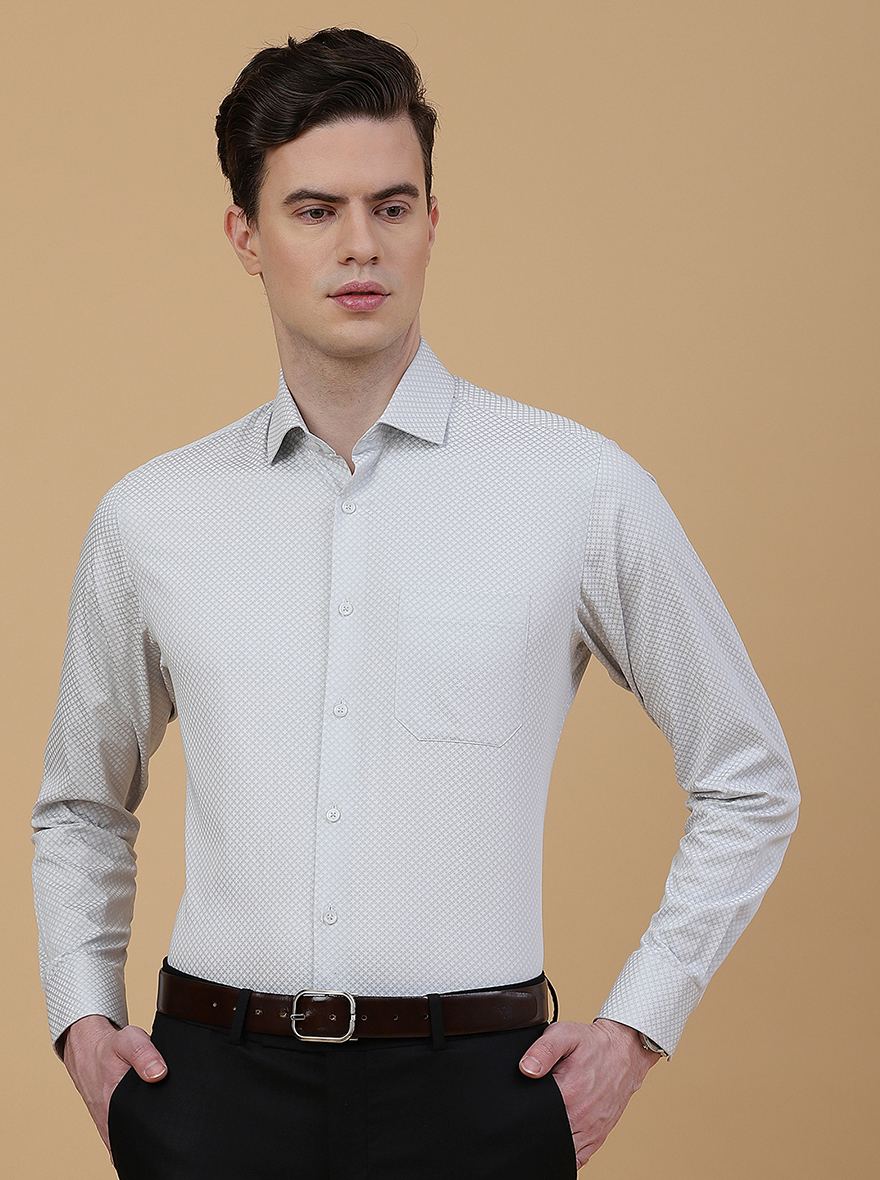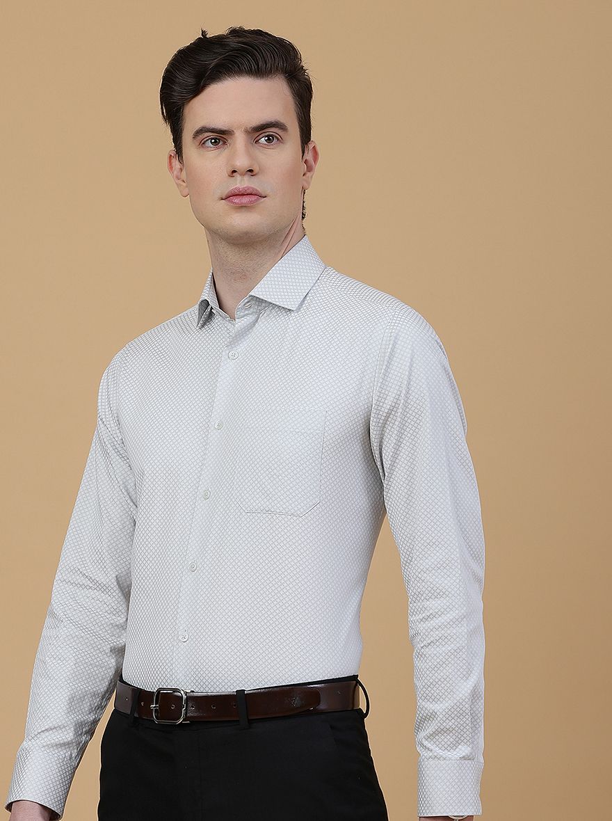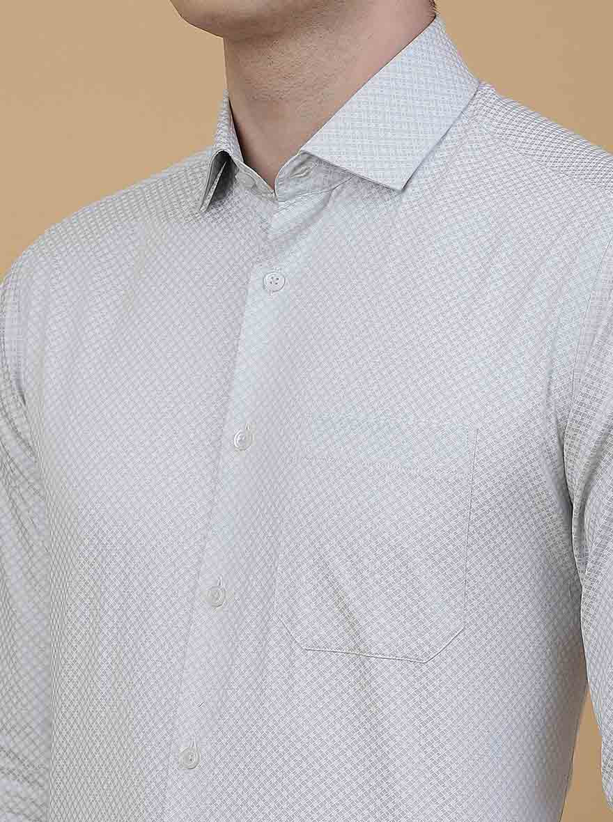 Light Grey Printed Slim Fit Formal Shirt | Greenfibre