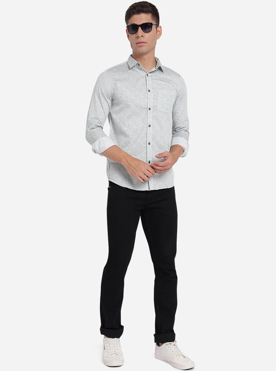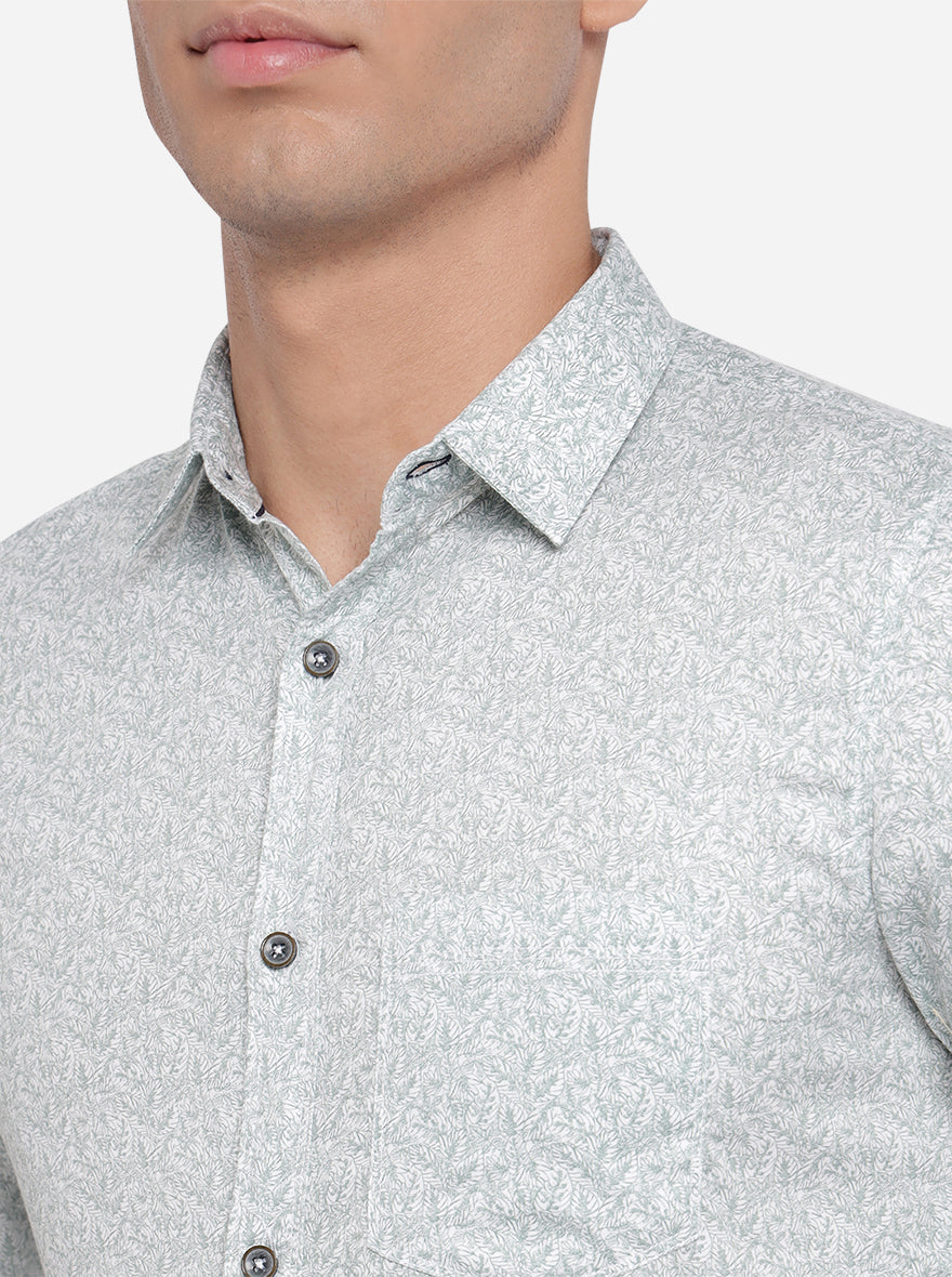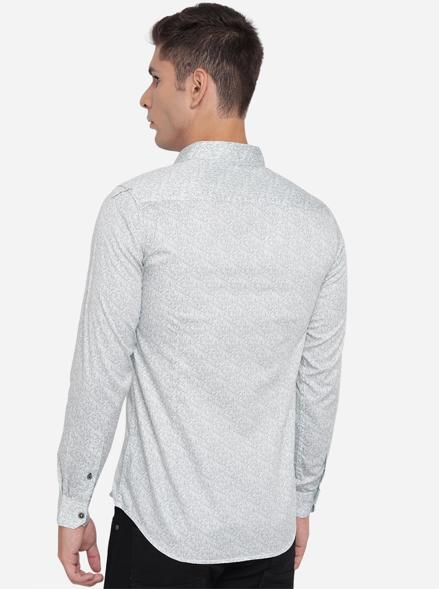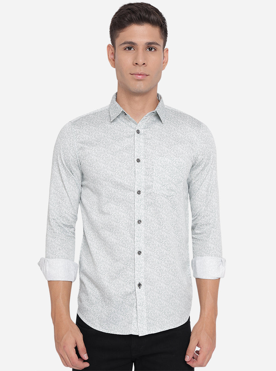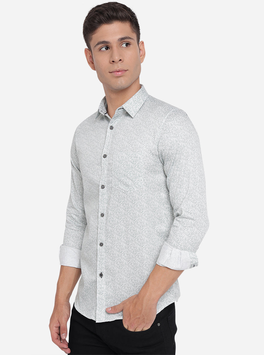 Light Grey Printed Slim Fit Semi Casual Shirt | JadeBlue