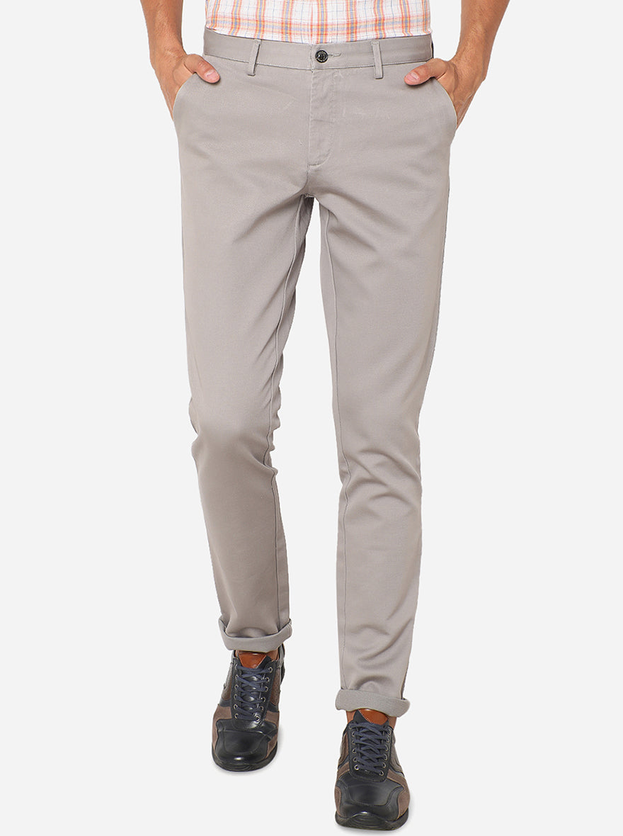 Light Grey Solid Uno Fit Casual Trouser | JadeBlue