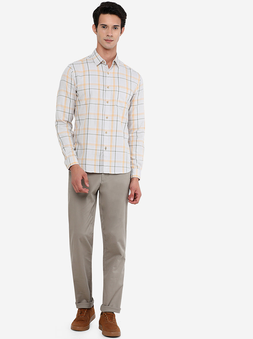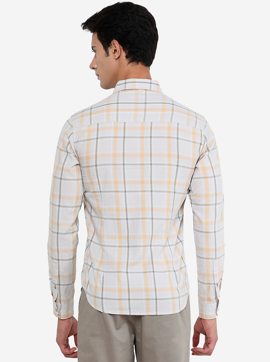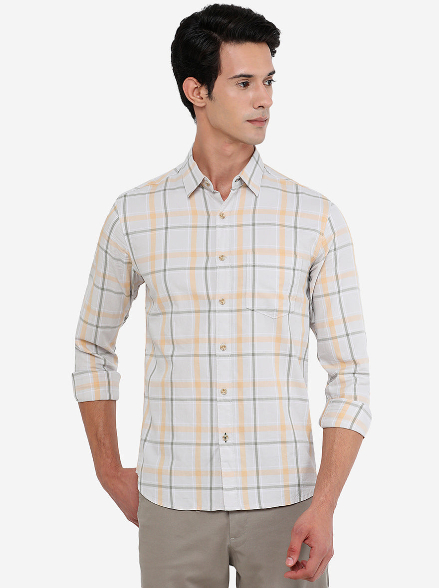 Light Grey & Yellow Checked Slim Fit Semi Casual Shirt | Greenfibre