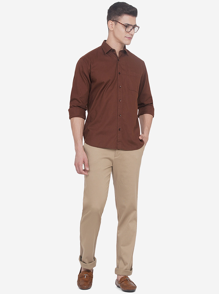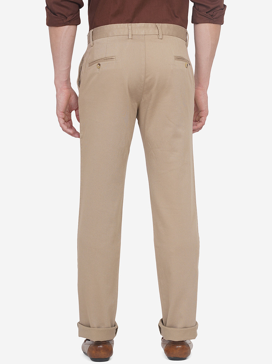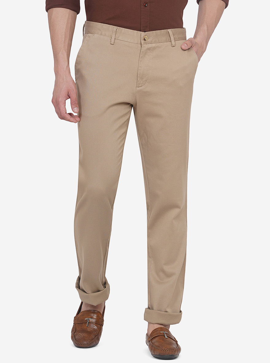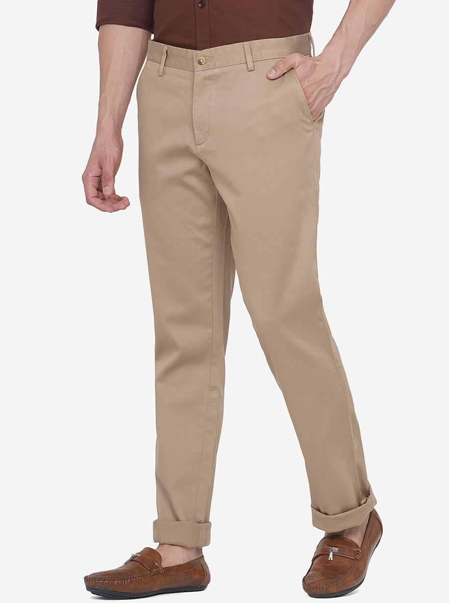 Light Khaki Solid Slim Fit Casual Trouser | Greenfibre