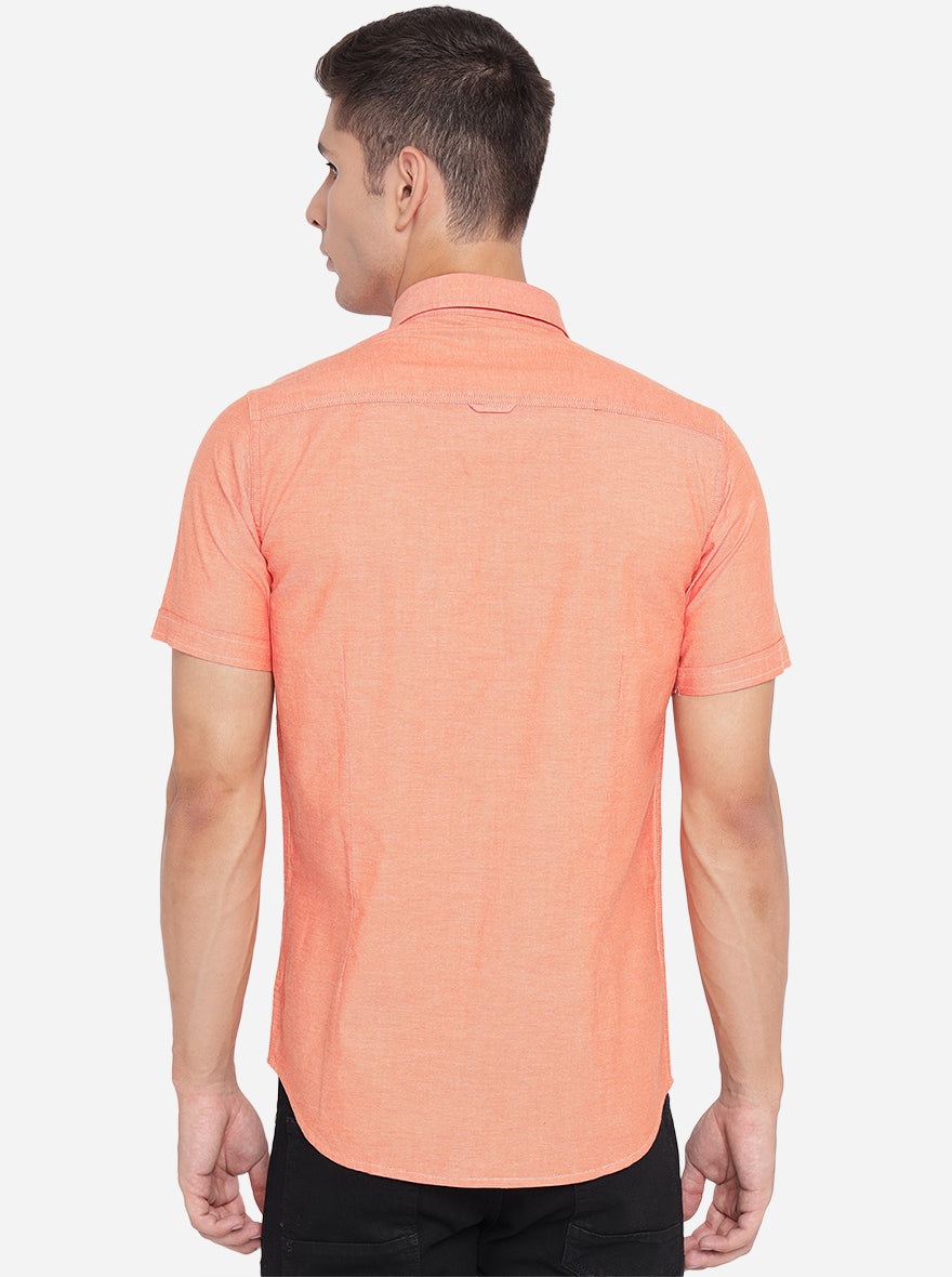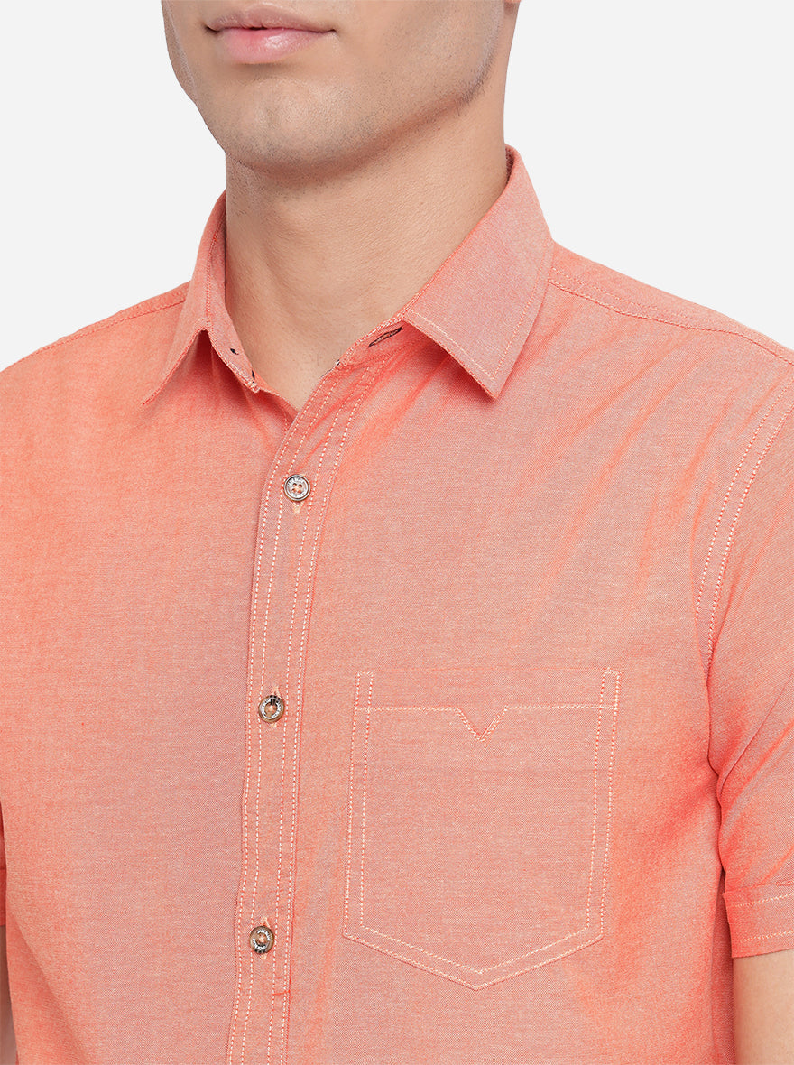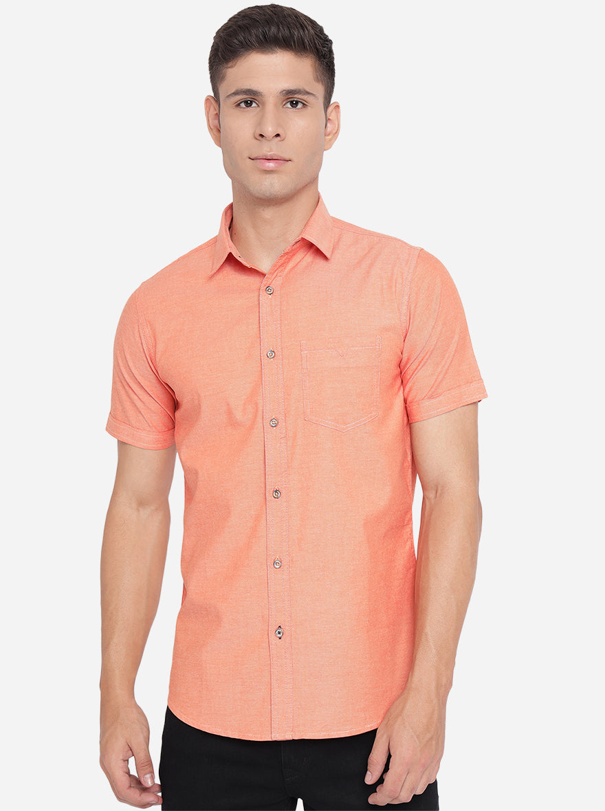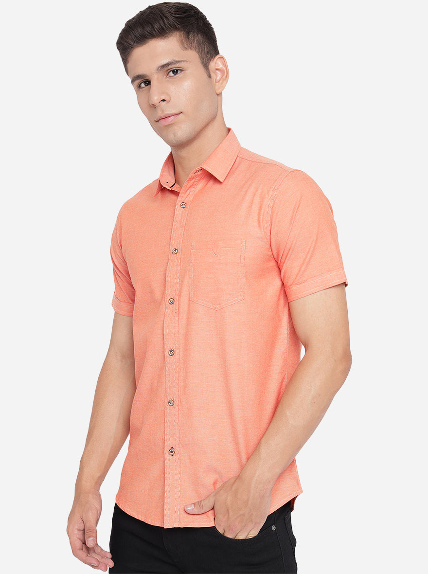 Light Orange Solid Slim Fit Semi Casual Shirt | JadeBlue