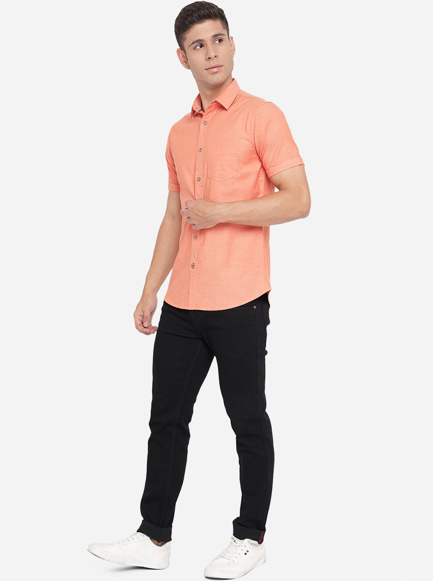 Details: Don a stunning look on the moving date wearing this Light-Orange Shirt from the latest collection of JadeBlue Sport. It features a shirt collar, half-sleeves and offers a slim-fit. It comes with a pocket on front. It is adorned with a solid pattern all over, making up for a classy choice. Perfect for semi-casual wear or weekend wear. Crafted with pure cotton, it promises a soft touch against the skin and a comfort like no other. Team it with a well-fitted blue denim and white sneakers to complete the look like a pro.