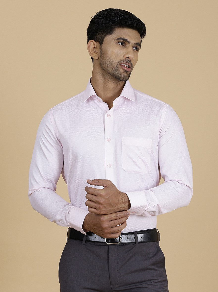 Light Pink Printed Slim Fit Formal Shirt | Greenfibre