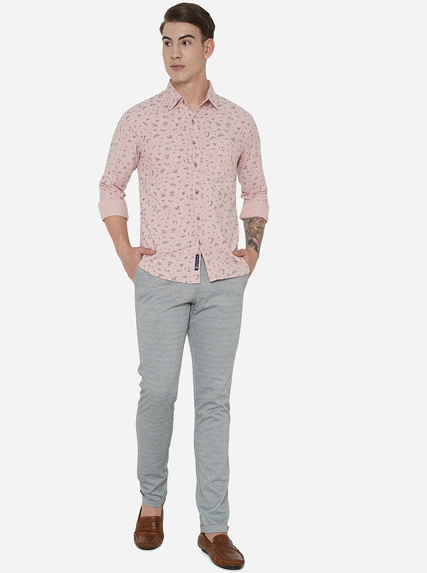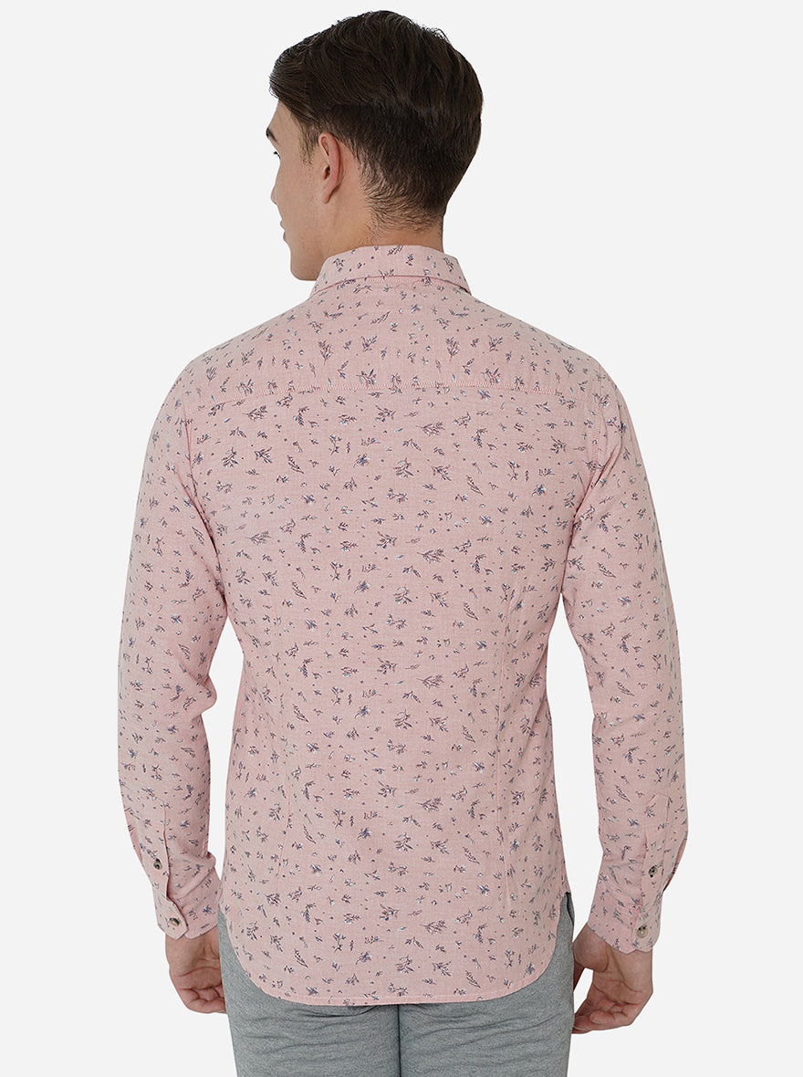 Light Pink Printed Slim Fit Semi Casual Shirt | Greenfibre