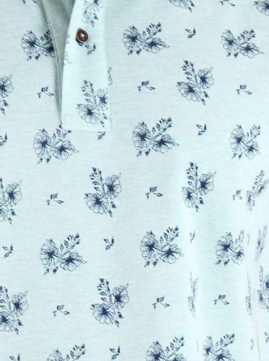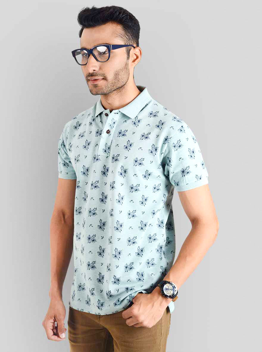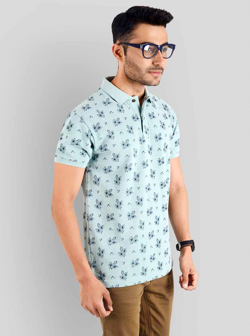 Light Pistachio Melange Printed Slim Fit Polo T-shirt | Greenfibre