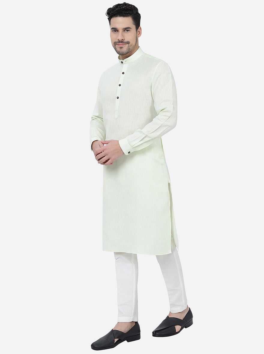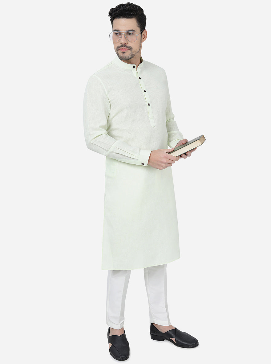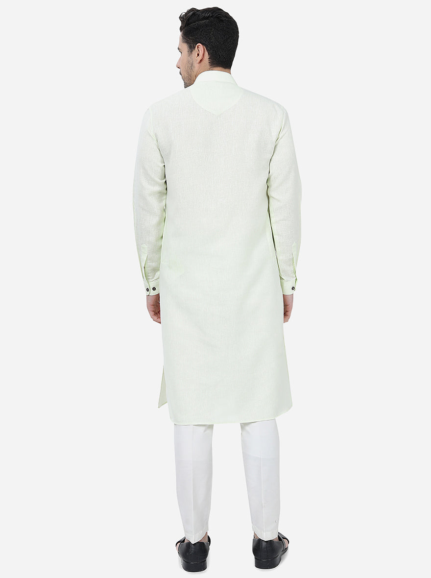 Lime Green Solid Regular Fit Modi Kurta | JadeBlue
