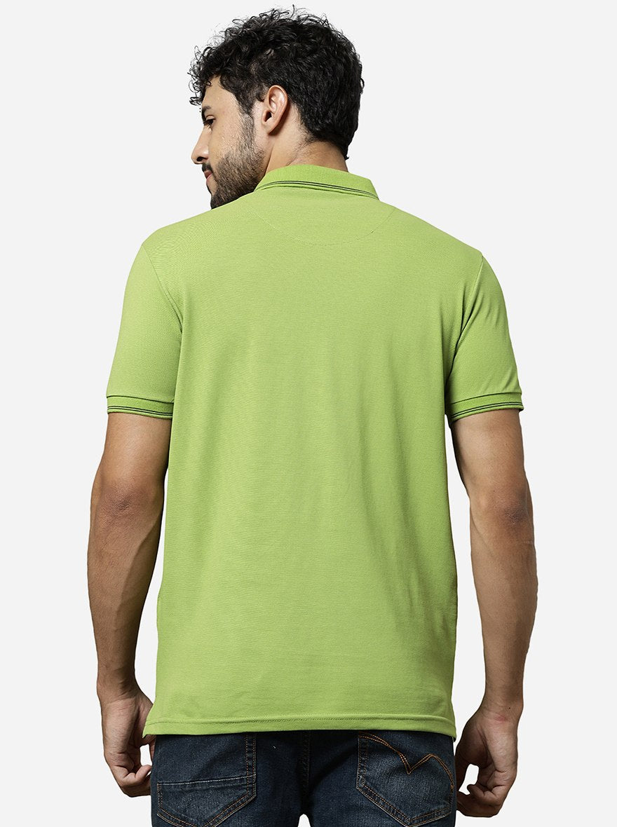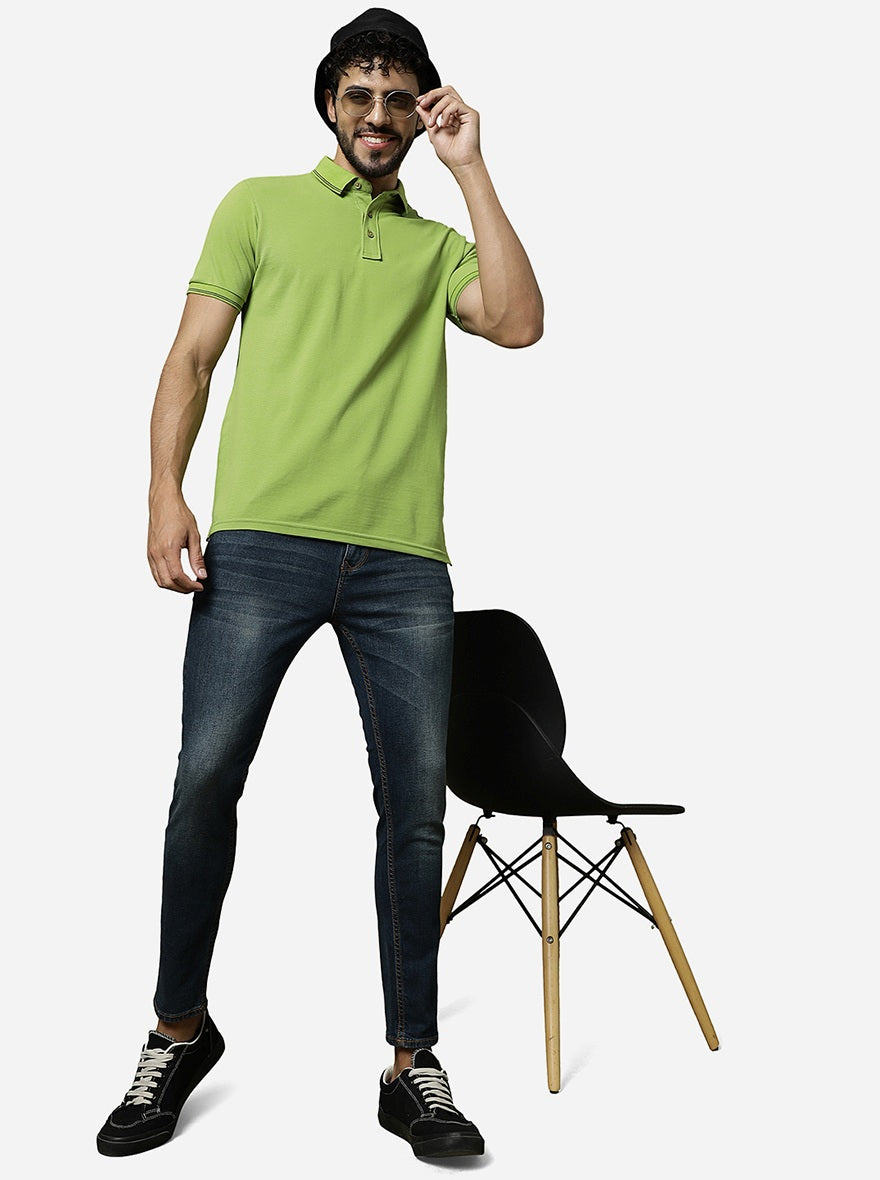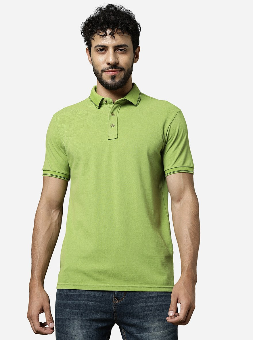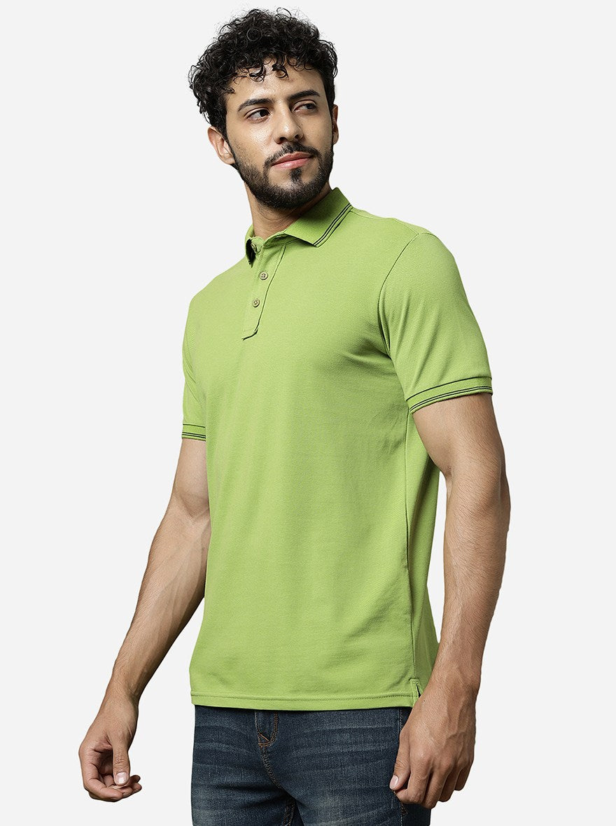 Macaw Green Solid Slim Fit Polo T-Shirt | JadeBlue