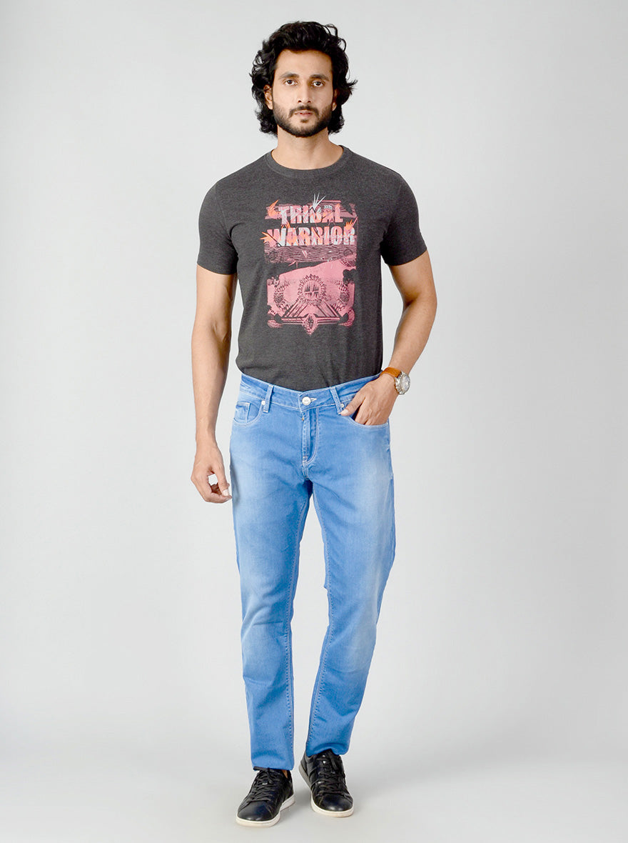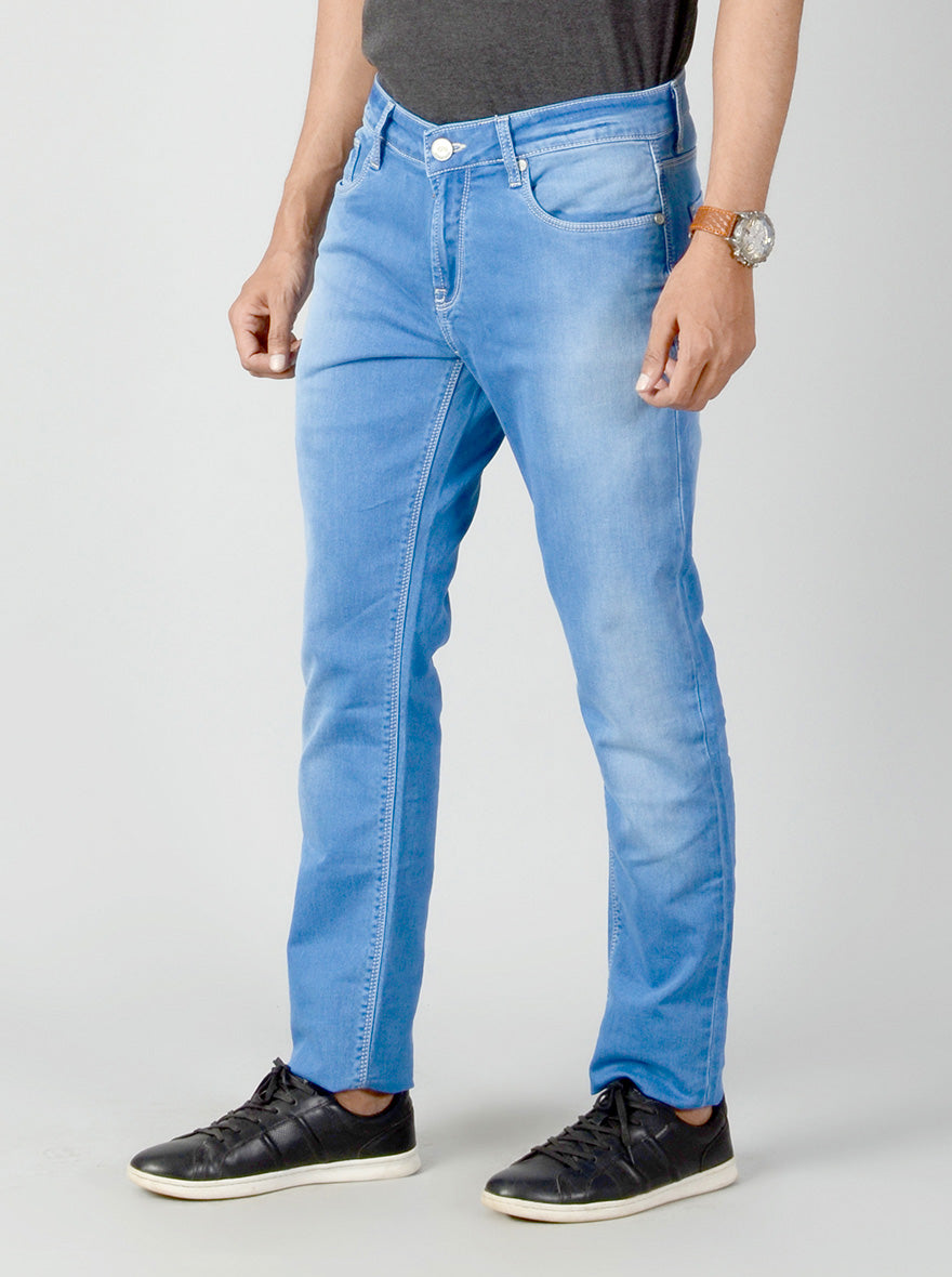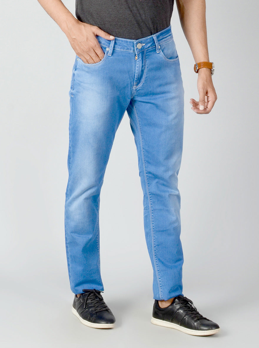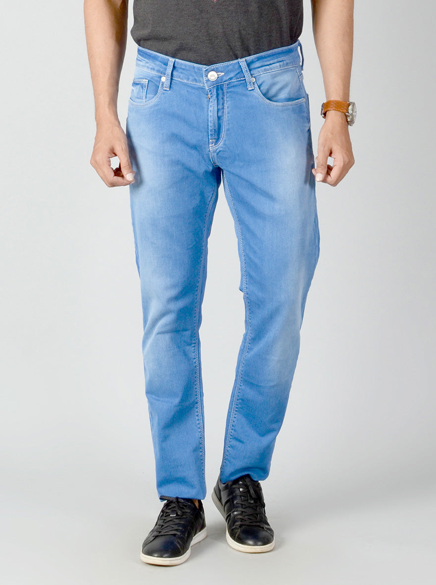 Details: Upgrade your wardrobe in style by adding this fashionable pair of slim fit blue jeans. Made from cotton lycra fabric, this pair of jeans features belt loops, zip fly, single button closure and 4 functional pockets.
