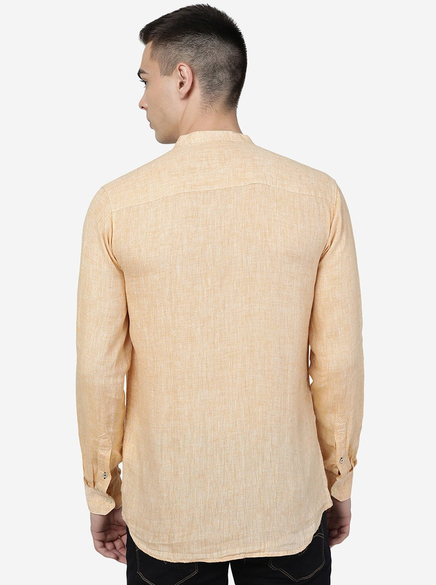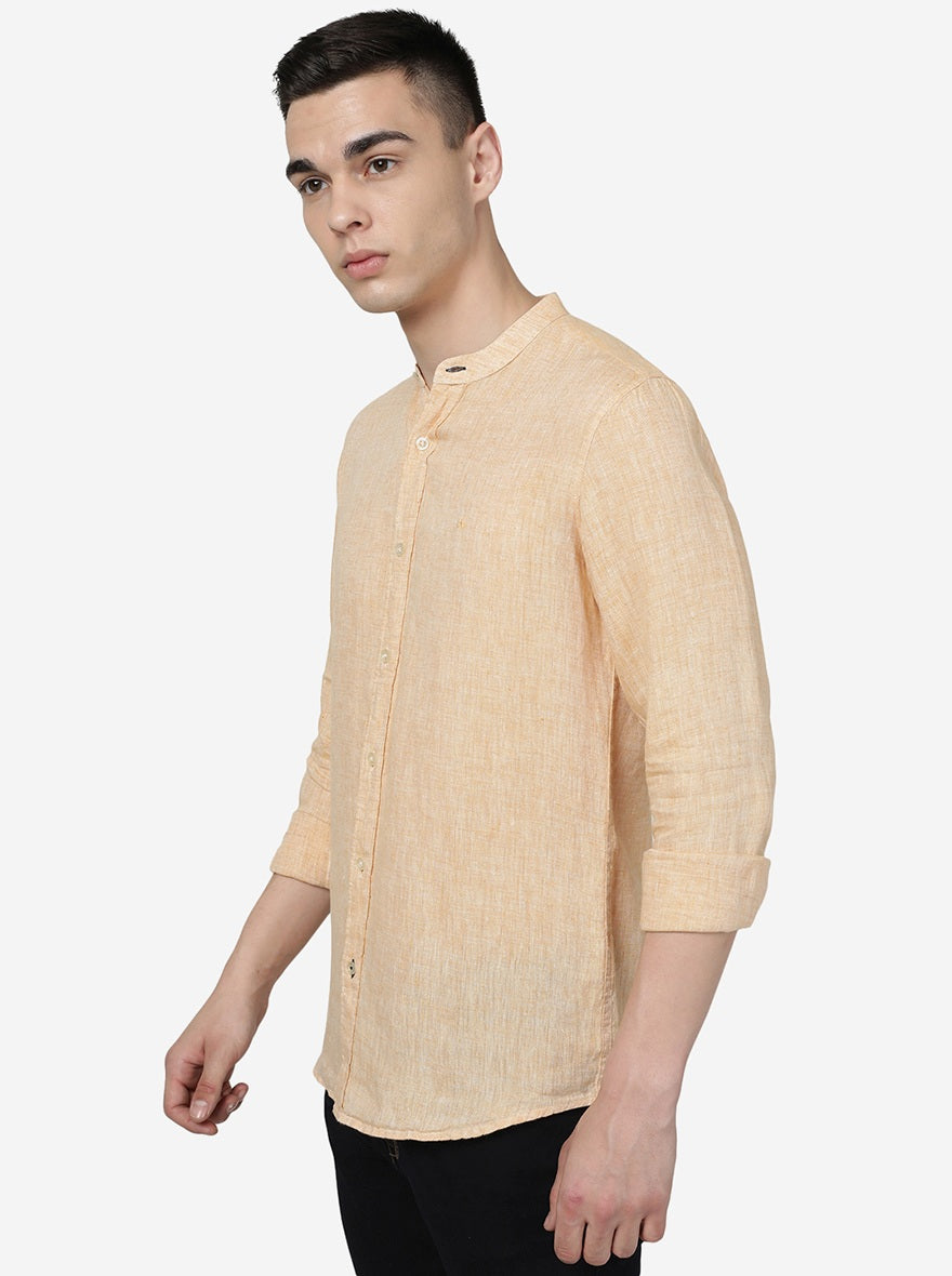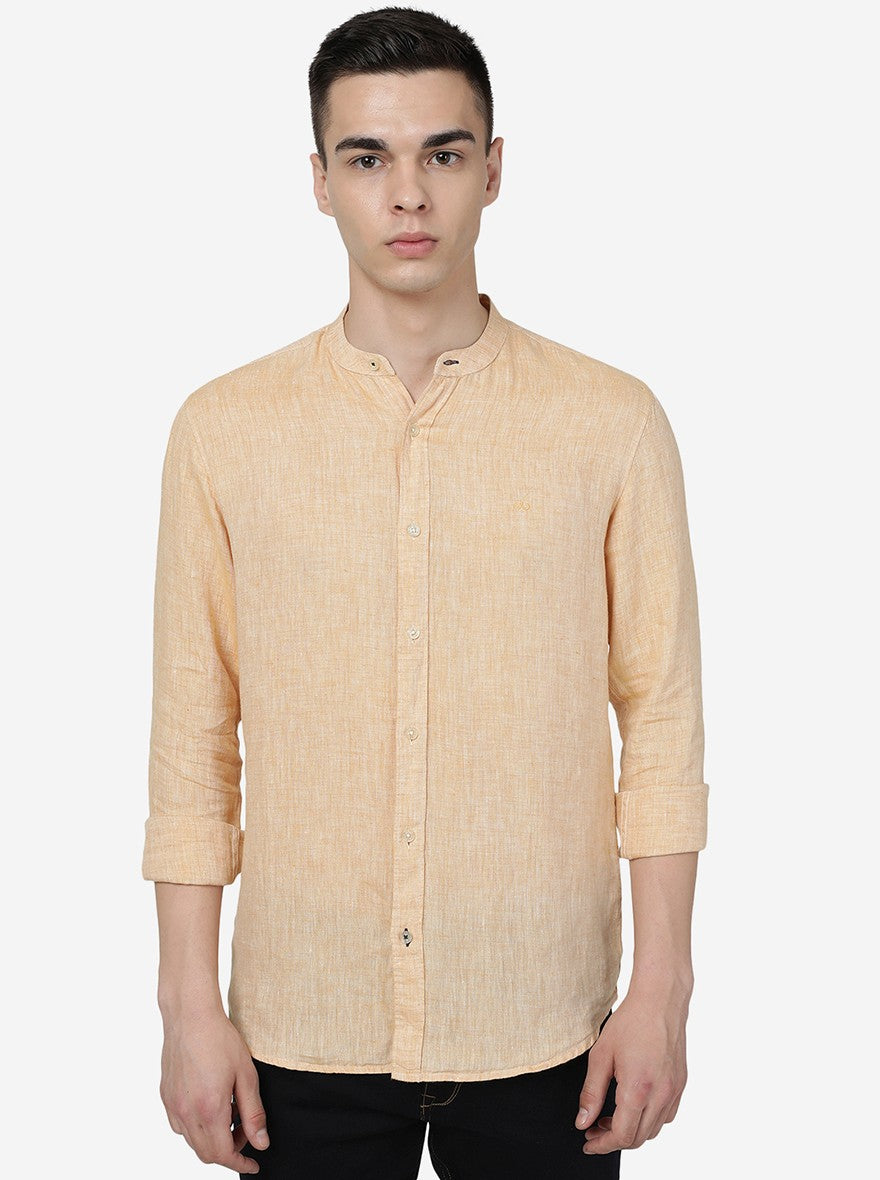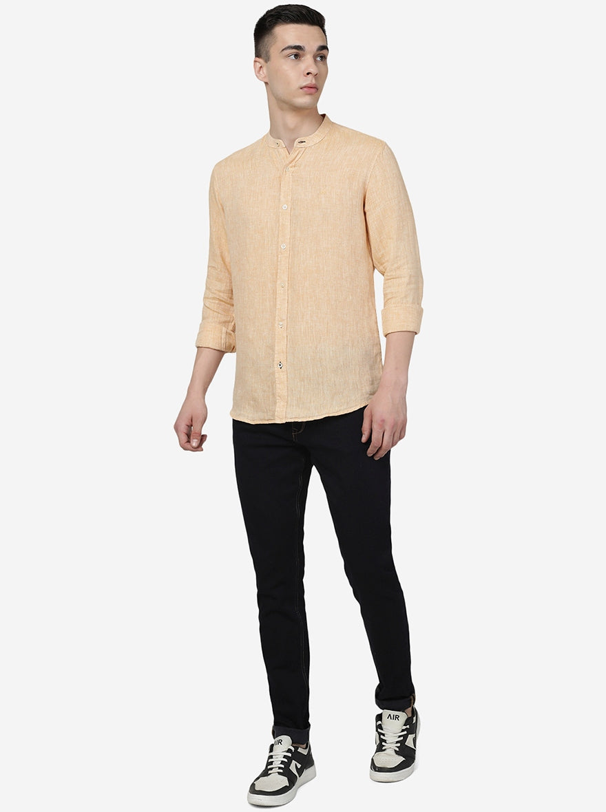 Details: Bring back fashion trends with this Marigold 100% Linen Semi Casual Shirt from JadeBlue. Fabricated with 100% Linen fabric ensuring comfort and breathability all day. Offers a slim fit for a sleek look that has been elevated with a Solid pattern. Feature Full sleeves, and a Mandarin shirt collar. Match it with the well-fitted trousers of your choice and a pair of Black oxford shoes and you are ready to go.