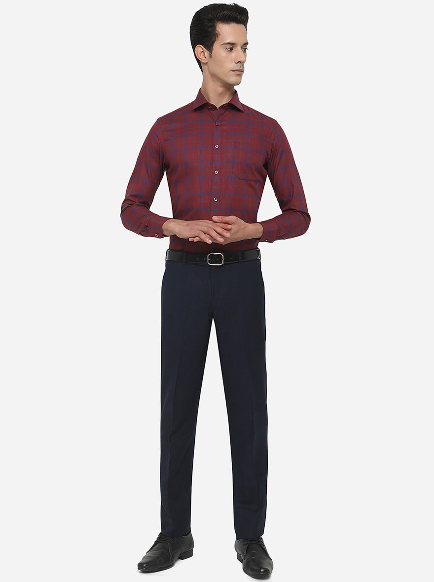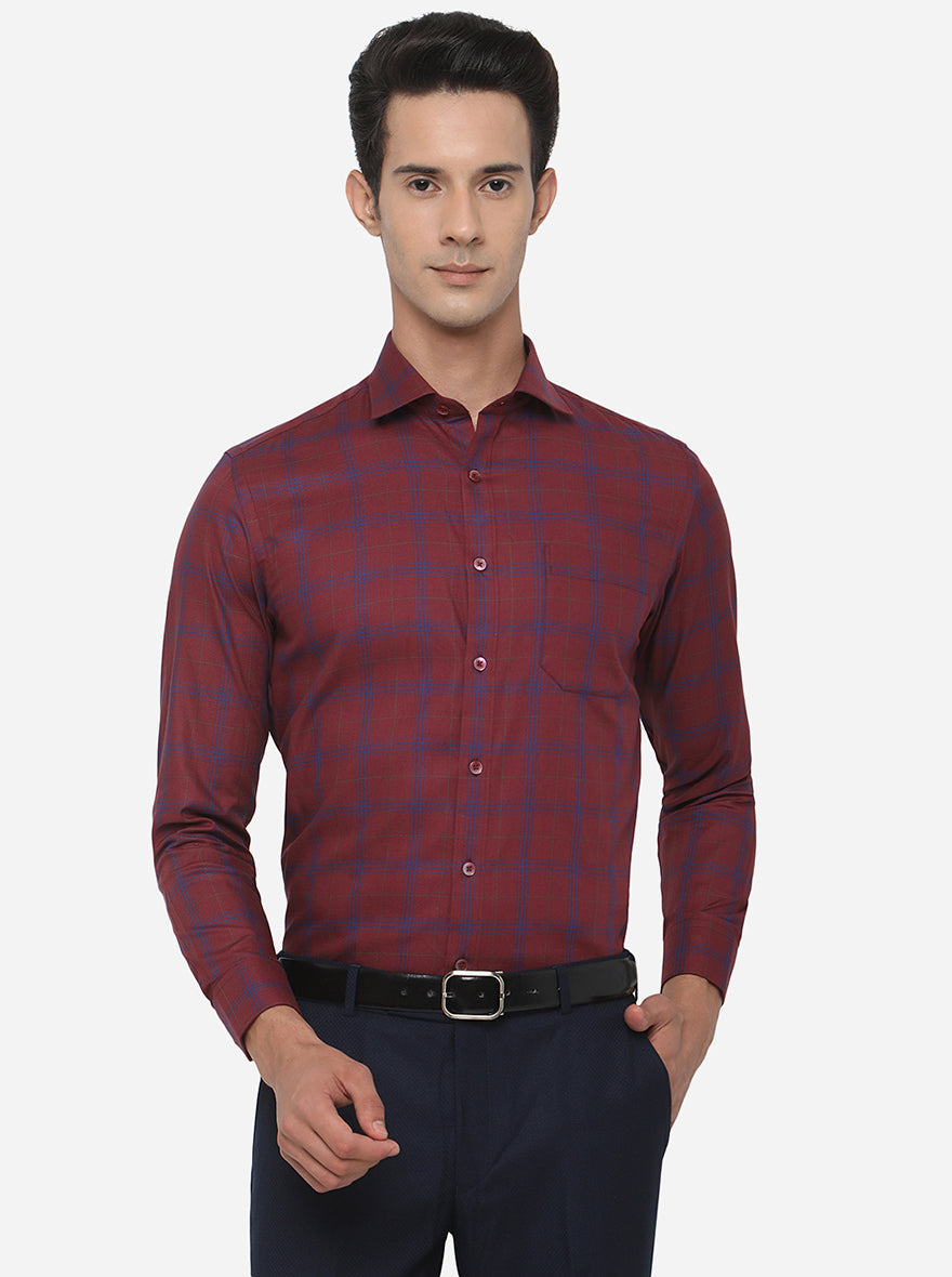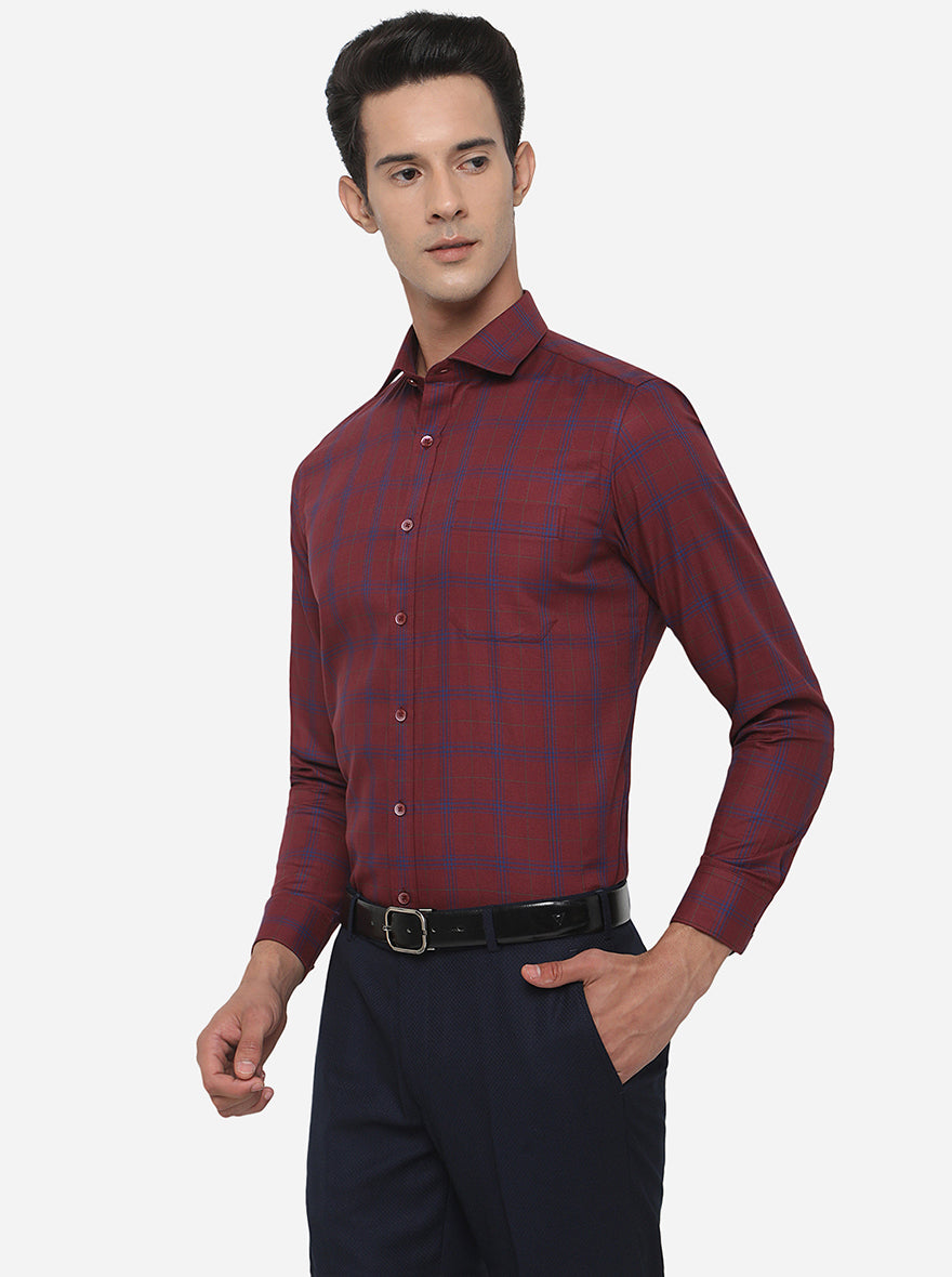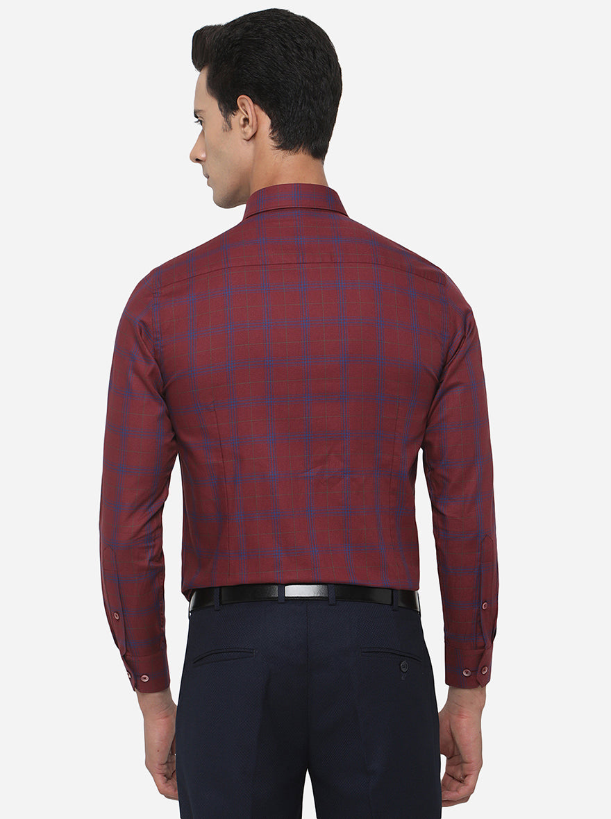 Maroon & Blue Checked Slim Fit Formal Shirt | Metal