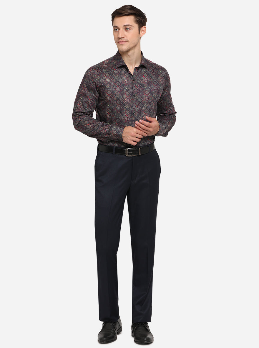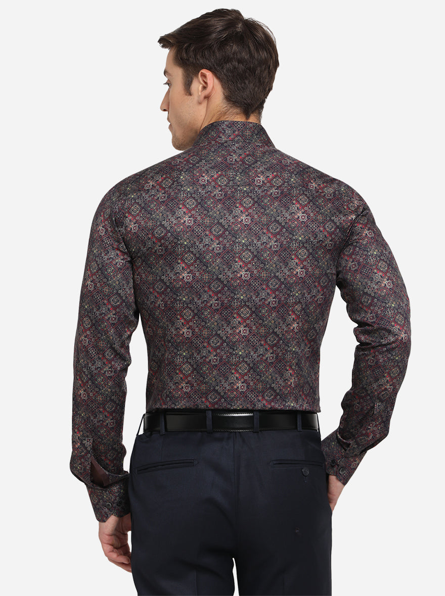 Maroon & Blue Printed Slim Fit Party Wear Shirt | Wyre