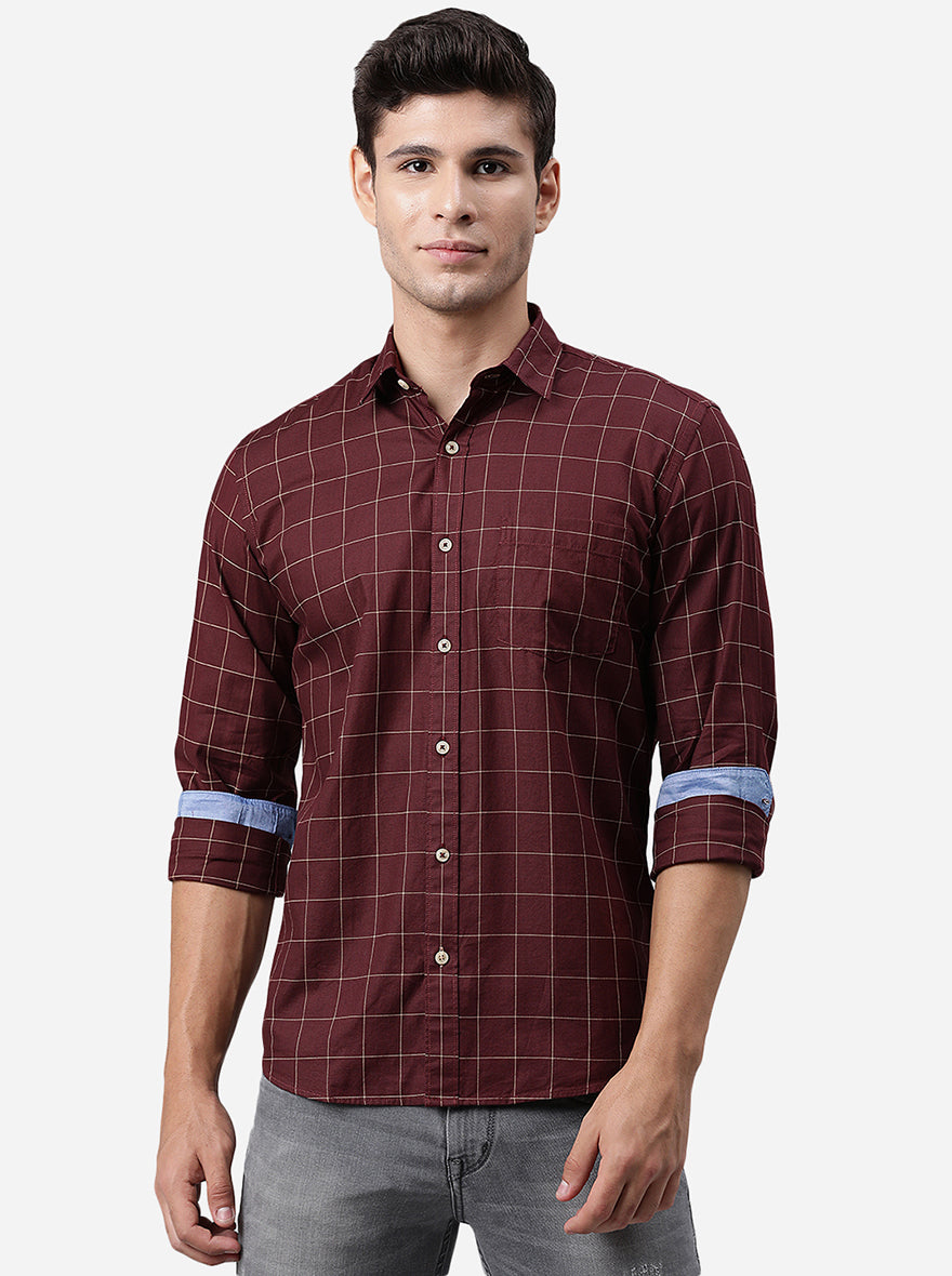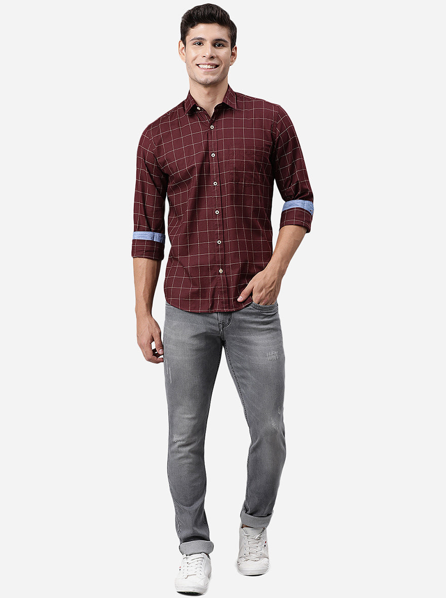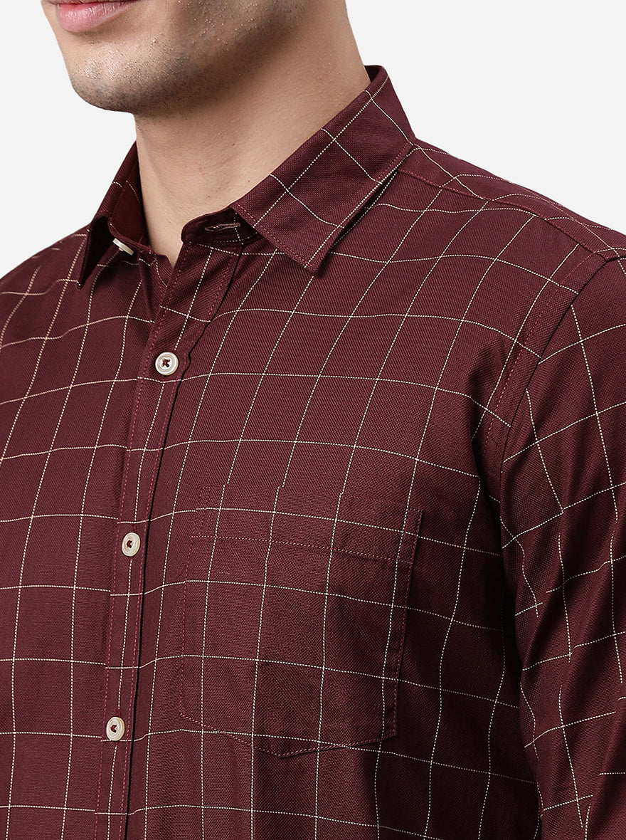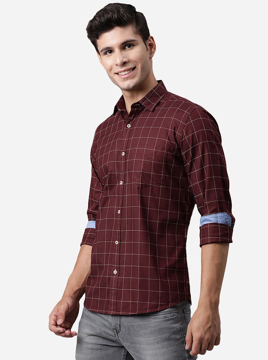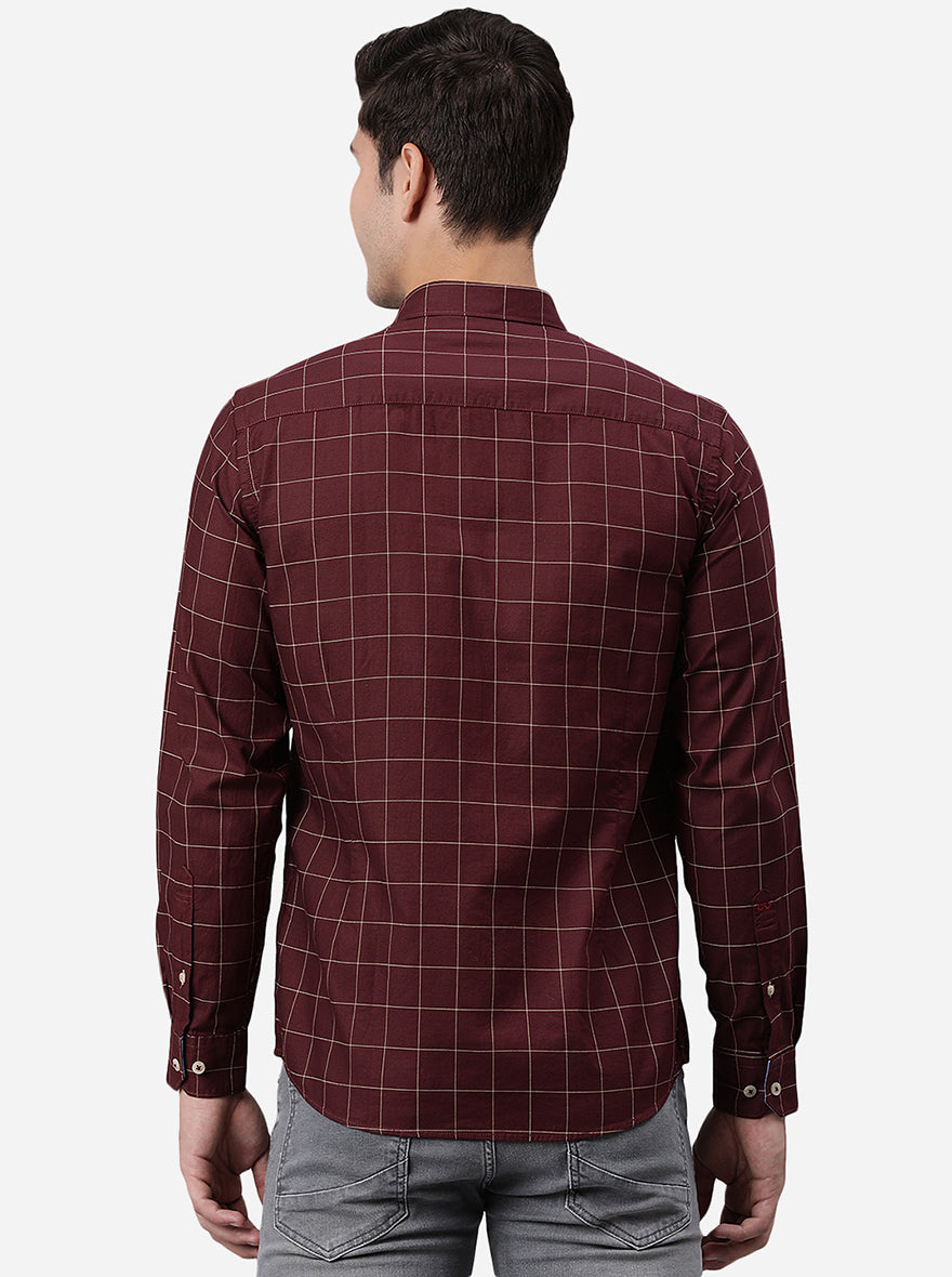 Maroon Checked Slim Fit Casual Shirt | JadeBlue