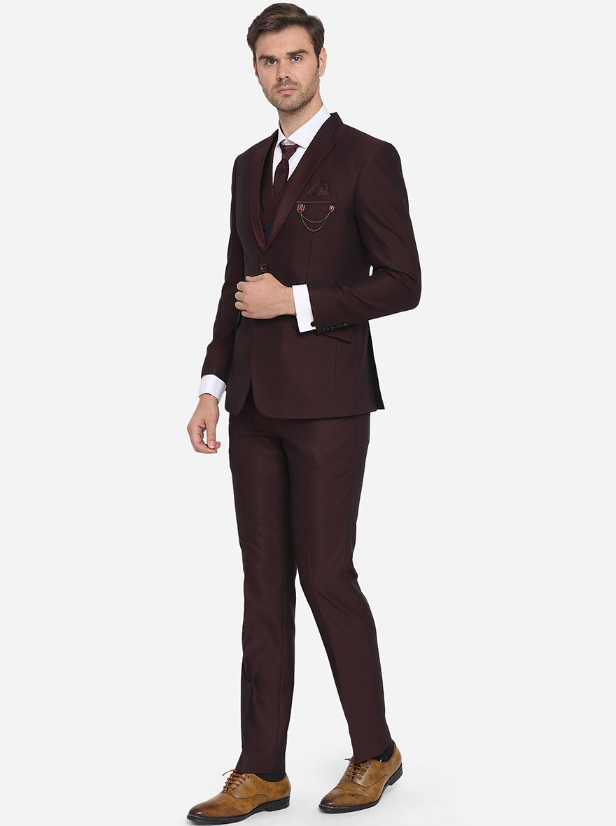 Details: Create a sharp look to your upcoming formal party by wearing this modish Maroon suit from the brand JadeBlue is an excellent choice. It is a premium ensemble that includes a shirt, waistcoat, a jacket and a pair of matching pant. Classic single breasted solid design, two pocket on the front with a smart solid waistcoat and a solid shirt. Comes with a flat-front trousers which has a hook bar and zip fastening. Offers a regular fit. Crafted with rich Terry Rayon to give a cosy yet comfortable feel wherever you go. Team it with a pair of smart oxford shoes and you are all set to go.