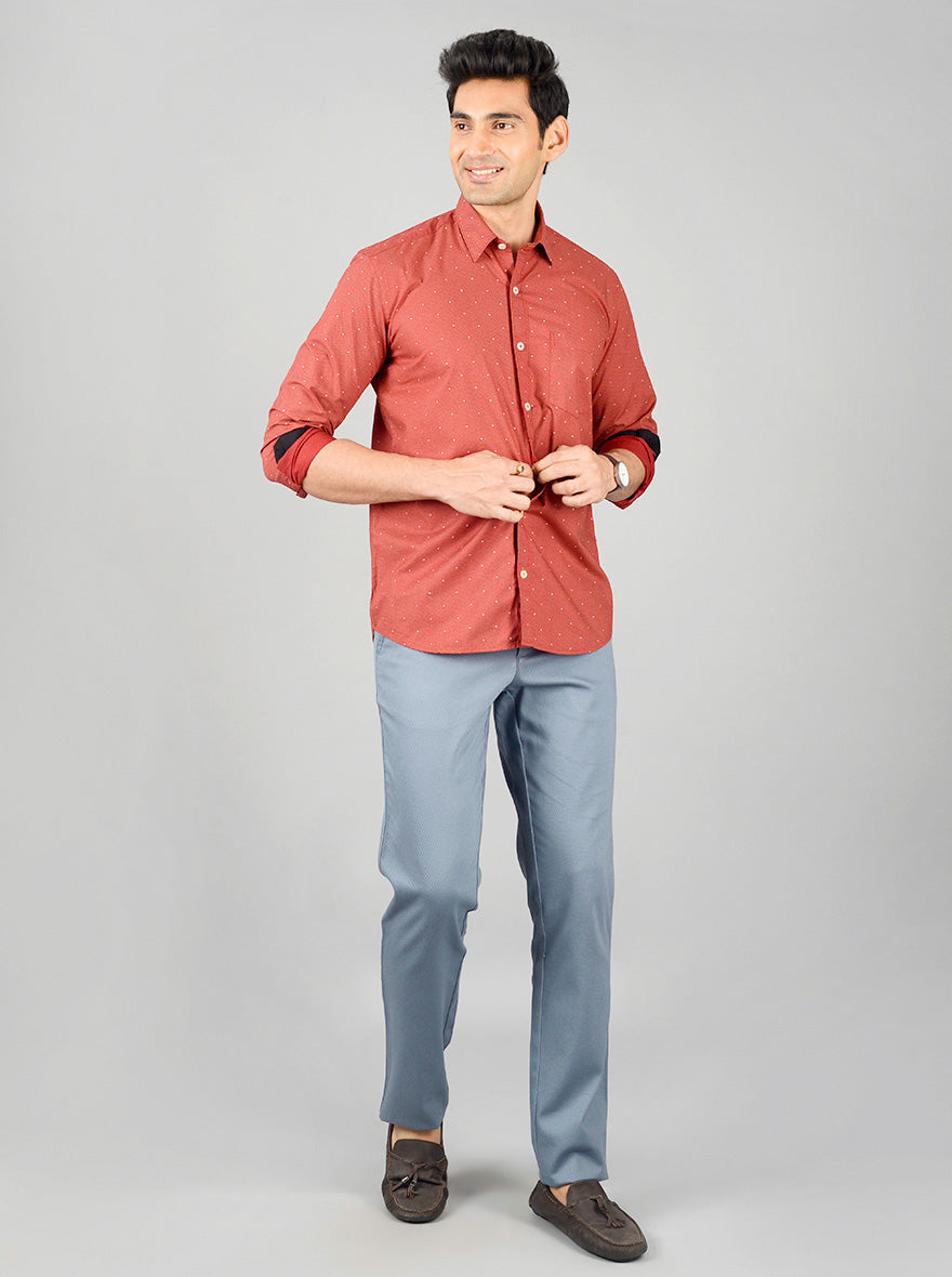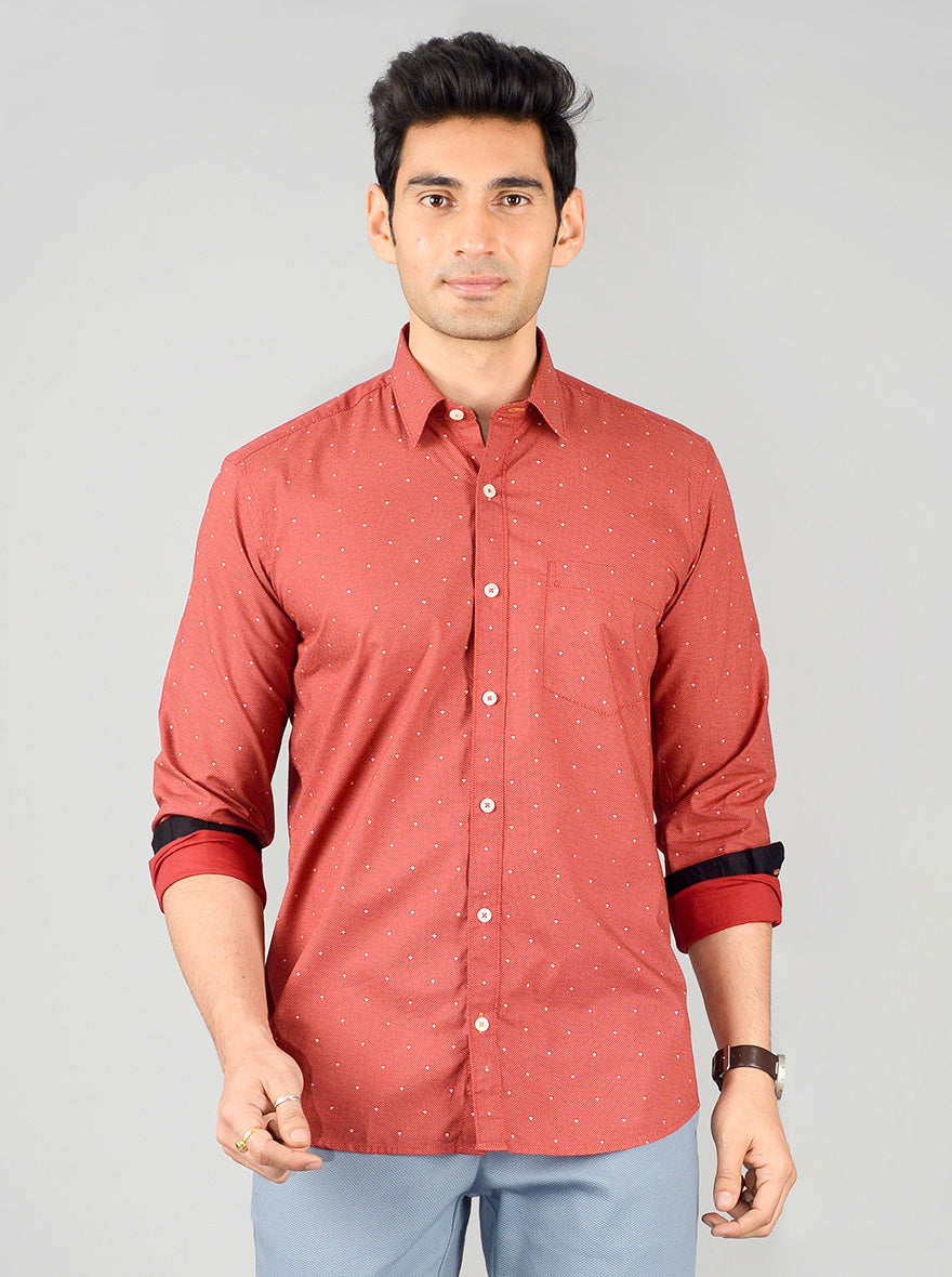 Details: Flaunt the best casual style in a remarkable way by dressing up in this red printed shirt. Made from premium cotton fabric, this casual shirt features chest pocket, shirt collar and front buttons.