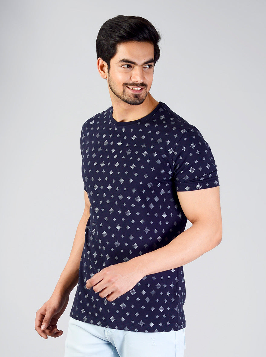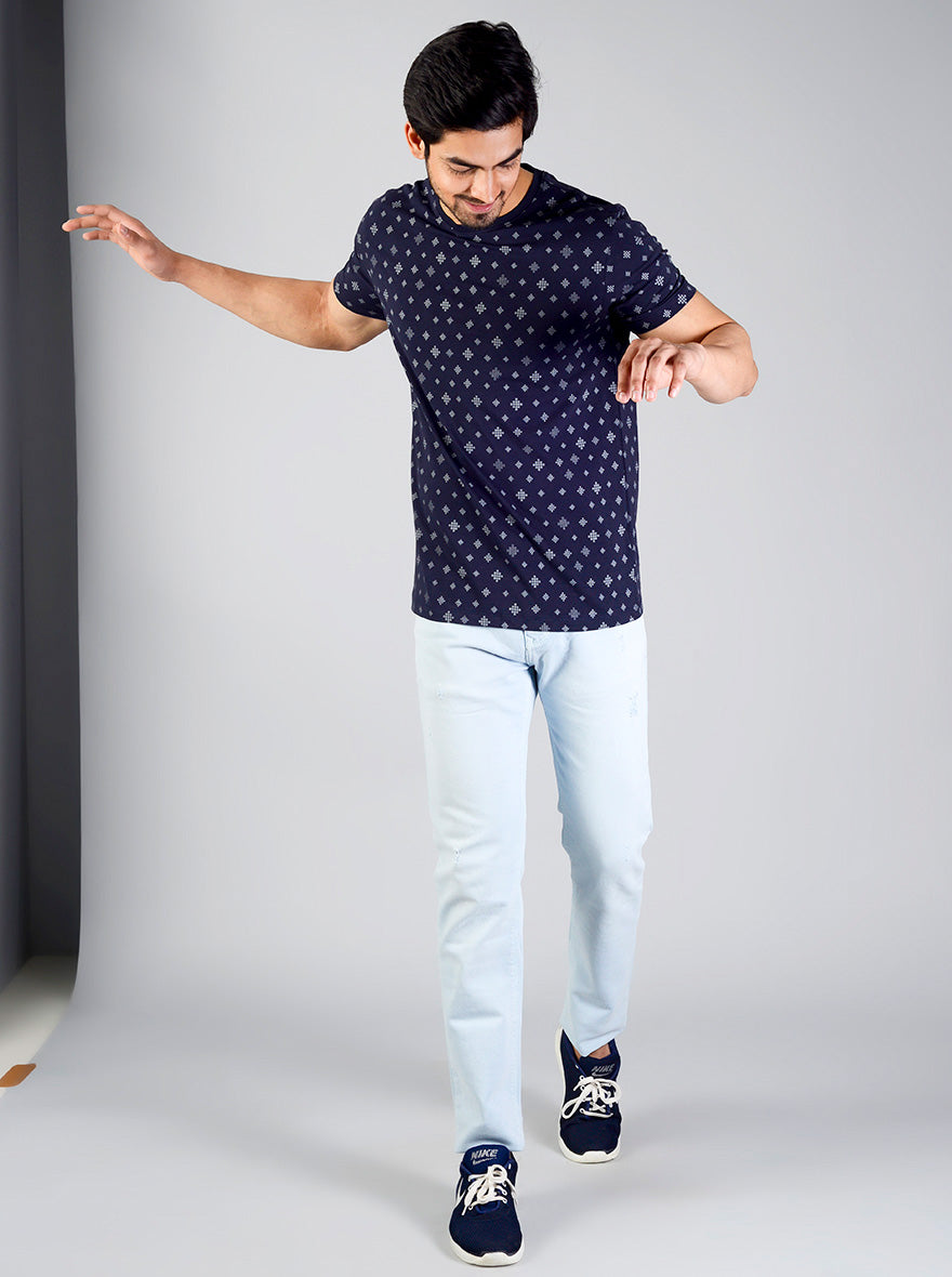 Medieval Blue Printed Slim Fit T-shirt | JadeBlue