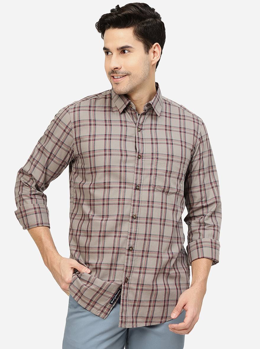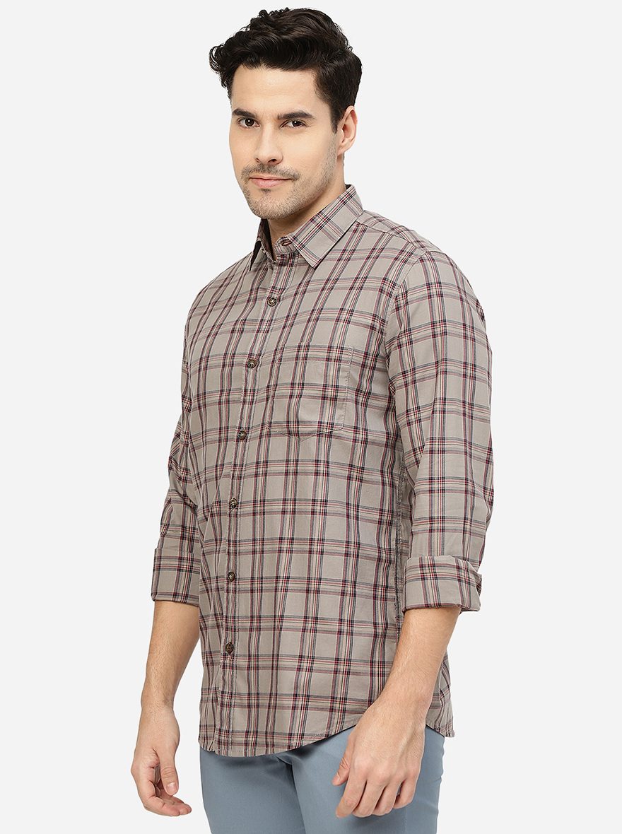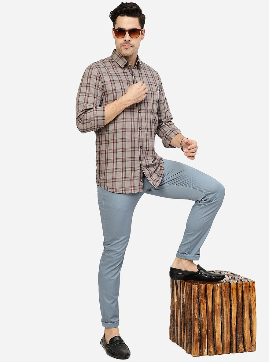 Mud Brown Checked Slim Fit Casual Shirt | JadeBlue