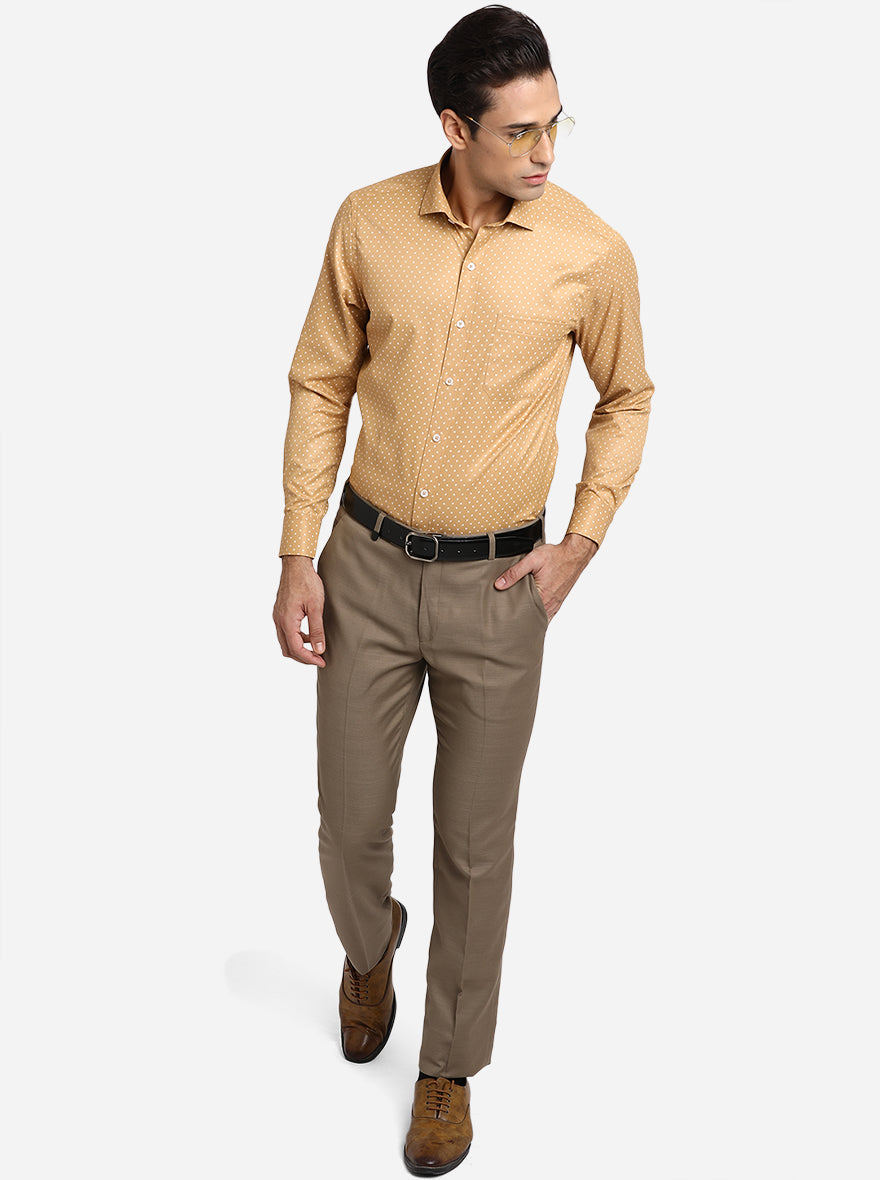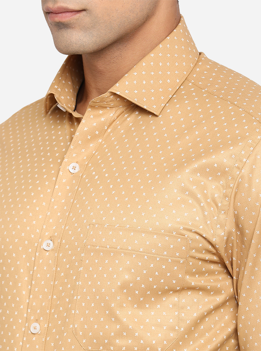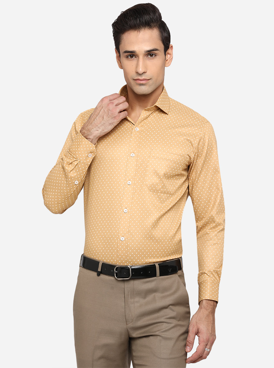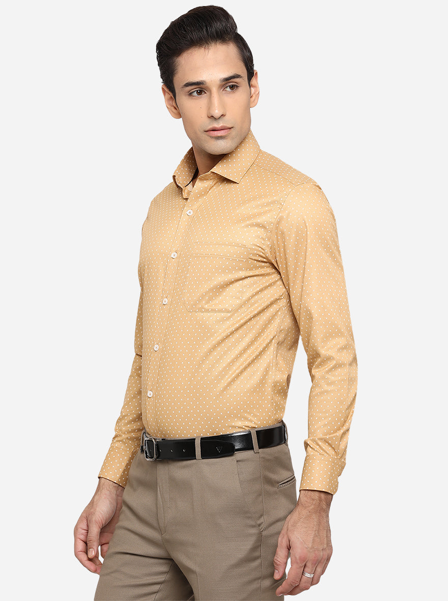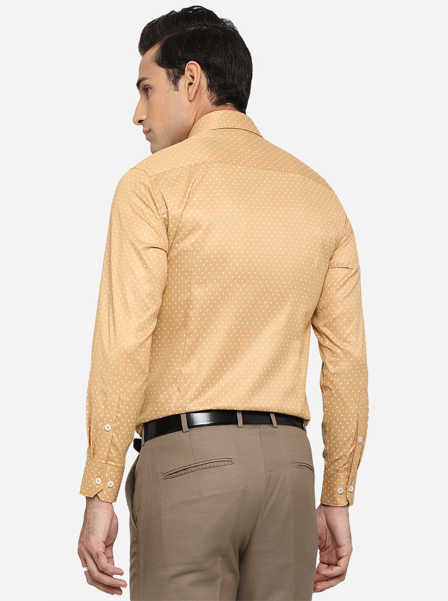 Mustard Yellow Printed Slim Fit Formal Shirt | Greenfibre