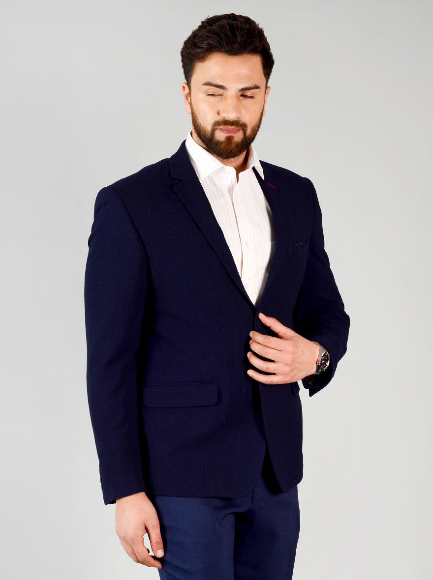 Details: Make a stylish addition to your wardrobe with this navy blue blazer from JB Studio. Made from terry wool fabric, this regular fit blazer features 1 chest pocket, notch lapel and 2 bottom flap pockets. This must-have piece will prove to be a worthy investment to your blazers collection.