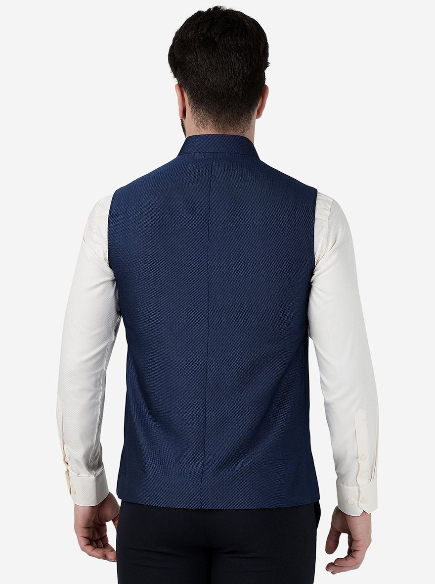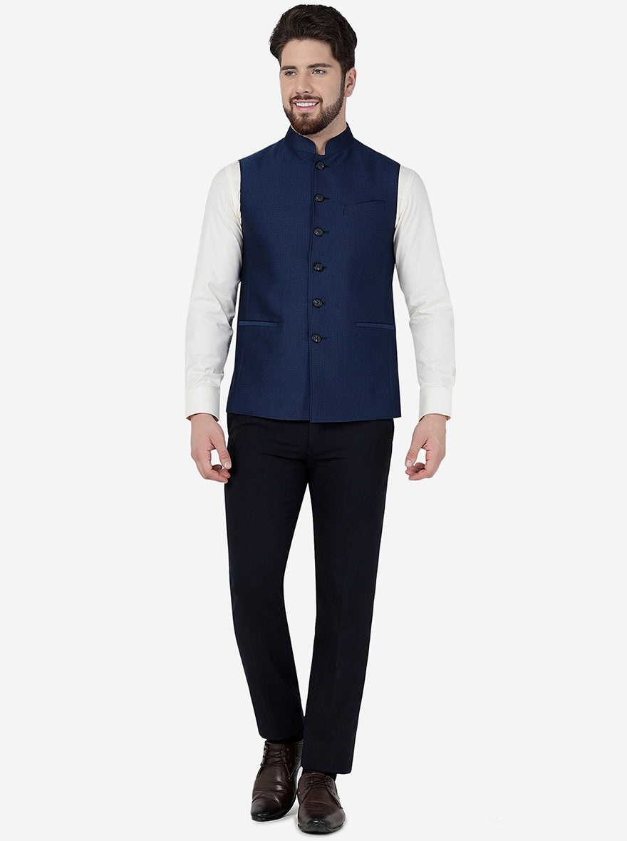 Details: Get the best formal look with this Navy Blue Modi Kurta from the newest collection of MODI KURTA crafted with premium Terry Wool fabric that suits every skin and gives firm texture. Featuring buttons for closure. Offers a Regular fit for a Jacket with a side vent, along with a checked design of the fabric. Pair it up with a contrasting kurta and Aligarh to elevate your traditional look.