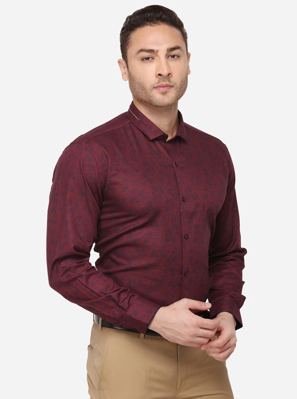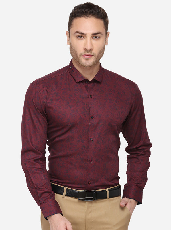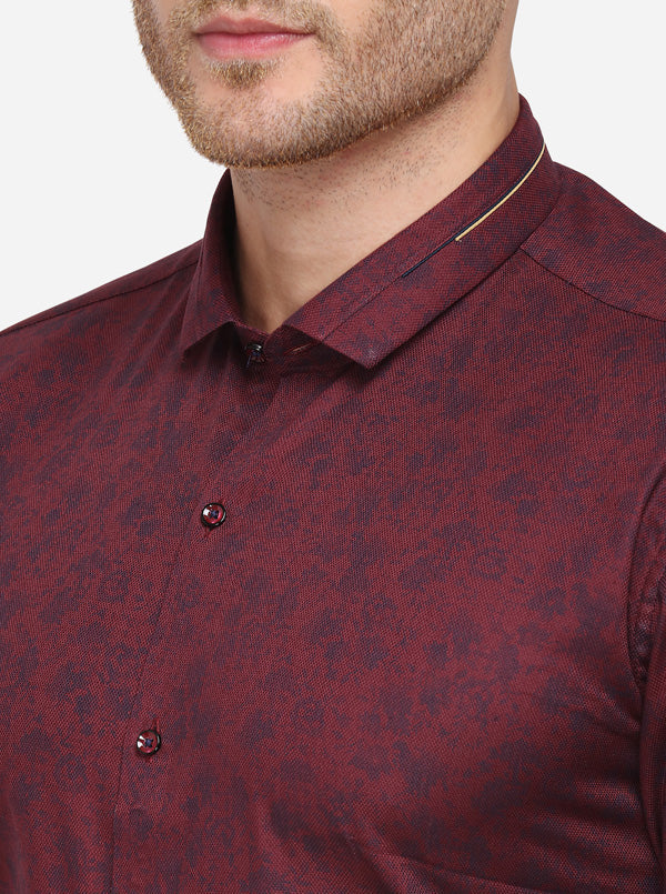 Navy Blue Printed Slim Fit Party Wear Shirt | JB Studio
