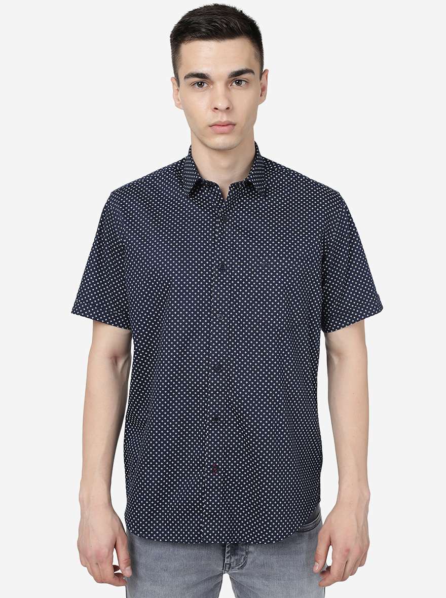 Details: Look cool & calm in this Navy Blue 100% Cotton Casual Shirt from JadeBlue. Built with 100% Cotton promises a comfortable and breathable wearing experience. Offers a slim fit for a sleek look that has been elevated with a beautiful printed pattern. Features a chest pocket, half sleeves, and a regular shirt collar. Match it with the well-fitted trousers of your choice and a pair of Black oxford shoes and you are ready to go.