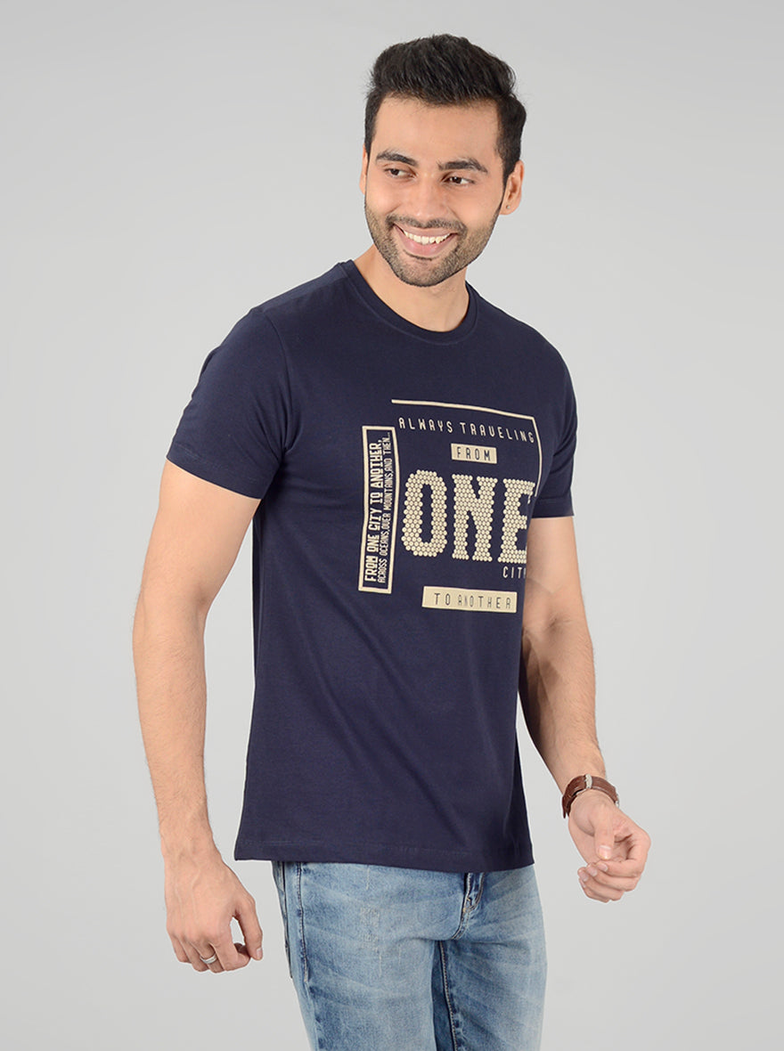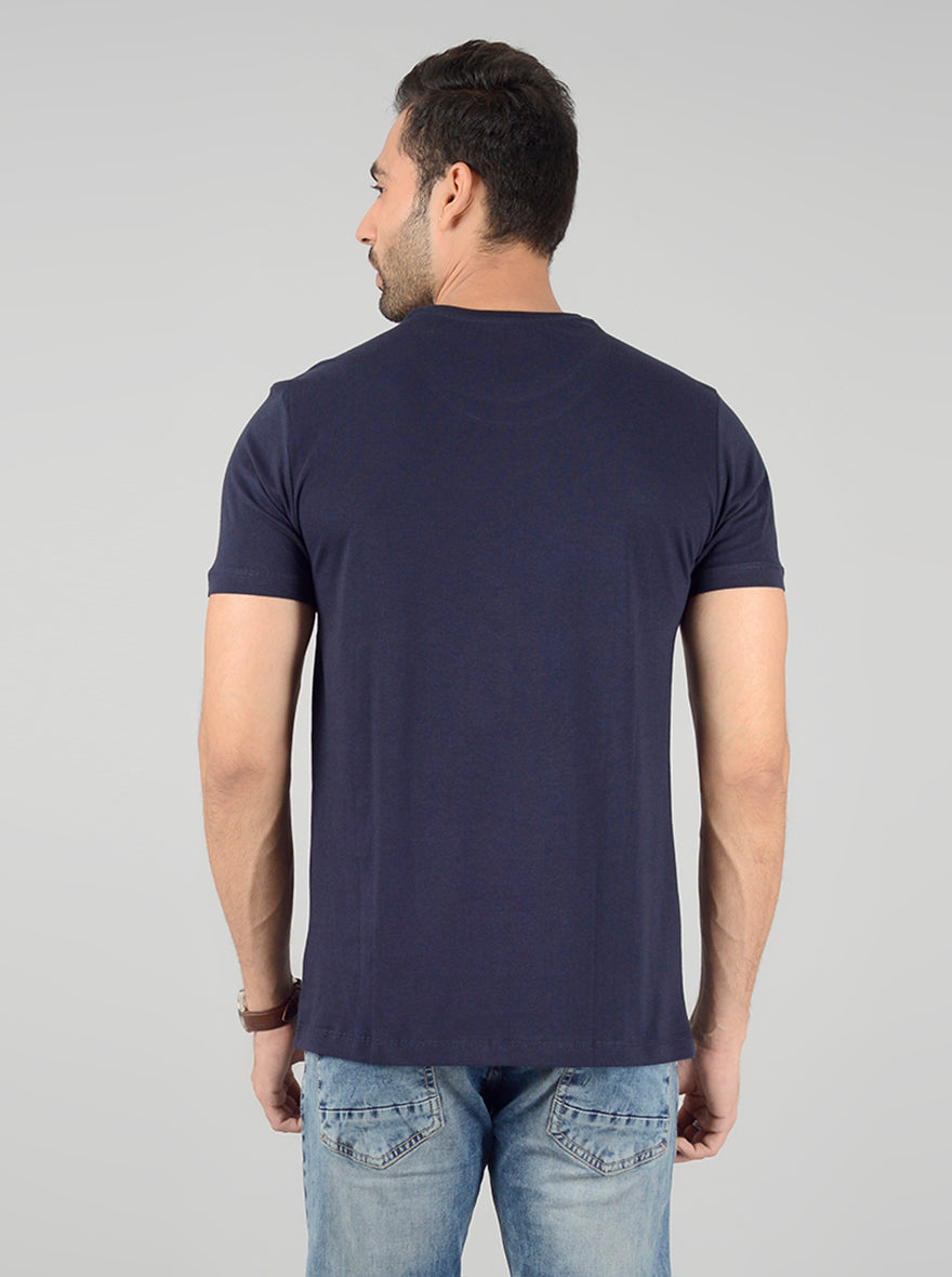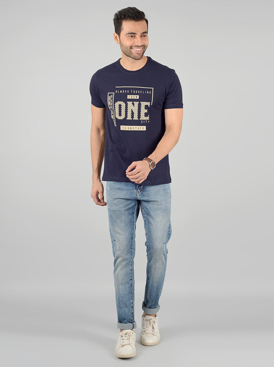 Navy Blue Printed Slim Fit T-Shirt | Greenfibre
