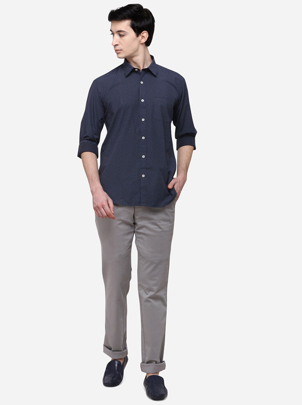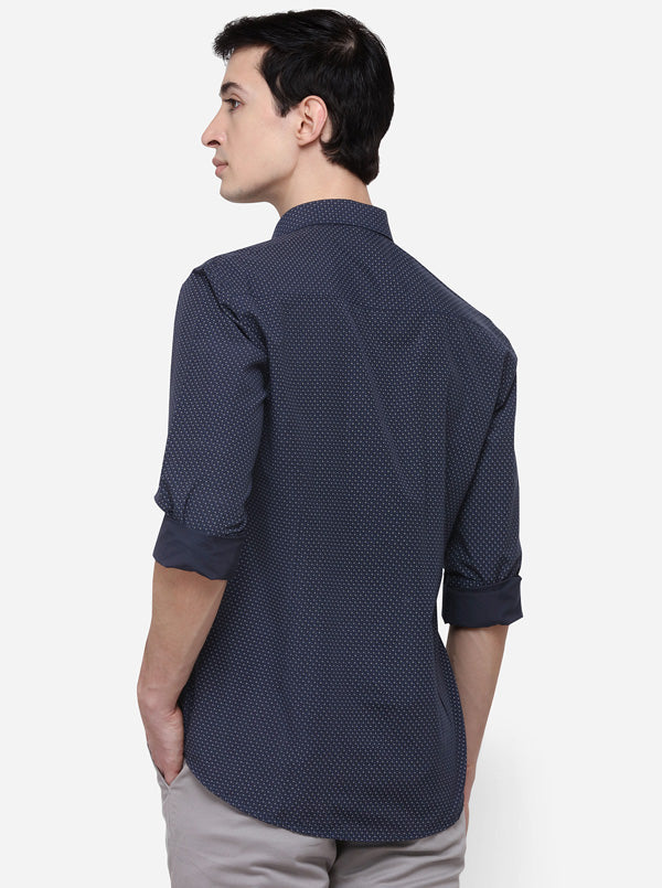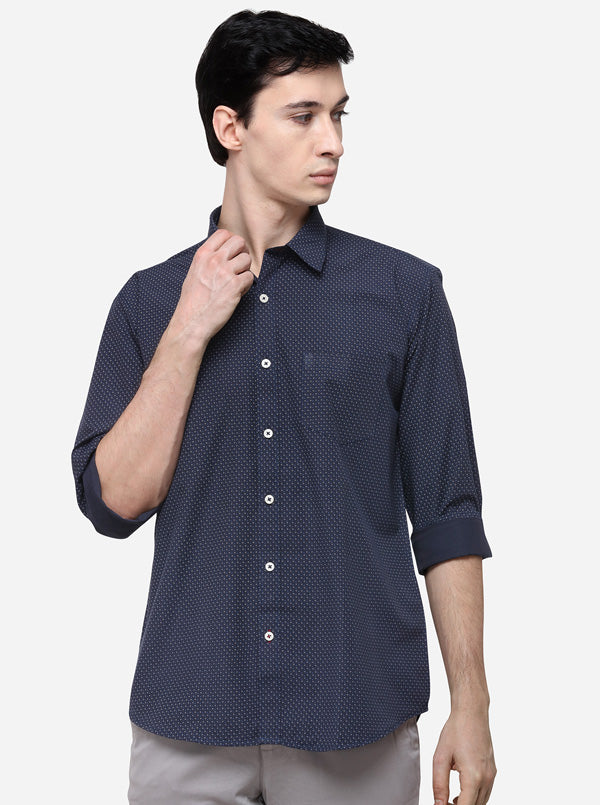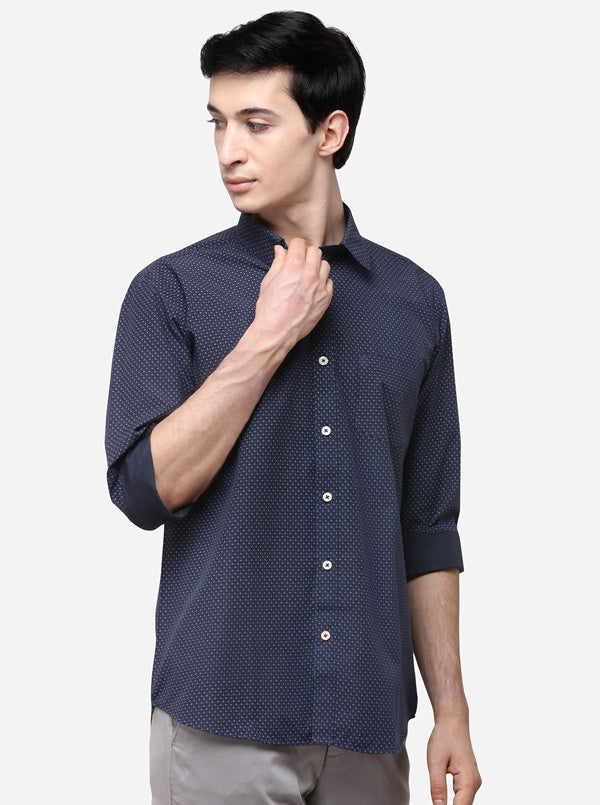 Navy Blue Regular Fit Printed Casual Shirt | Greenfibre